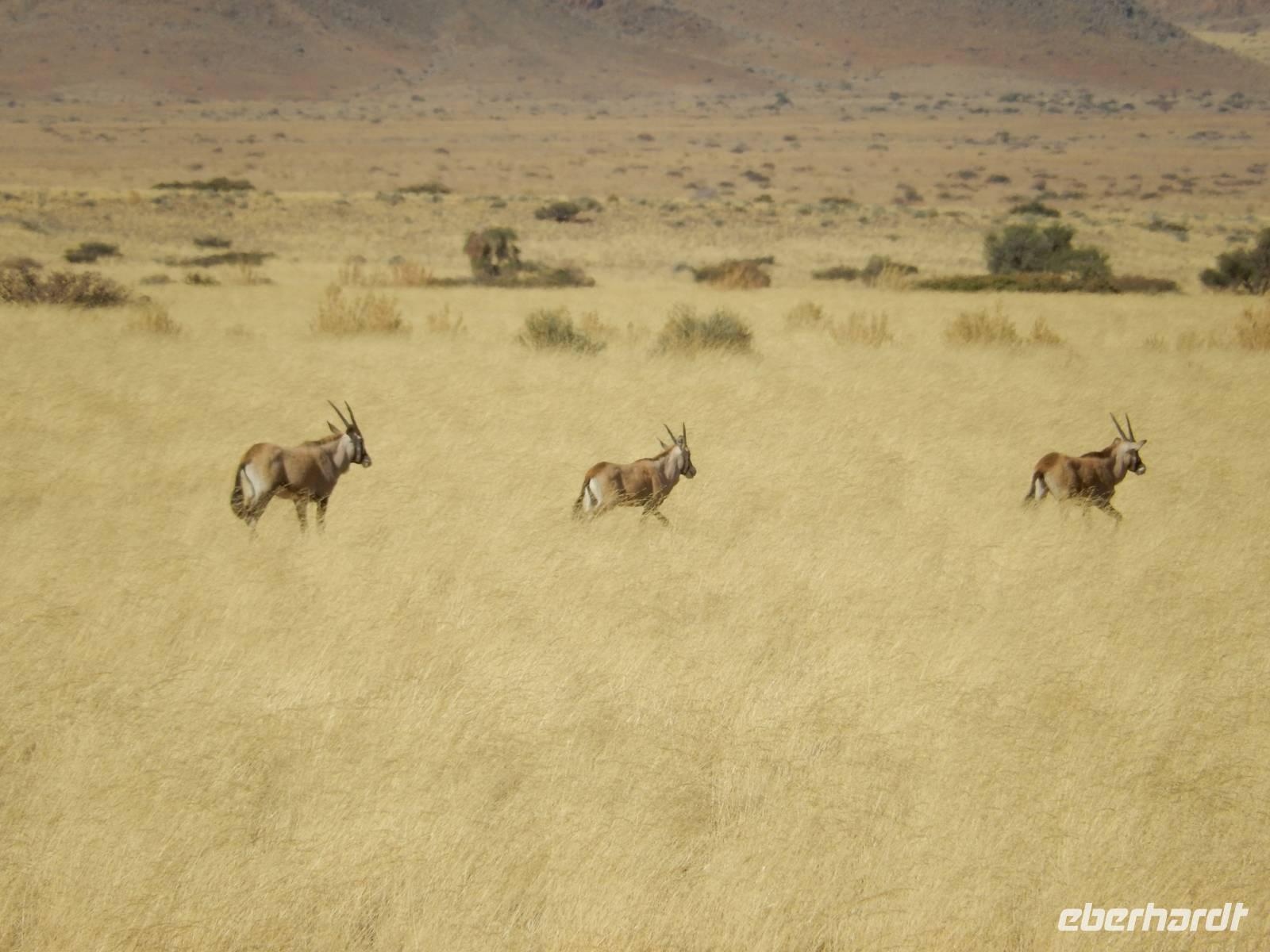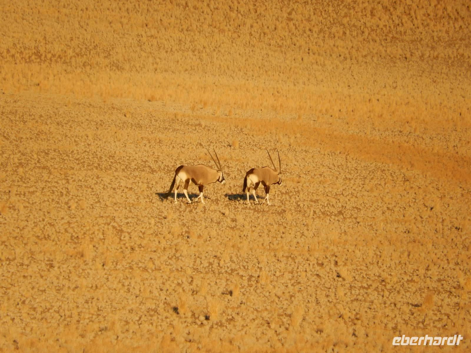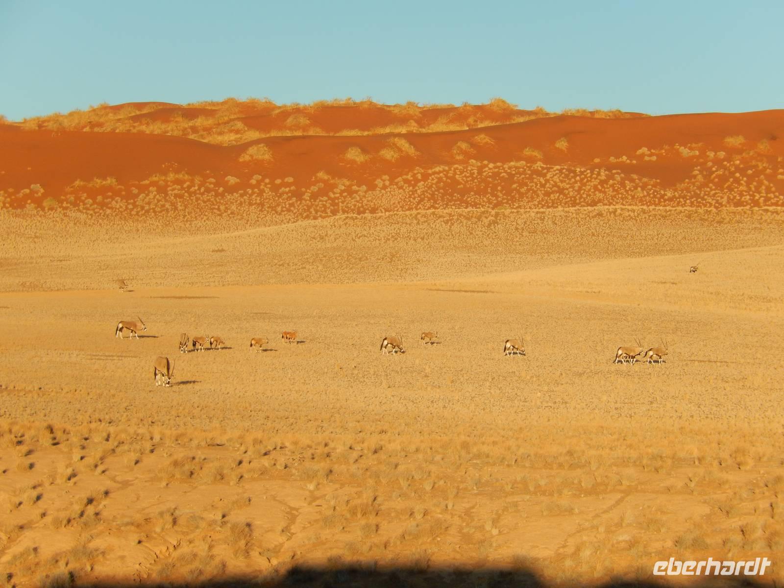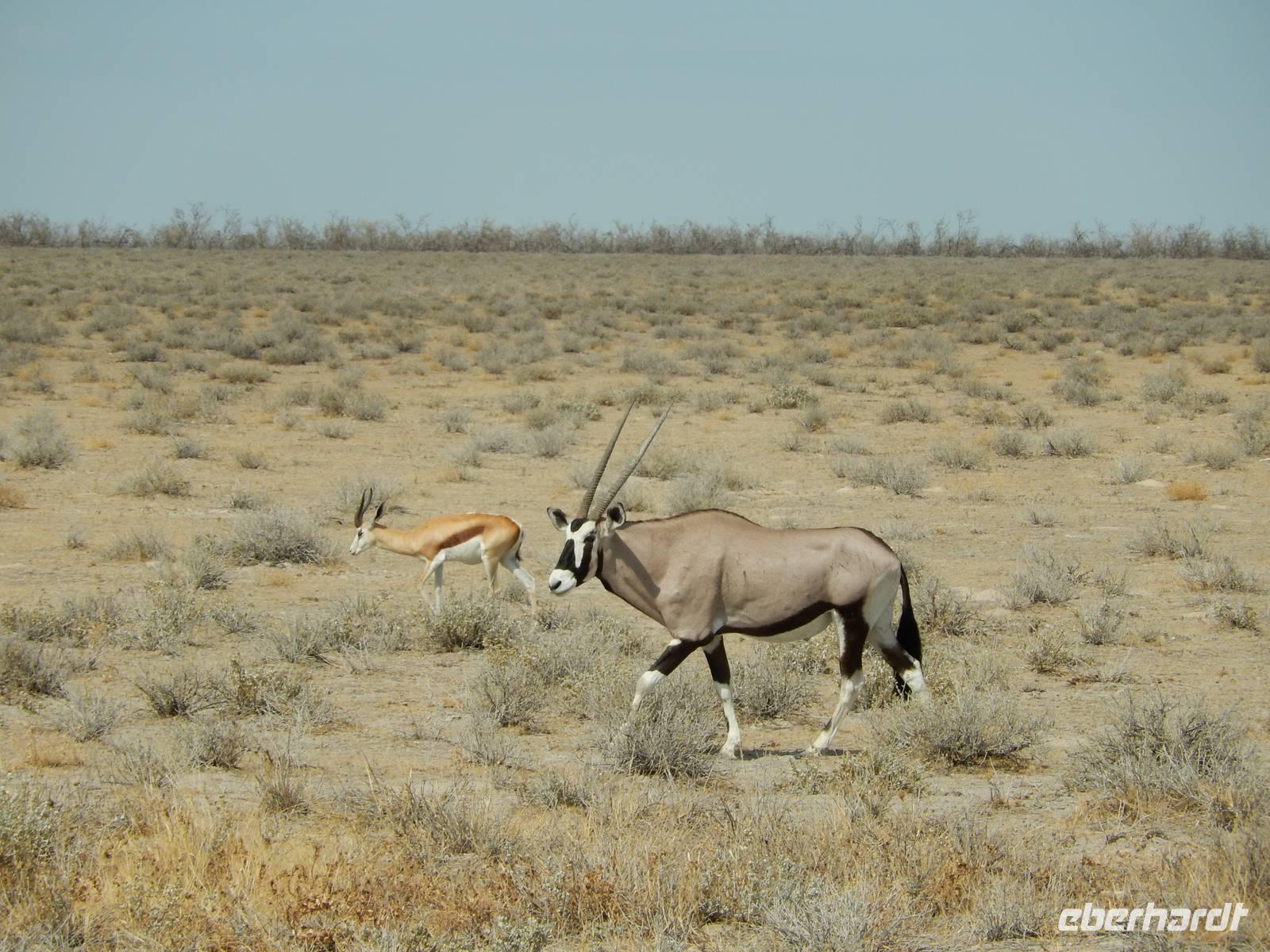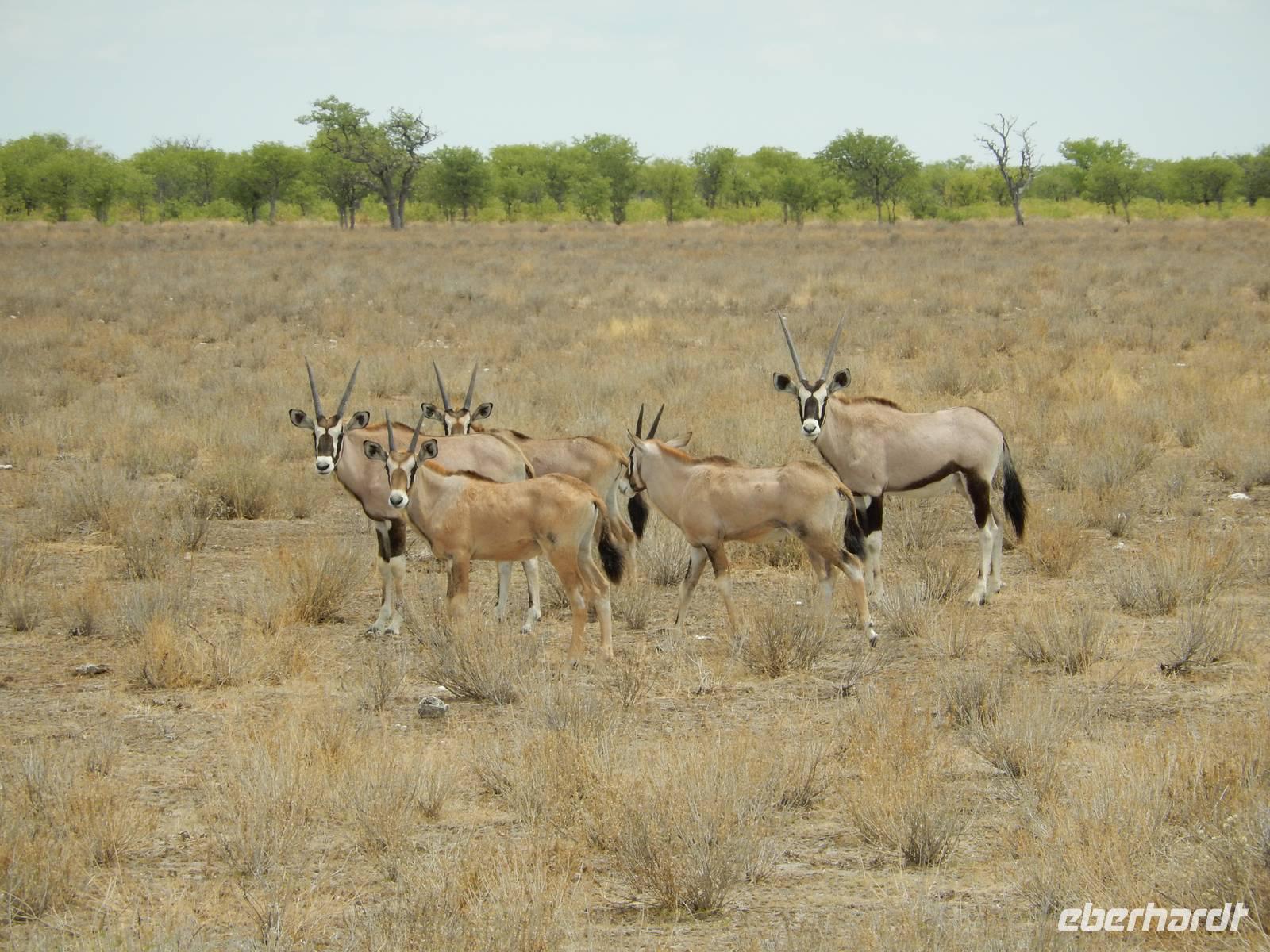 Nach diesem tollen Erlebnis düsten wir auf der Schotterpiste weiter in Richtung unserer heutigen Unterkunft - der Canon Village Lodge. Doch zuvor zückten wir unsere Kameras und fotografierten die ersten Oryx-Antilopen an der Strecke - stattliche Tiere sind das!