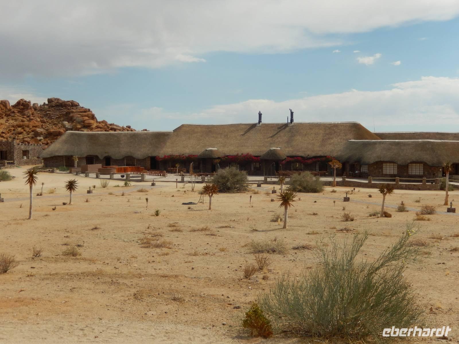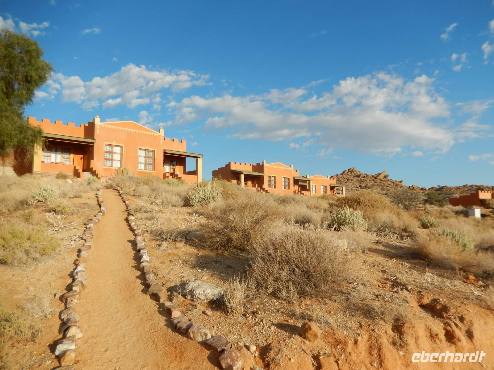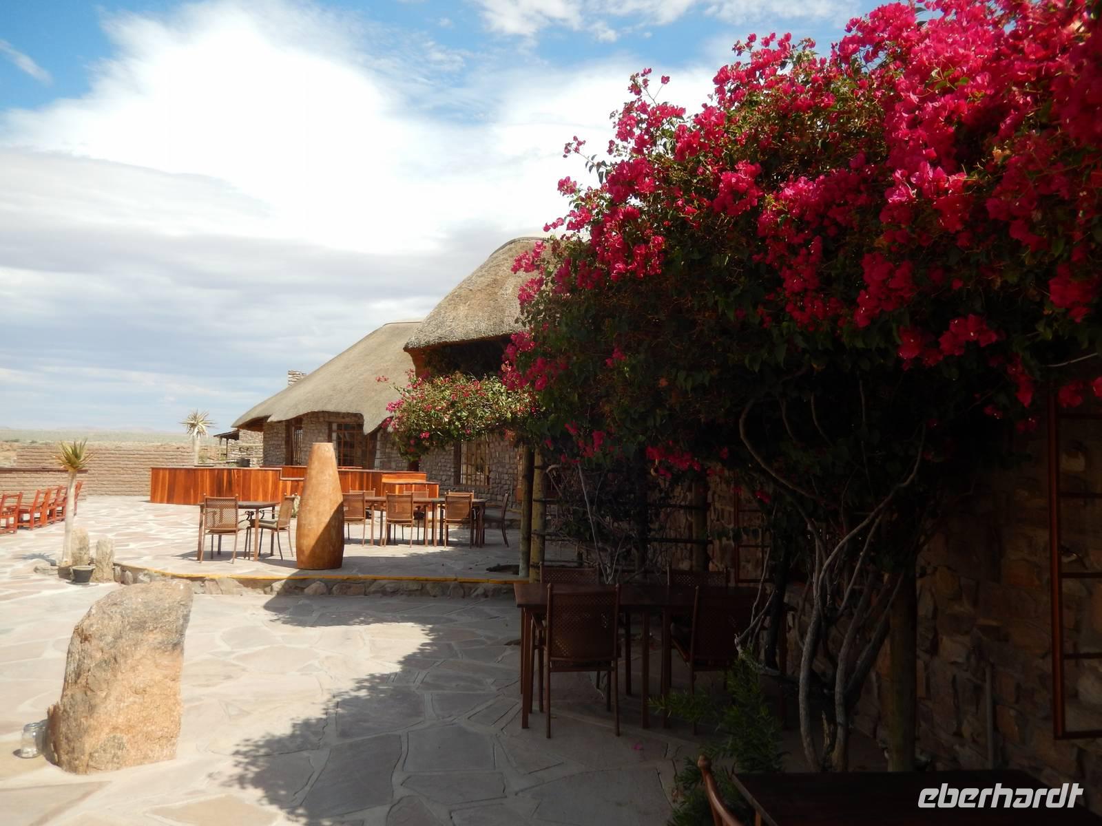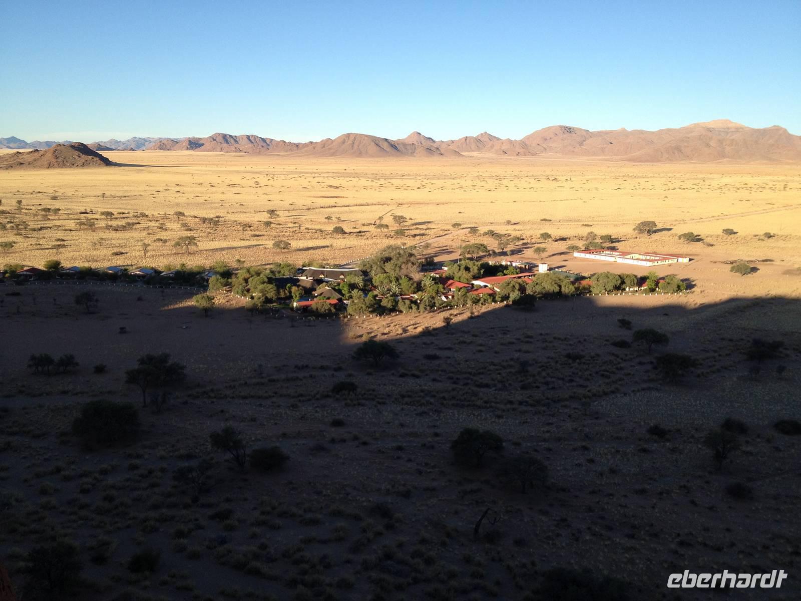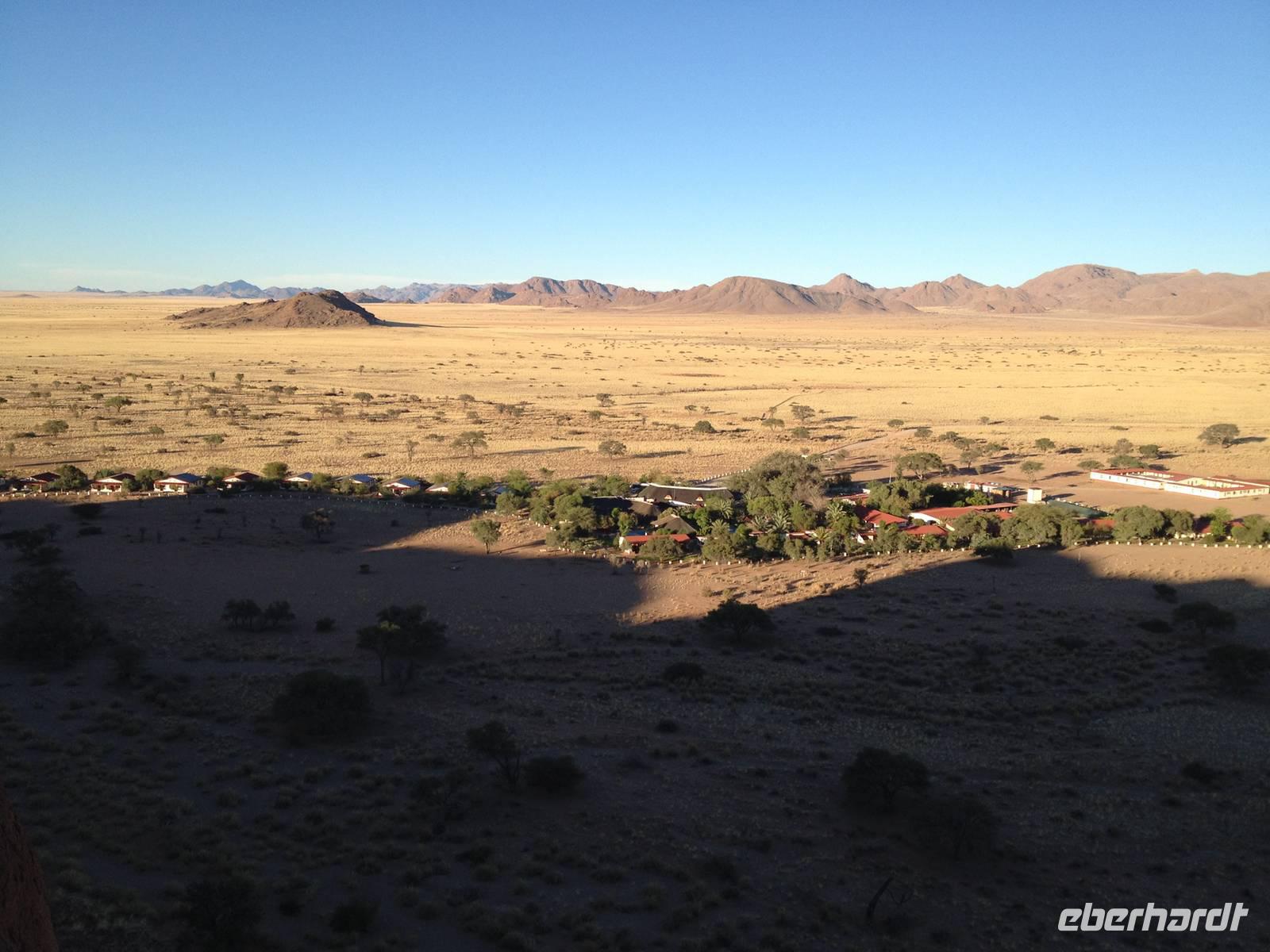 Ziel war anschließend die Namib Desert Lodge am Rande der Namib-Wüste und den Naukluftbergen. Dieses Bergmassiv bildet einen Teil der sogenannten Großen Randstufe, die das Küstengebiet vom Binnenhochland trennt. Das schroffe Gebirge ragt bis zu 2000 Meter in die Höhe.