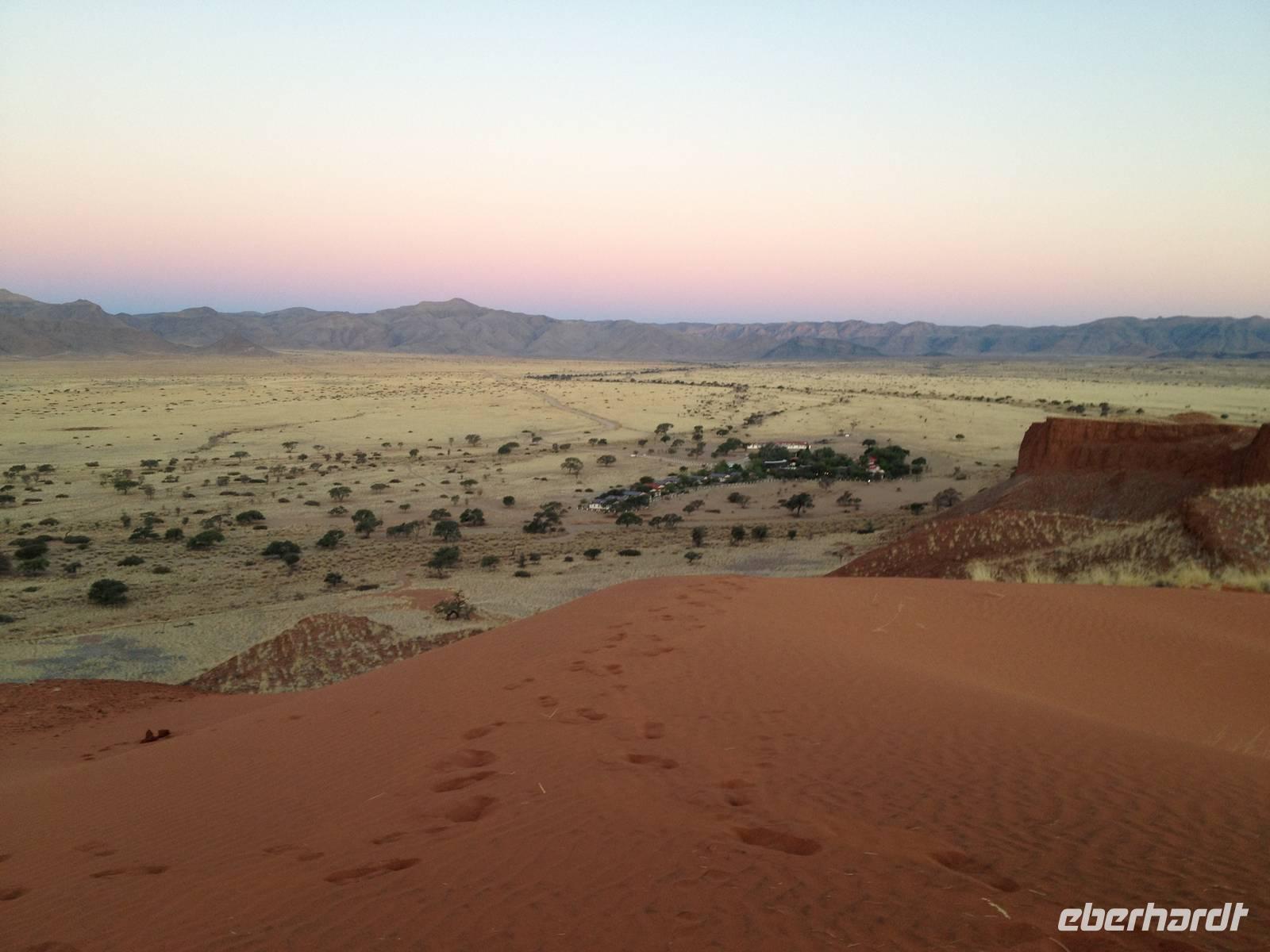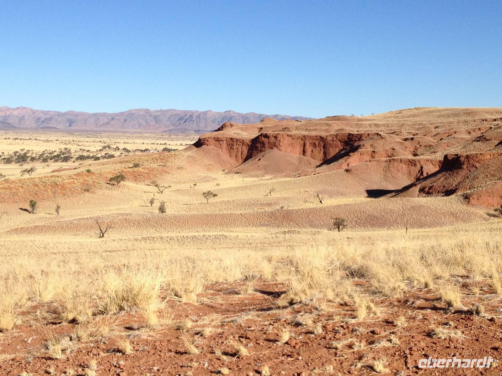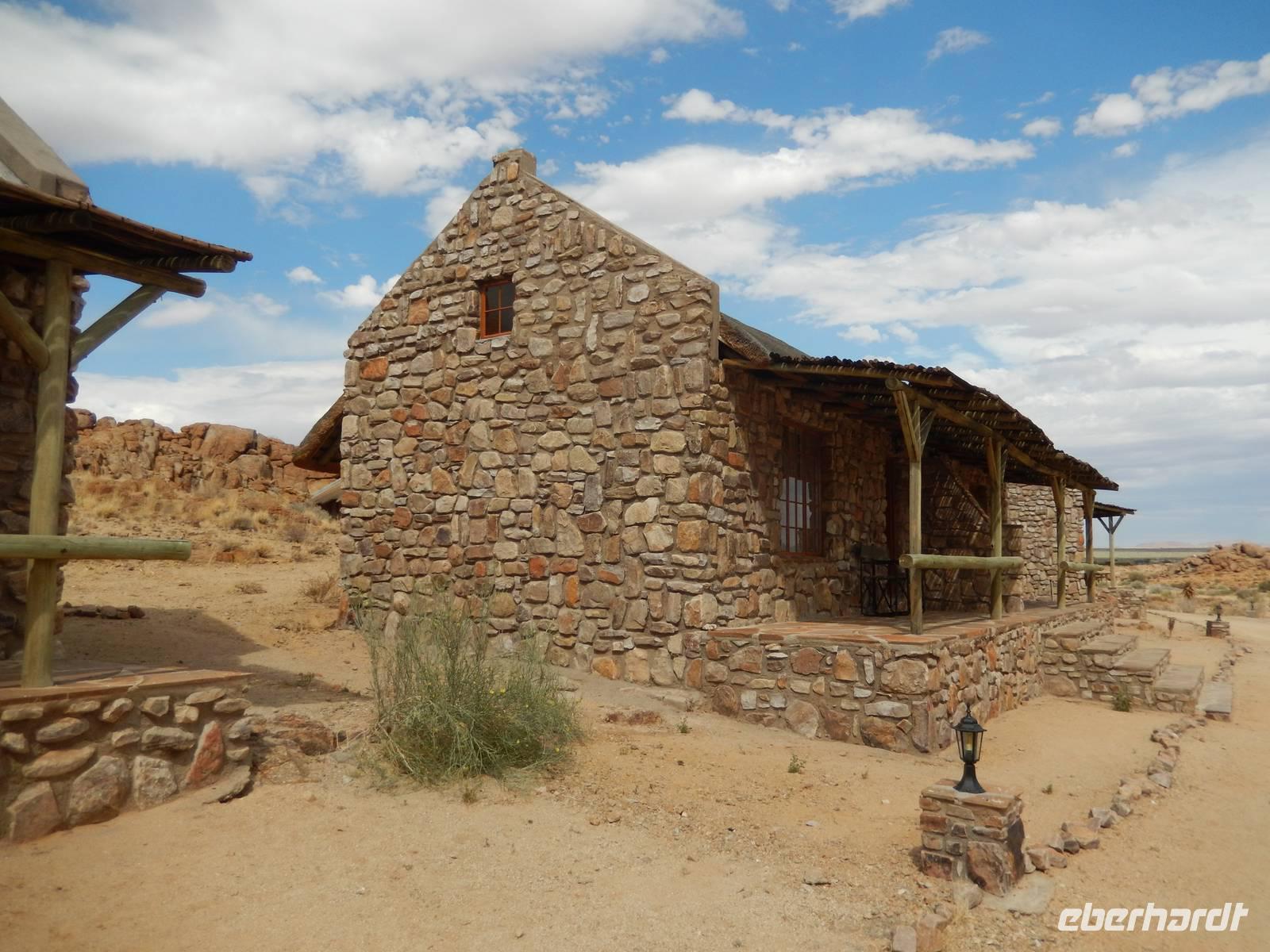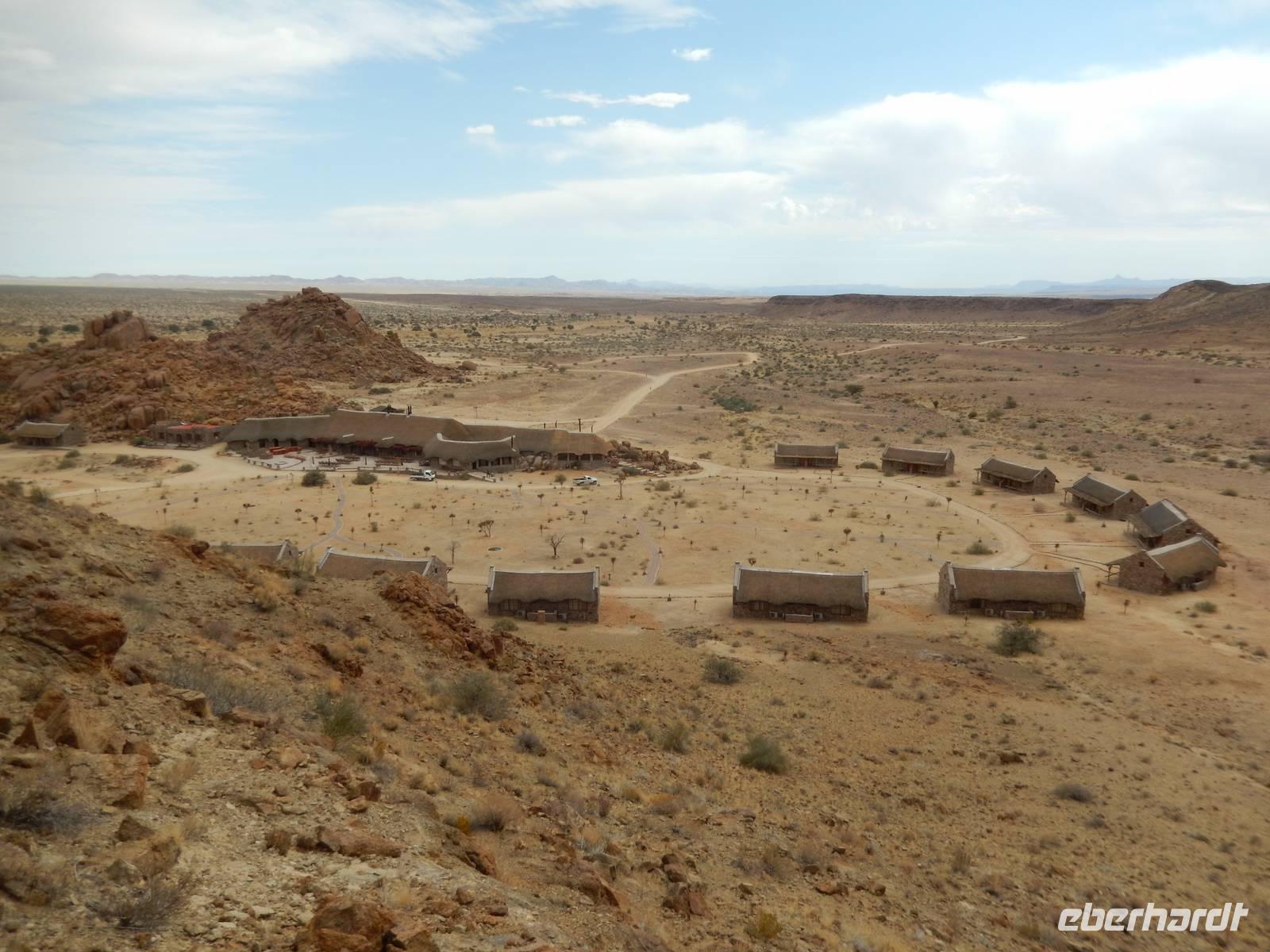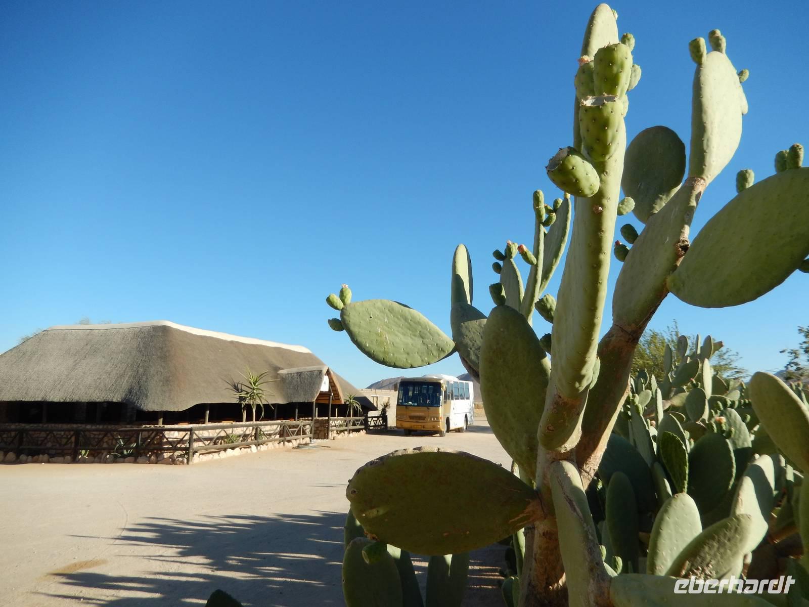 Ziel war anschließend die Namib Desert Lodge am Rande der Namib-Wüste und den Naukluftbergen. Dieses Bergmassiv bildet einen Teil der sogenannten Großen Randstufe, die das Küstengebiet vom Binnenhochland trennt. Das schroffe Gebirge ragt bis zu 2000 Meter in die Höhe.