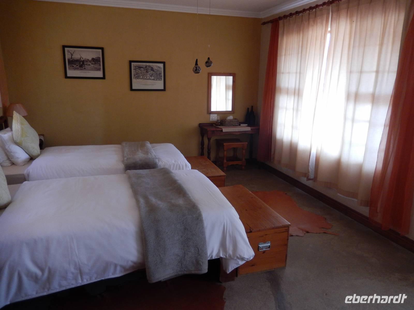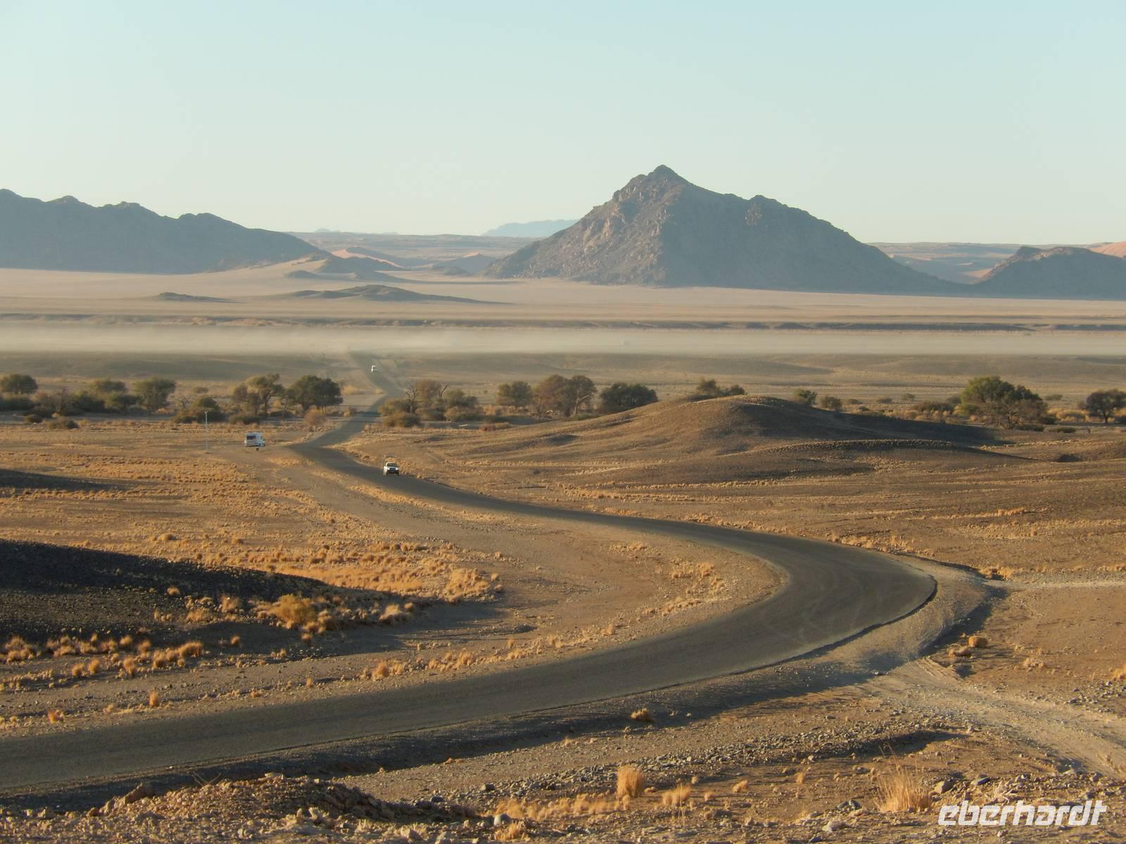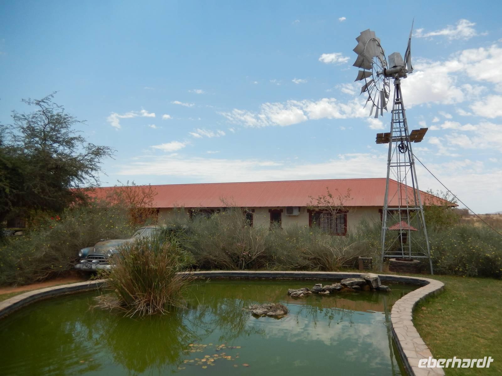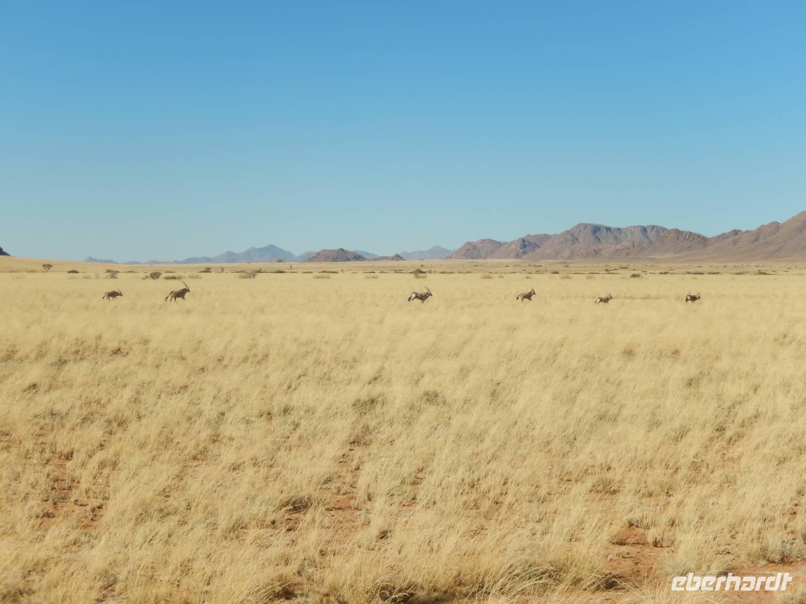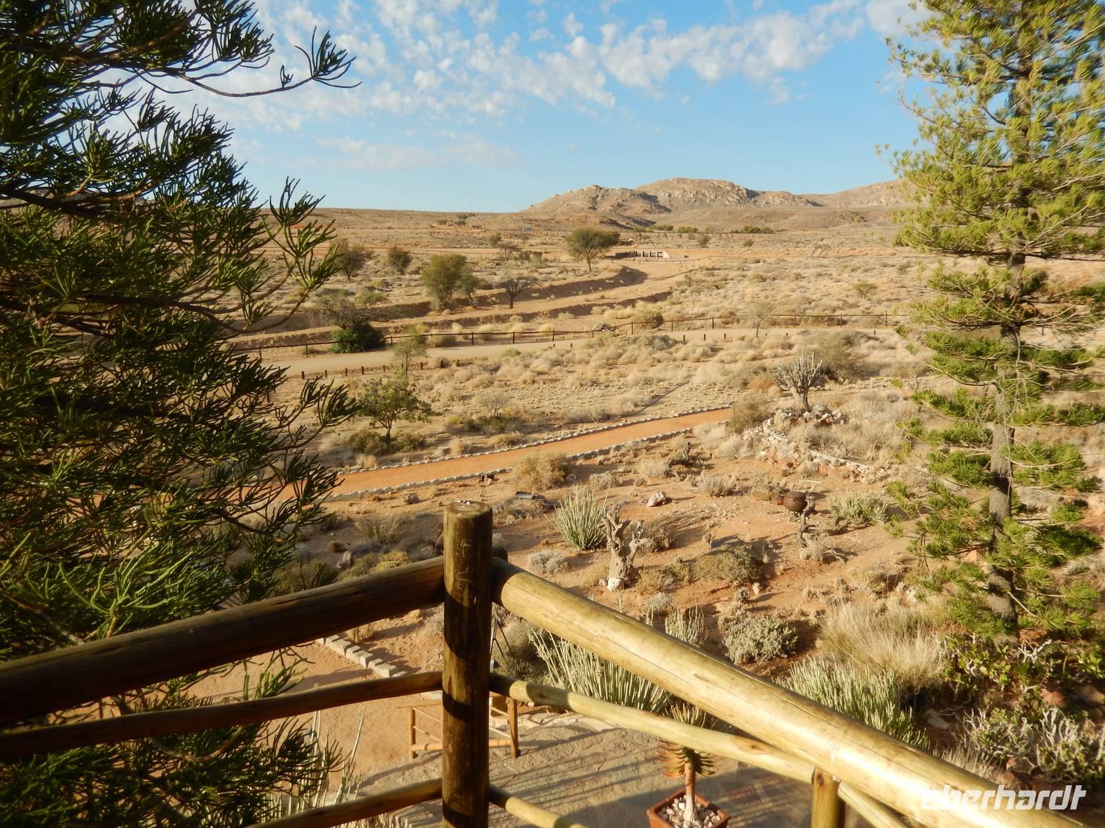 Ziel war anschließend die Namib Desert Lodge am Rande der Namib-Wüste und den Naukluftbergen. Dieses Bergmassiv bildet einen Teil der sogenannten Großen Randstufe, die das Küstengebiet vom Binnenhochland trennt. Das schroffe Gebirge ragt bis zu 2000 Meter in die Höhe.