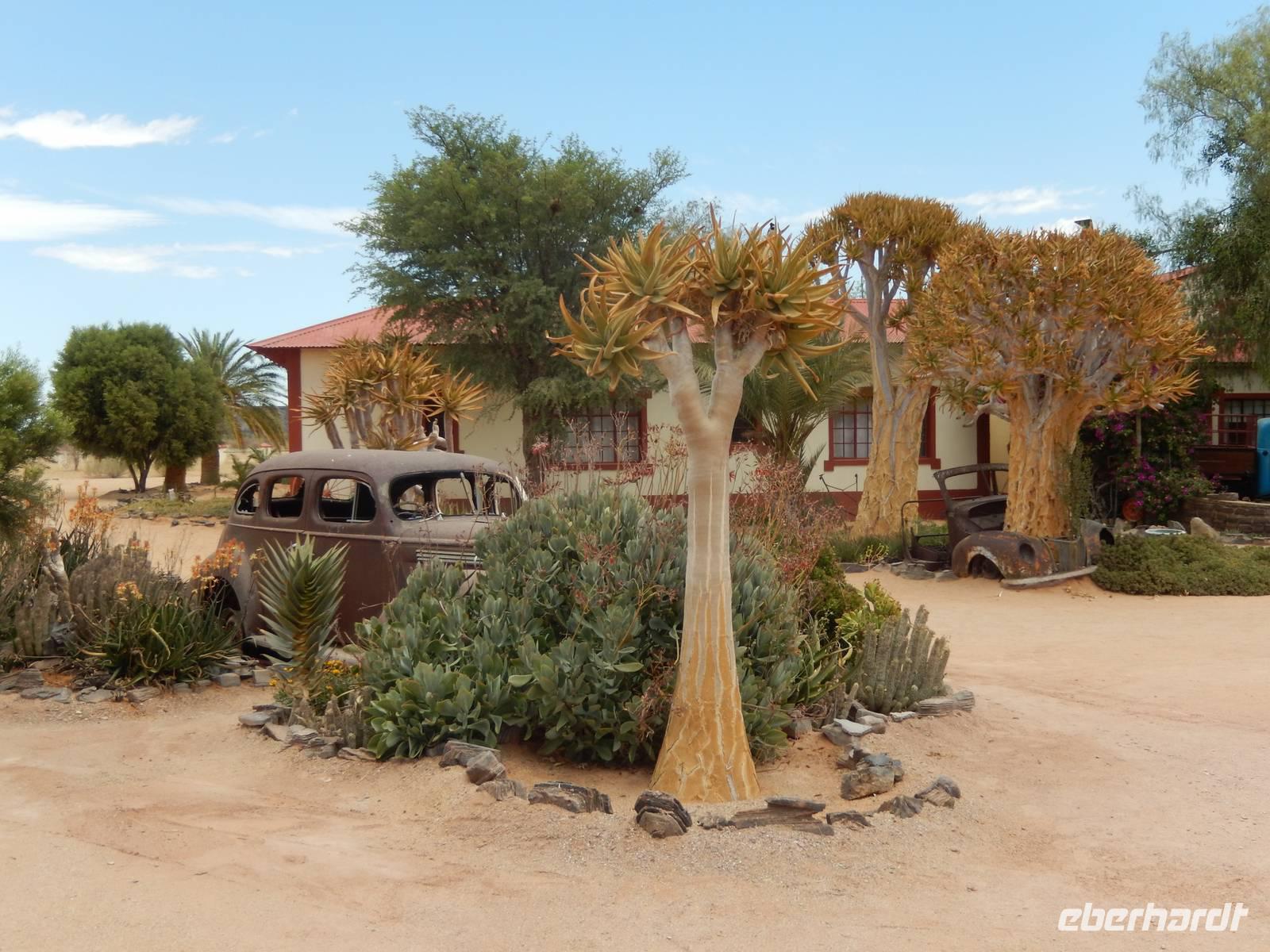 Nach wenigen Minuten erreichten wir unser heutiges Etappenziel: die alte Missionarsstadt Keetmanshoop. Nach dem Bezug unserer Zimmer in der Central Lodge, blieb noch Zeit die kleine Stadt auf eigene Faust zu erkunden. Bei einem Bummel durch die Straßen konnte man die deutsche Vergangenheit gut erkennen. Im kaiserlichen Postamt von 1910 befand sich die Touristeninformation und die Kirche beherbergt ein schönes Museum, das die Geschichte der Stadt illustriert.
