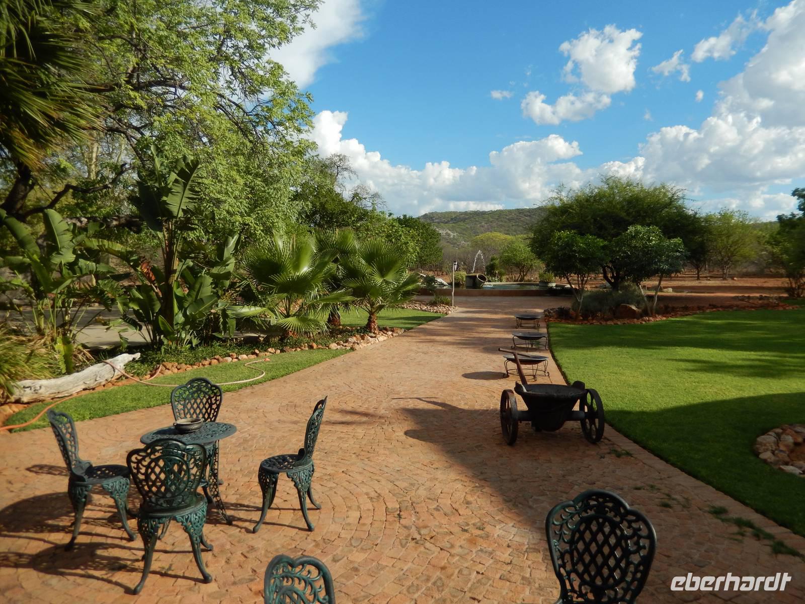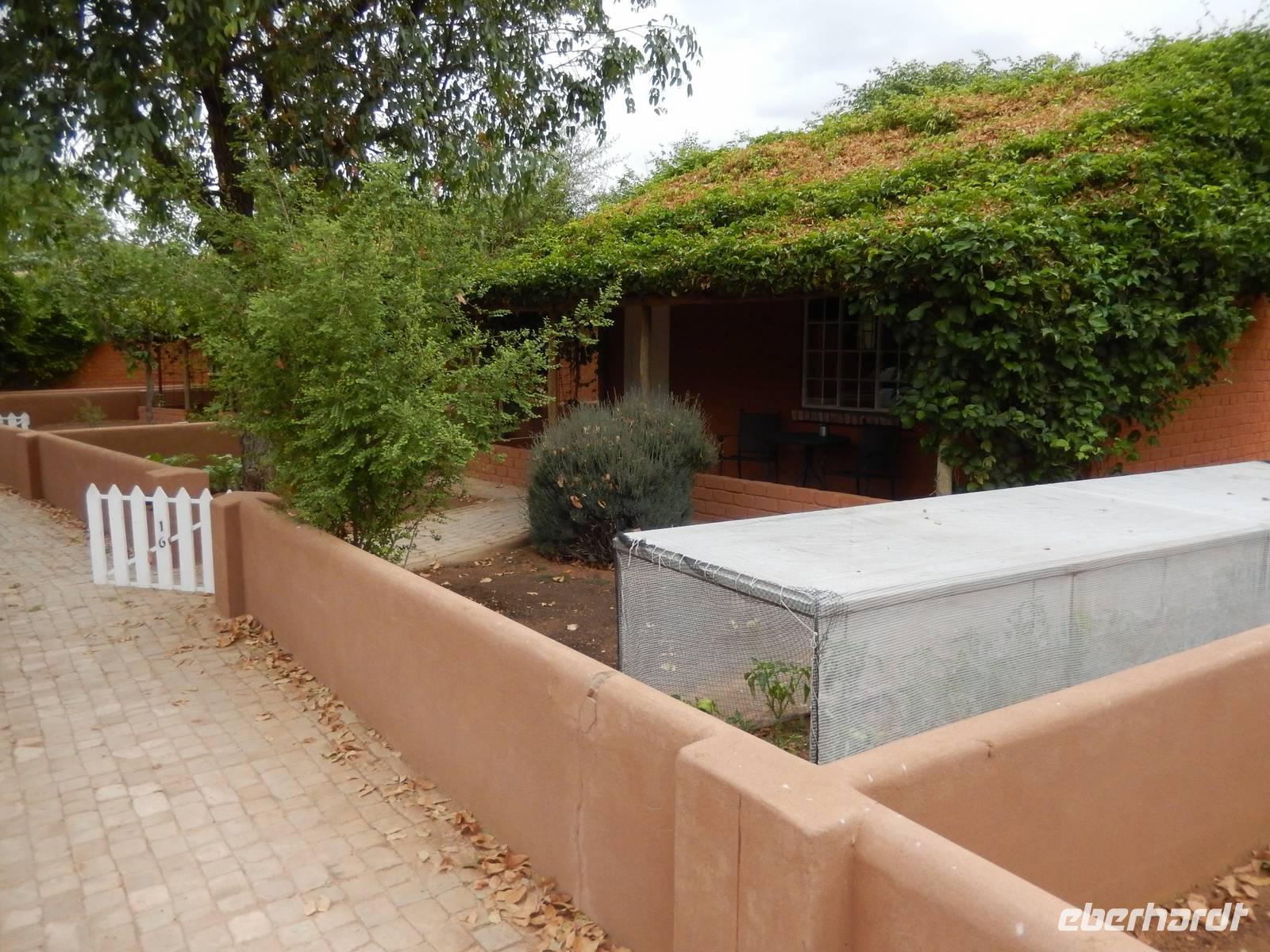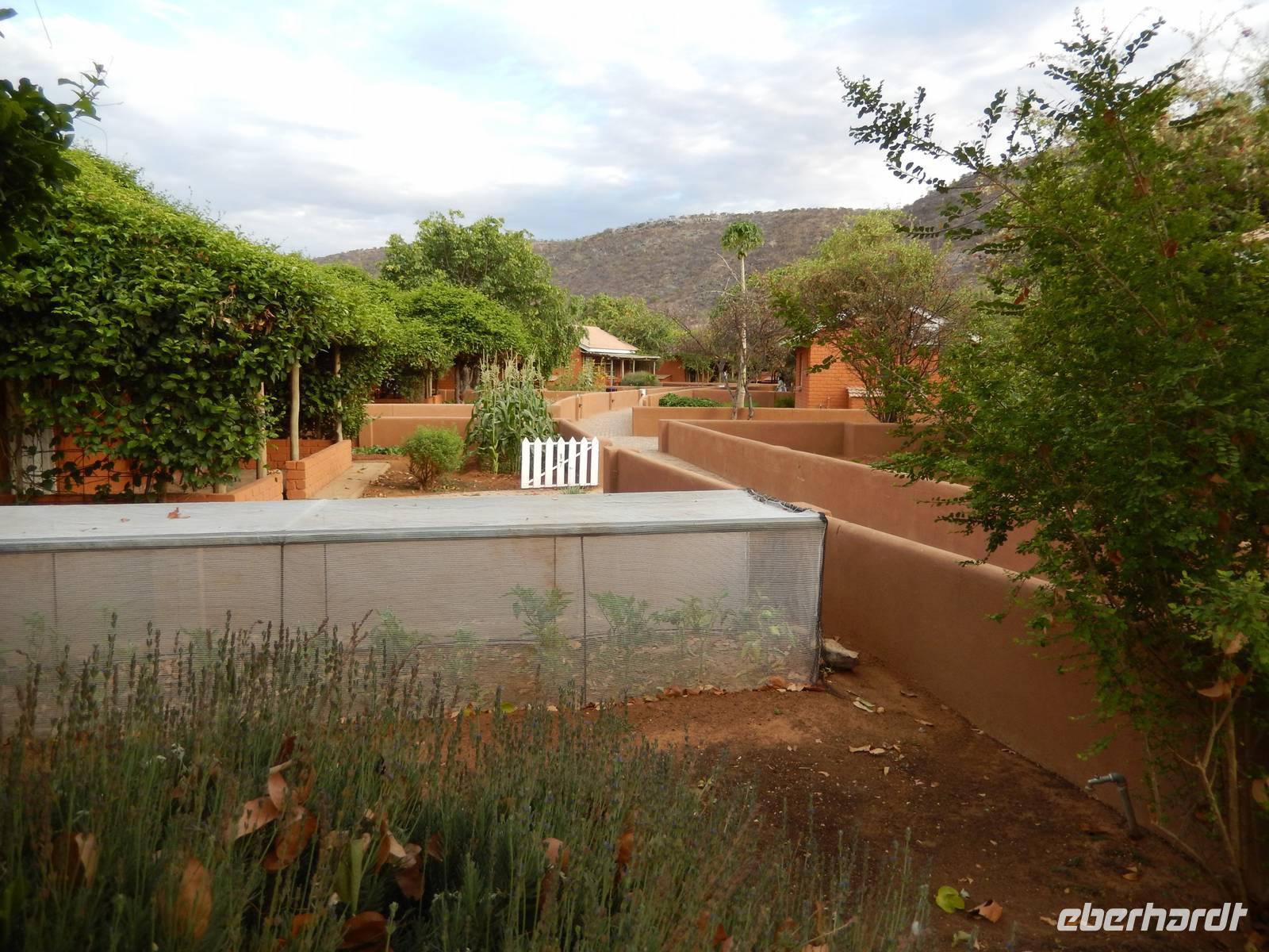 In unserer Lodge, der Damara Mopane Lodge, bezogen wir unsere kleinen Gartenhäuschen für eine Nacht. Das schöne war hier, dass jeder seinen eigenen kleinen Gemüsegarten hatte, denn die Lodge versorgt sich durch den Gemüse- und Obstanbau selbst.