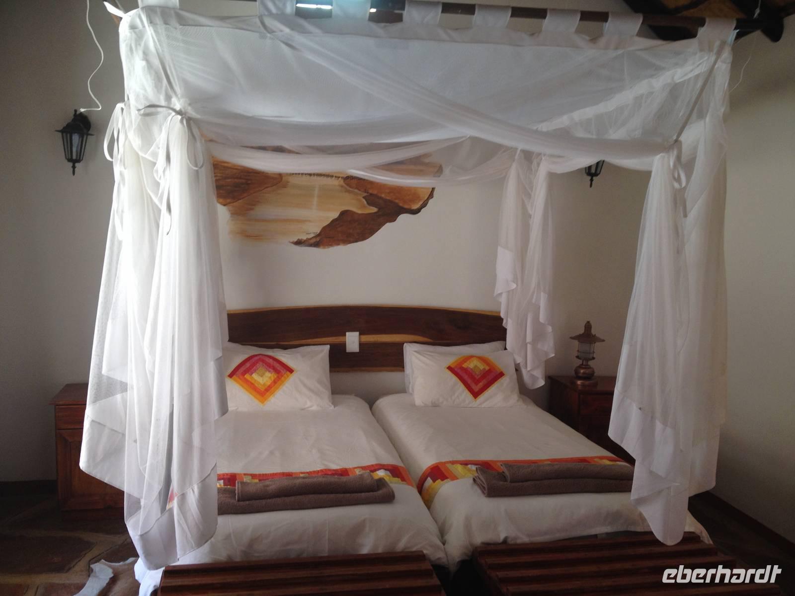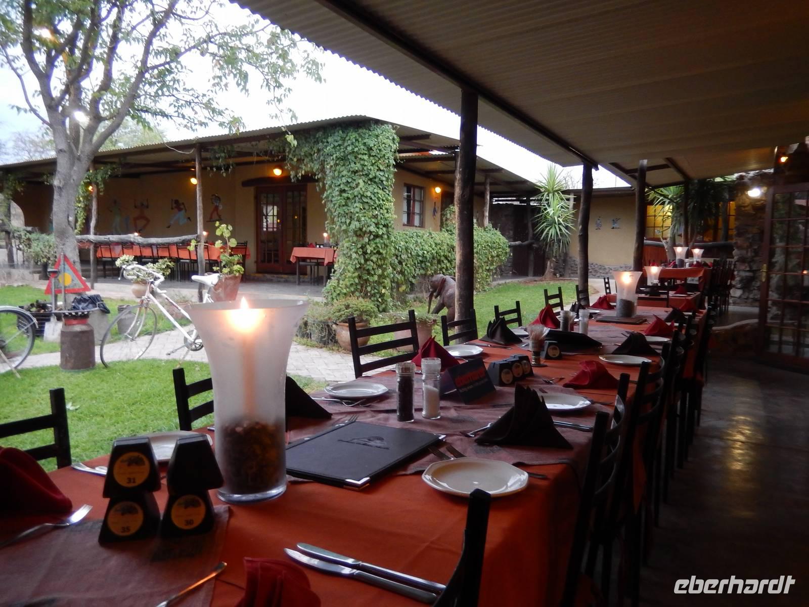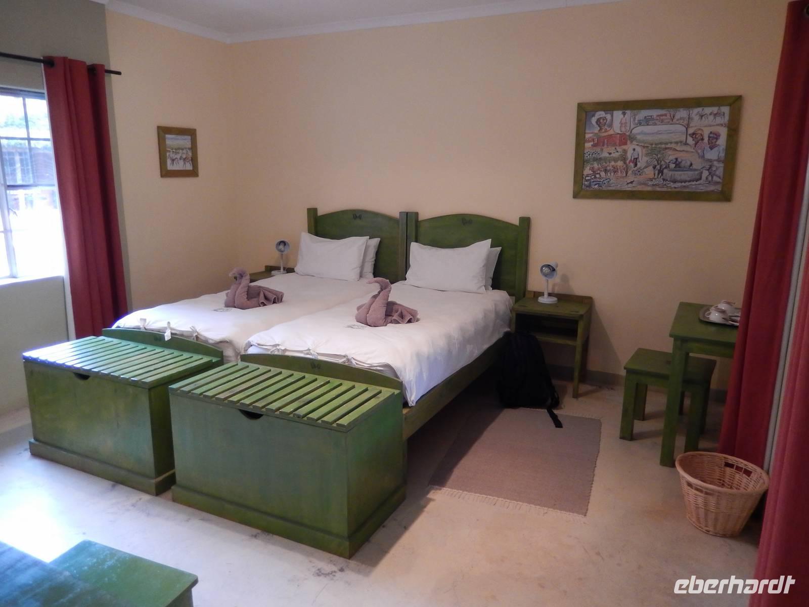 In unserer Lodge, der Damara Mopane Lodge, bezogen wir unsere kleinen Gartenhäuschen für eine Nacht. Das schöne war hier, dass jeder seinen eigenen kleinen Gemüsegarten hatte, denn die Lodge versorgt sich durch den Gemüse- und Obstanbau selbst.