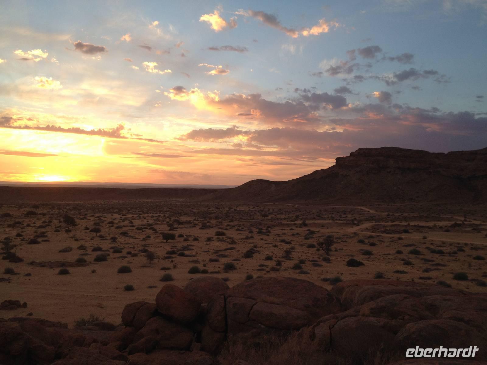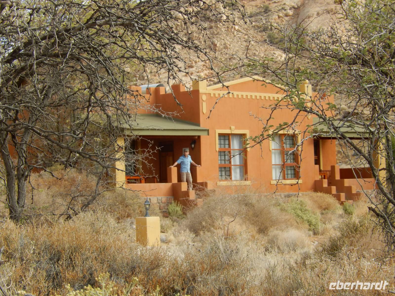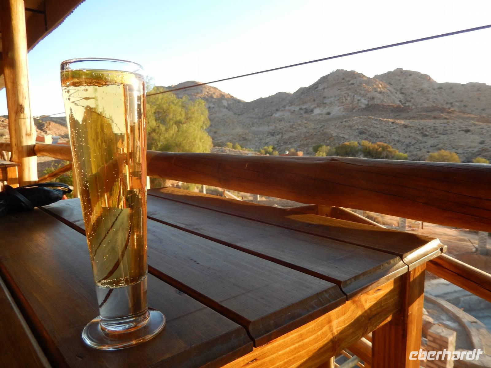 In der gemütlichen Gästefarm Klein Aus Vista schon fast am Rande des Diamantensperrgebietes bezogen wir unsere kleinen Hütten inmitten der Aus-Berge. Den Sonnenuntergang genossen wir entweder auf der eigenen Veranda oder im Haupthaus auf dem gemütlichen Balkon. Zum Abendessen wurden wir wieder mit kulinarischen Leckereien verwöhnt.
