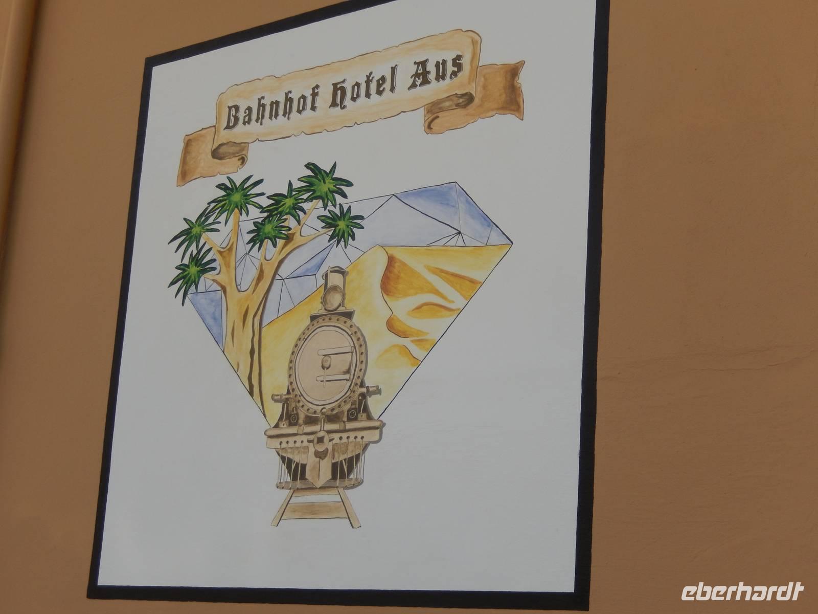Heute leben hier in Aus nur noch eine Handvoll Menschen. Wir wussten, dass es im Bahnhofshotel in Aus ganz leckeren Kuchen gibt und so stoppten wir hier für eine Weile und ließen uns Schokoladentorte, Kiwitorte oder Karottenkuchen schmecken.