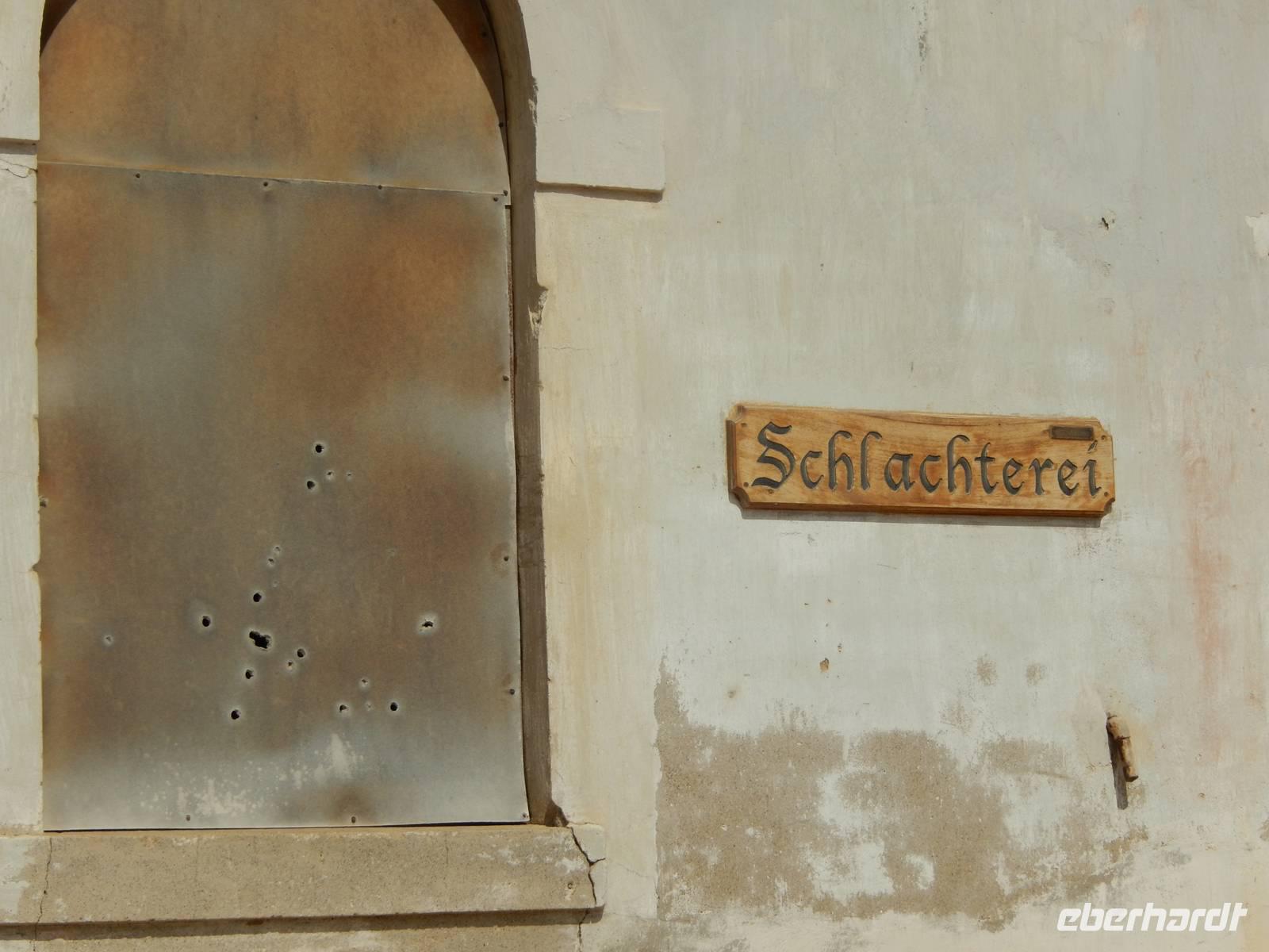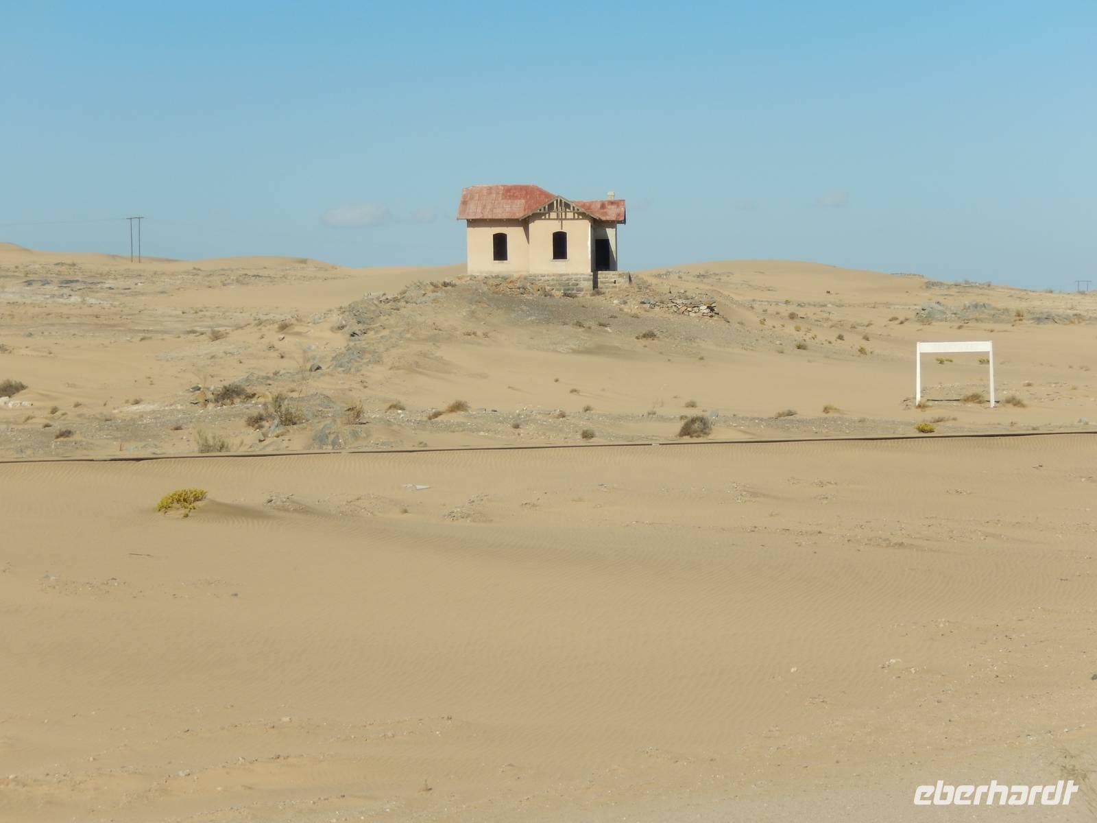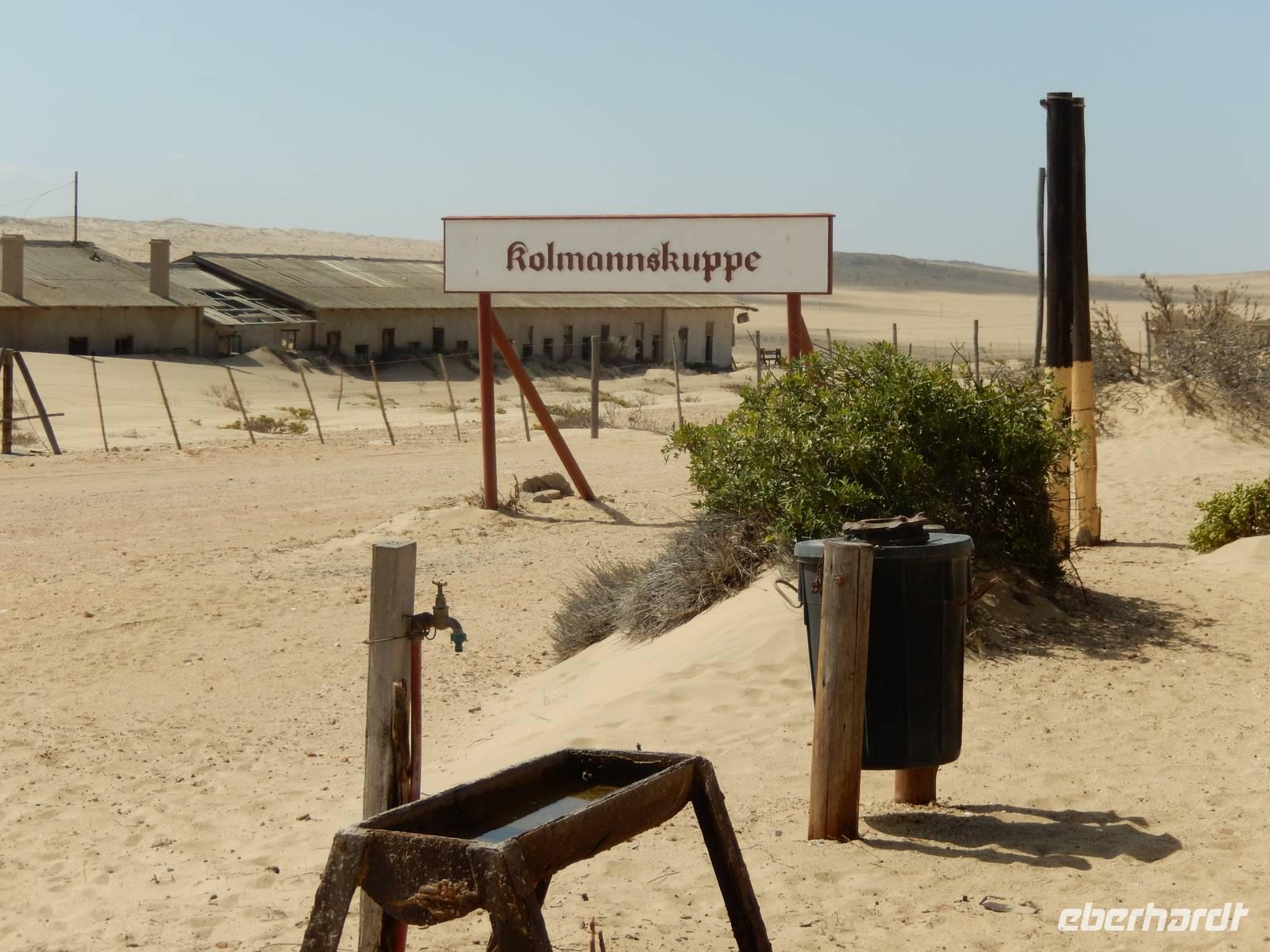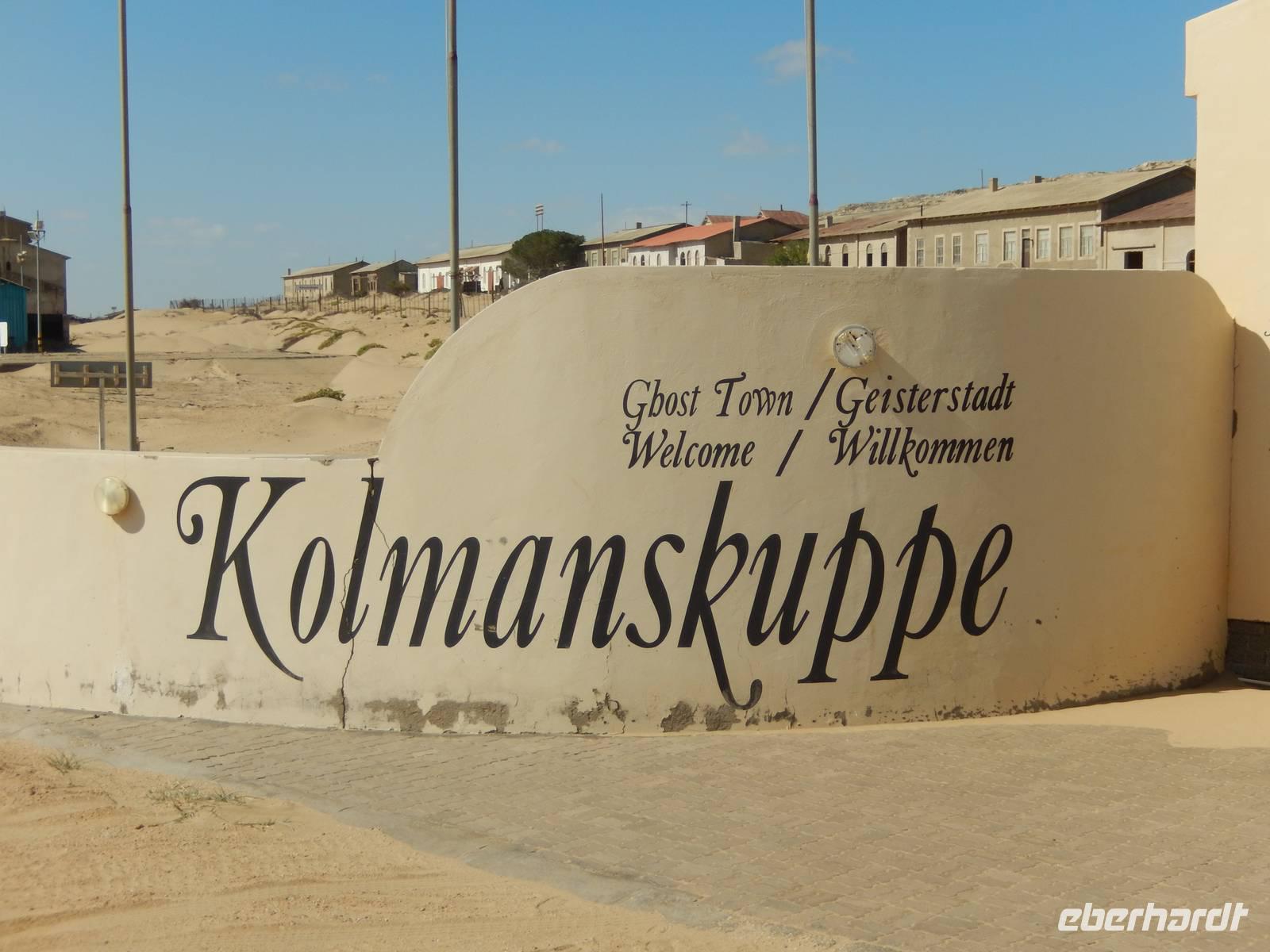 Immer entlang der Bahnschiene fuhren wir nach Westen, stetig bergab. Links und rechts der Straße warnen Schilder vor Sand und Wind. Und genau deswegen hatten die unerfahrenen Kolonialisten aus Deutschland im damaligen Südwestafrika alle Hände voll zu tun, die Schiene vom Sand zu befreien. Wir stoppten an der vegetationslosen, nur vom Wüstensand umgebenen Bahnstation Grasplatz, wo Oberbahnmeister August Stauch 1908 von seinem Mitarbeiter und "Schienenkehrer" eines Tages einen funkelnden Stein bekam. Härte: 10! In diesem Augenblick wurde er zum Diamantenkönig Südwestafrikas und der Diamantenrausch begann. Ein Diamanten-Sperrgebiet wurde proklamiert und innerhalb von zwei Jahren entstand Kolmanskop in der kargen Sandwüste, ein kompletter Ort mit Schule, einem bestens ausgestatteten Krankenhaus, einer Eisfabrik, einem Kasino mit Kegelbahn und exklusiven Wohnhäusern. Die Diamantenindustrie boomte, doch als es schwieriger wurde, die Diamanten an der Oberfläche einfach "abzulesen", wurde die industrielle Diamantenproduktion in Elizabeth Bay etwas südlich von Kolmanskop gegründet. Bis zum ersten Weltkrieg konnten so über 1000 Kilo Diamanten gefördert werden. Nach dem Krieg gingen die Diamantenfunde sehr stark zurück. Außerdem wurden weiter südlich bei Oranjemund erheblich größere Diamanten gefunden. Kolmanskop wurde - ebenso wie Elizabeth Bay - zur Geisterstadt! Mit dem örtlichen Guide William machten wir uns ein Bild von der Geisterstadt mitten im Wüstensand. Sand soweit das Auge reicht, nahezu verschluckt wurde Kolmanskop von ihm. Einsam und verlassen stehen die Häuser noch hier, Menschen leben hier nicht mehr, der letzte verließ seine Behausung in den 60er Jahren. Längst hat die Wüste den Ort eingenommen. Unaufhaltsam dringt der Sand durch Türen und Fenster in die Häuser, bedeckt den Boden, macht ein Leben hier unmöglich.