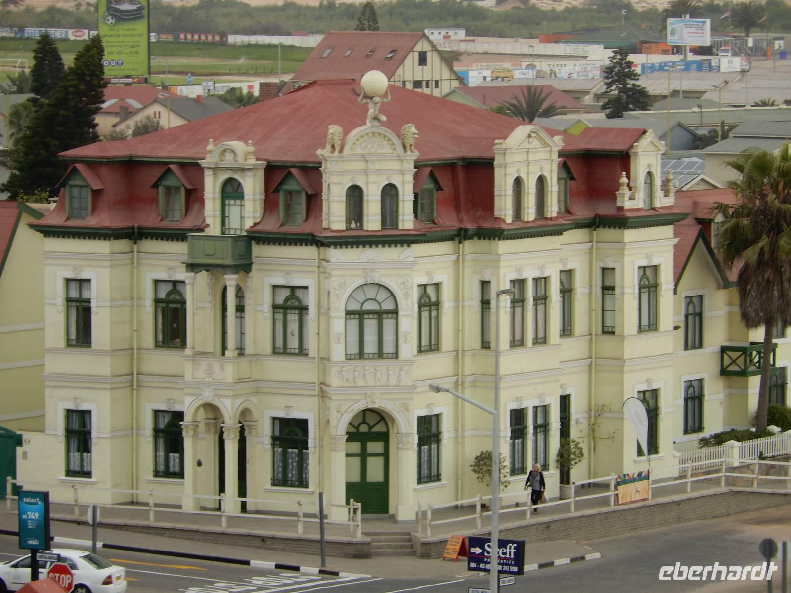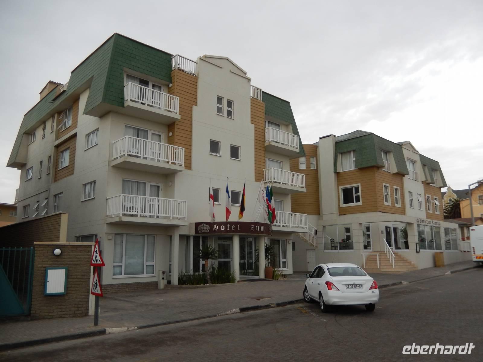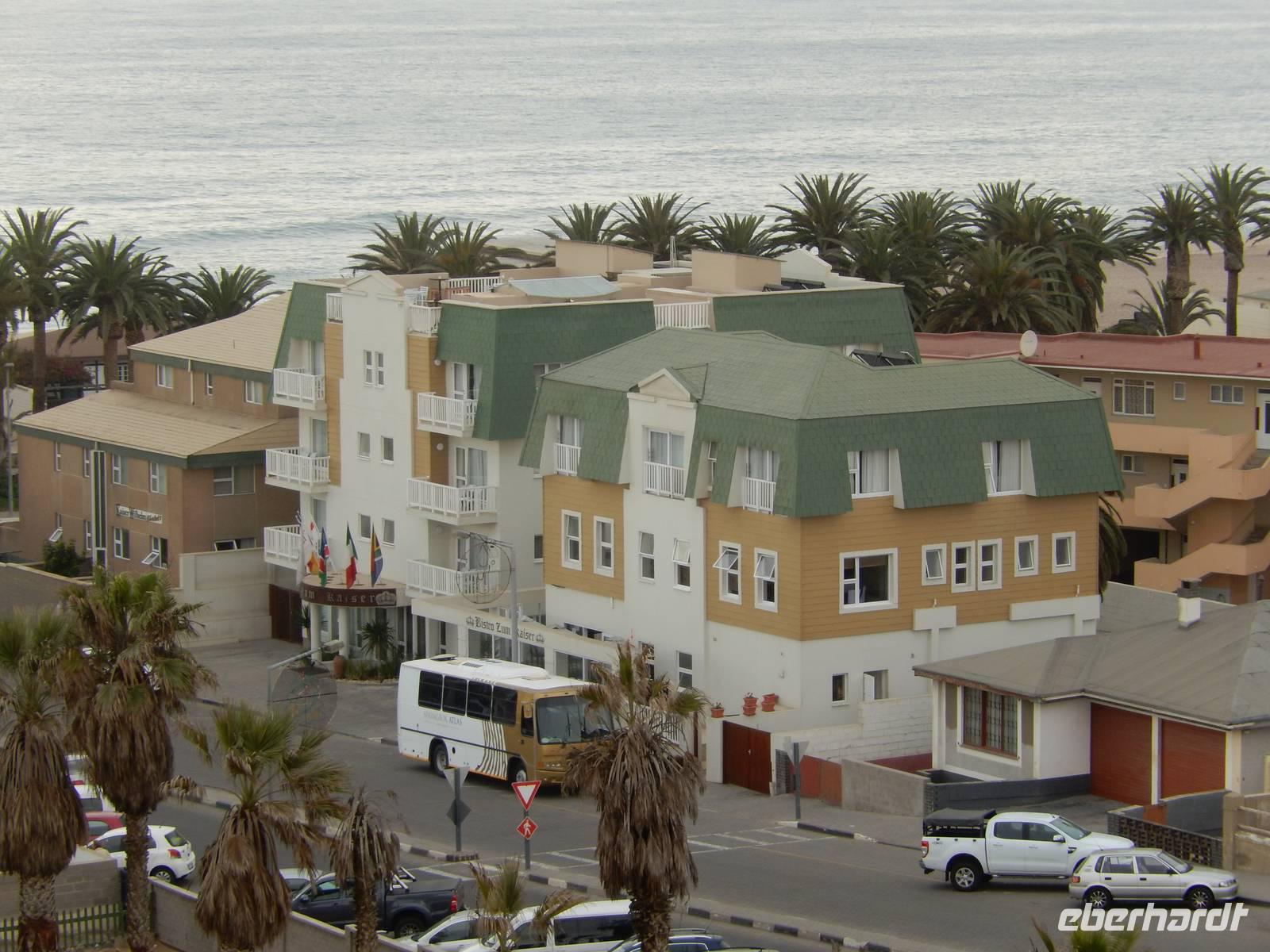 Ja, nun waren wir hier - in der wohl deutschesten Stadt des Landes. Kaum eine andere Stadt in Namibia hat so viele deutsche Einflüsse wie Swakopmund. Rund fünf Prozent der Einwohner sind deutscher Abstammung und viele leben hier in zweiter oder dritter Generation. Obwohl inzwischen viele Straßen afrikanische Namen erhalten haben, bleibt der deutsche Einfluss unverkennbar. Am Ende der Kaiser-Wilhelm-Straße, unmittelbar am Meer und mit Blick auf die Seebrücke, befand sich unser Hotel "Zum Kaiser" in dem wir herzlich begrüßt wurden. Durch die zentrale Lage stand einem Stadtbummel zu Fuß am Nachmittag nichts mehr im Wege.