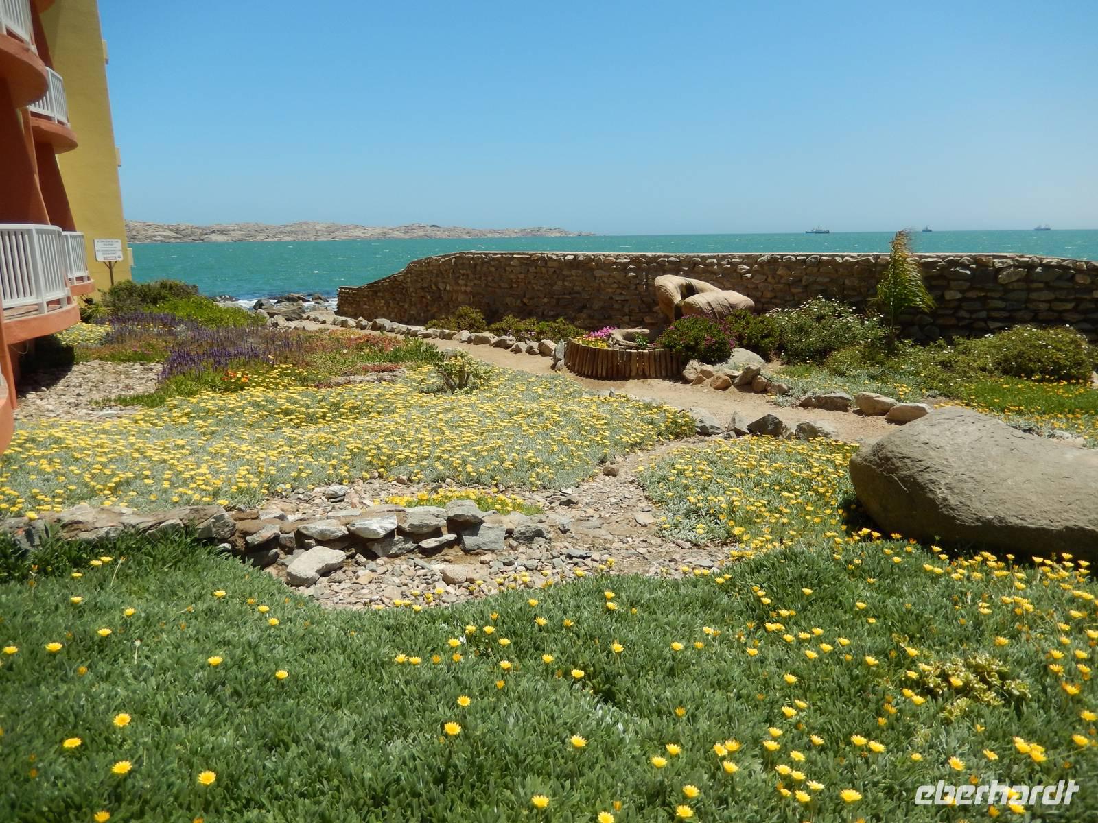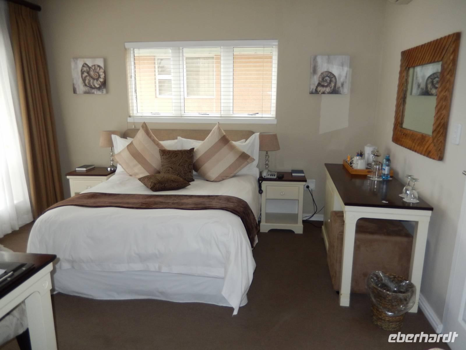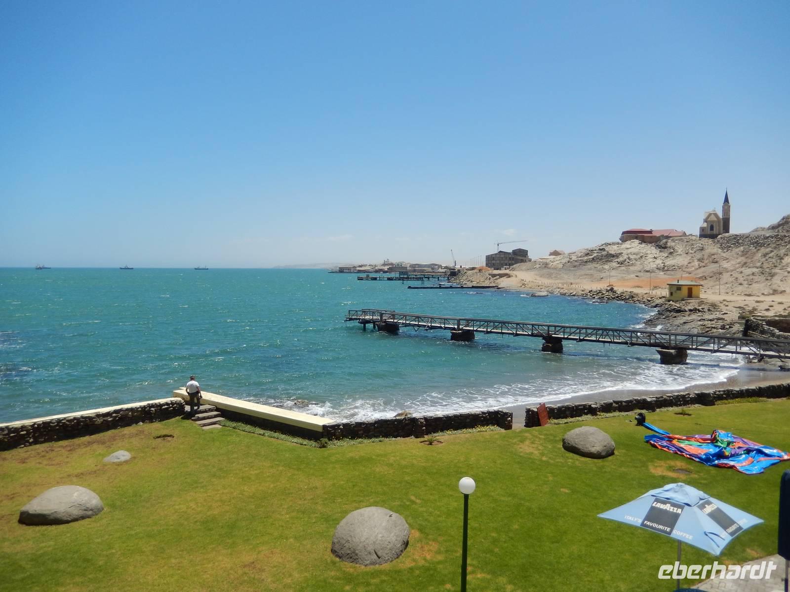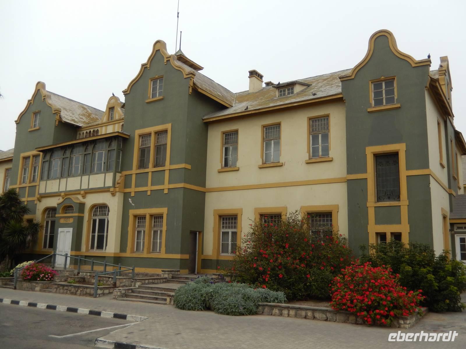 Ja, nun waren wir hier - in der wohl deutschesten Stadt des Landes. Kaum eine andere Stadt in Namibia hat so viele deutsche Einflüsse wie Swakopmund. Rund fünf Prozent der Einwohner sind deutscher Abstammung und viele leben hier in zweiter oder dritter Generation. Obwohl inzwischen viele Straßen afrikanische Namen erhalten haben, bleibt der deutsche Einfluss unverkennbar. Am Ende der Kaiser-Wilhelm-Straße, unmittelbar am Meer und mit Blick auf die Seebrücke, befand sich unser Hotel "Zum Kaiser" in dem wir herzlich begrüßt wurden. Durch die zentrale Lage stand einem Stadtbummel zu Fuß am Nachmittag nichts mehr im Wege.