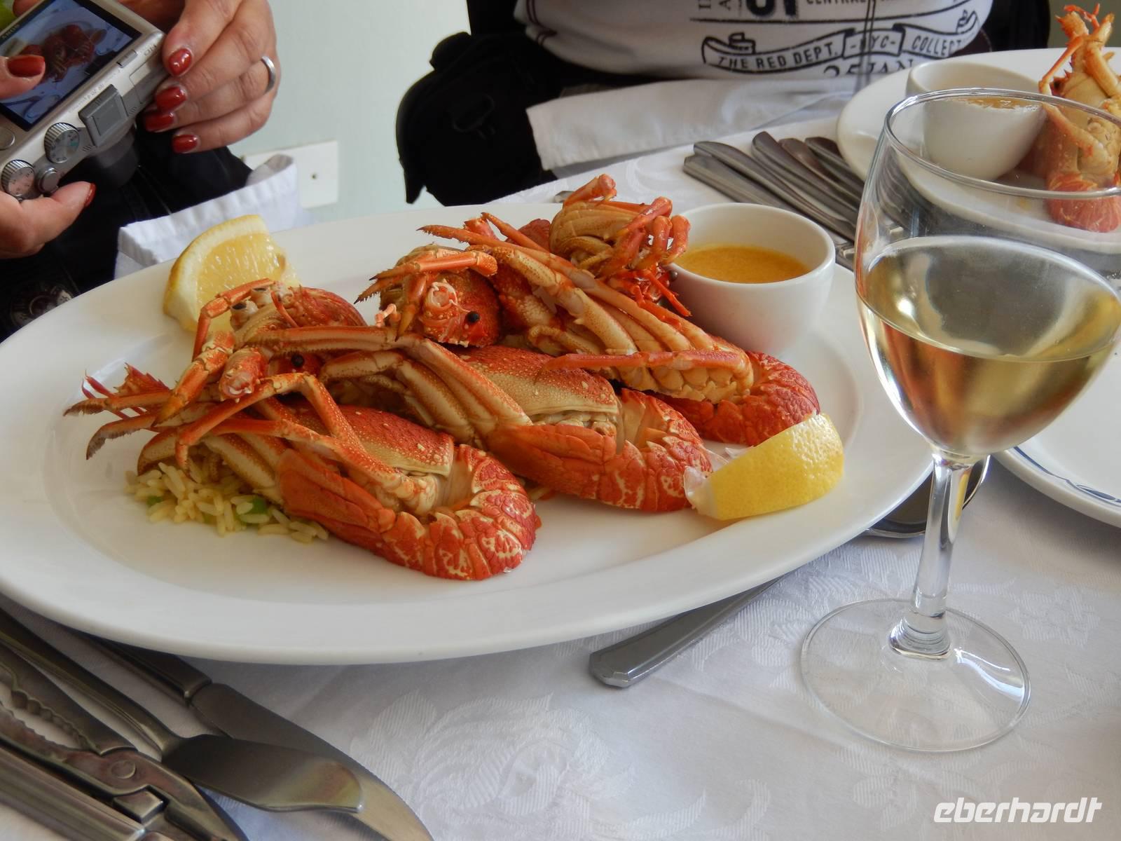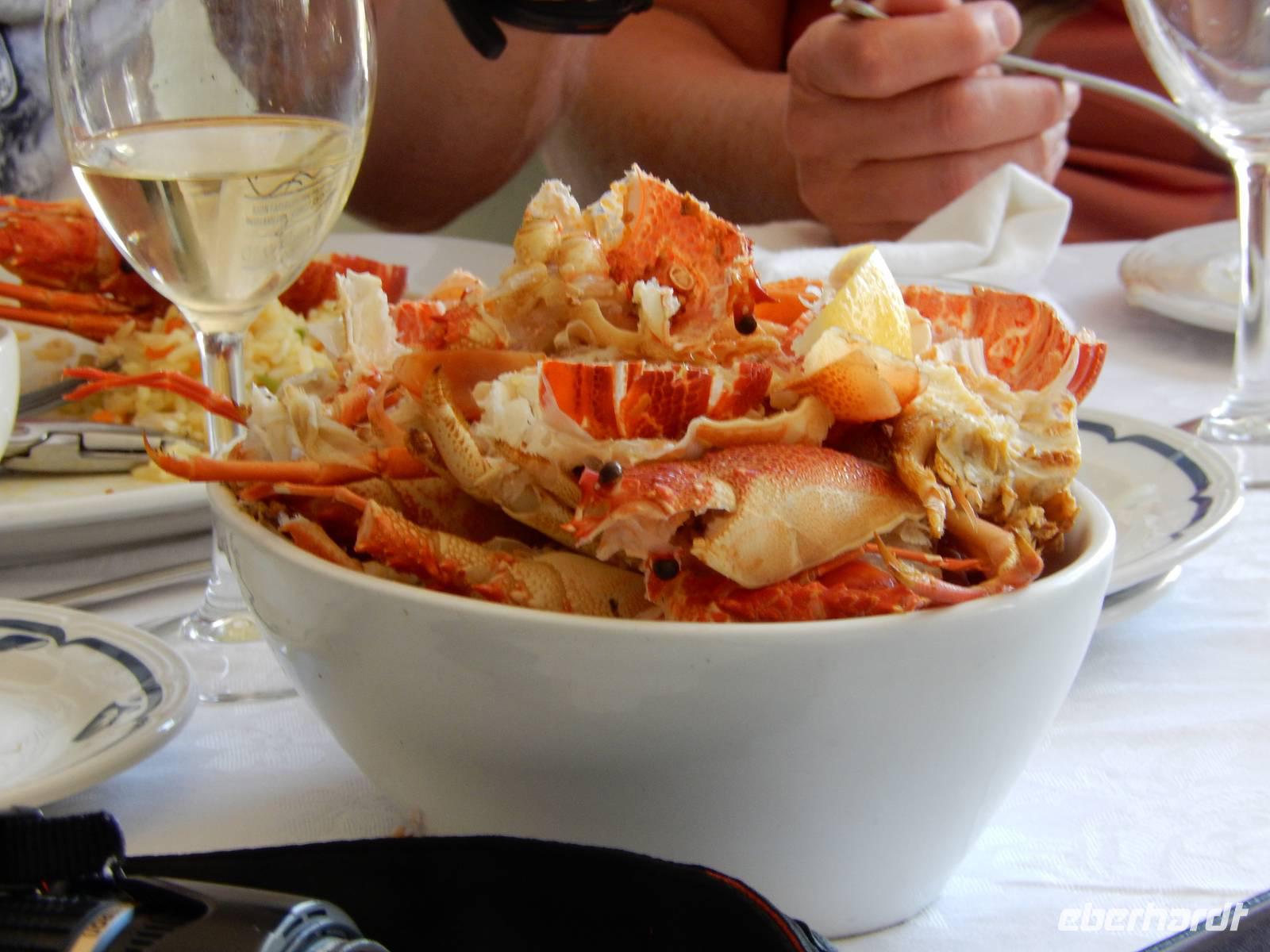 Dann legten wir erst einmal eine Mittagspause im schönen Nest-Hotel direkt am Meer ein. Ein leckeres Buffet stand zu Auswahl. Aber auch die Fischliebhaber kamen heute voll auf ihre Kosten. Beste Langusten und die frischesten Meerestiere standen auch auf der Speisekarte!