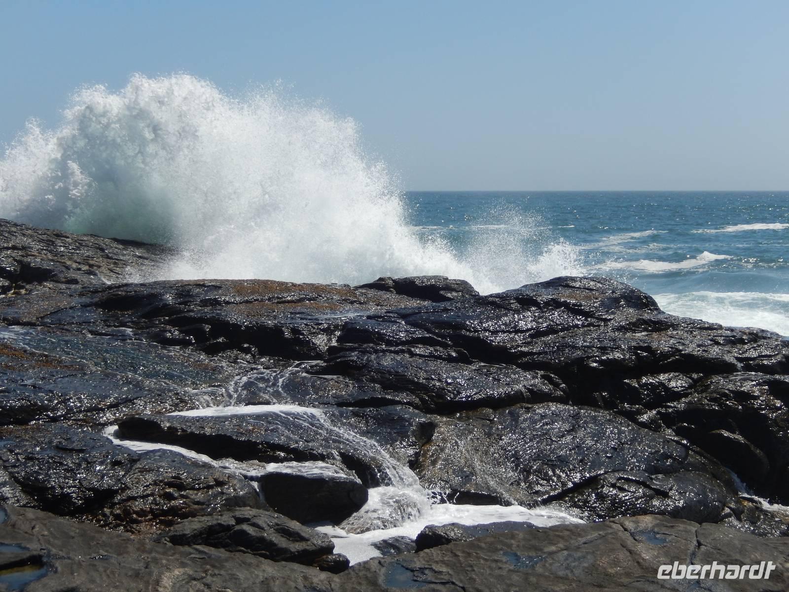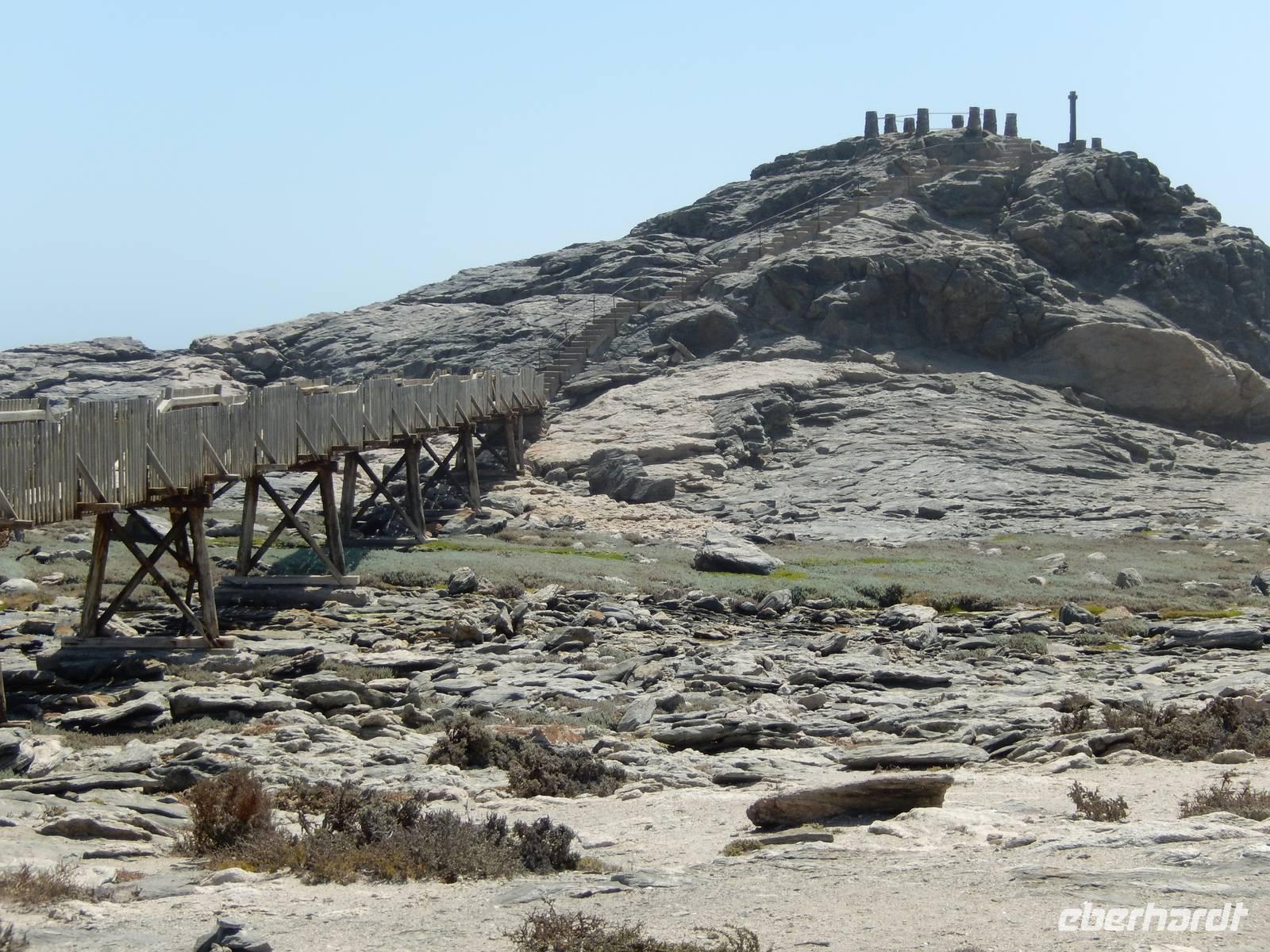 Gut gestärkt machten wir uns auf den Weg zur Lüderitz-Bucht-Halbinsel. Die stark zerklüftete Küste ähnelt einer Mondlandschaft. Unser Ziel war der Diaz-Point, der nach dem portugiesischen Seefahrer Bartolomeu Diaz benannt wurde, welcher 1487 als erster Europäer hier landete. Der Wind pfiff uns um die Ohren, der mächtigen Wellen prallten gegen die Felsküste. Vor der Küste beobachteten wir eine riesige Robbenkolonie und nach dem Muschelsammeln machten wir uns wieder auf dem Weg in Richtung Lüderitz, wo wir am Hafen noch eine kleine Pause einlegten.