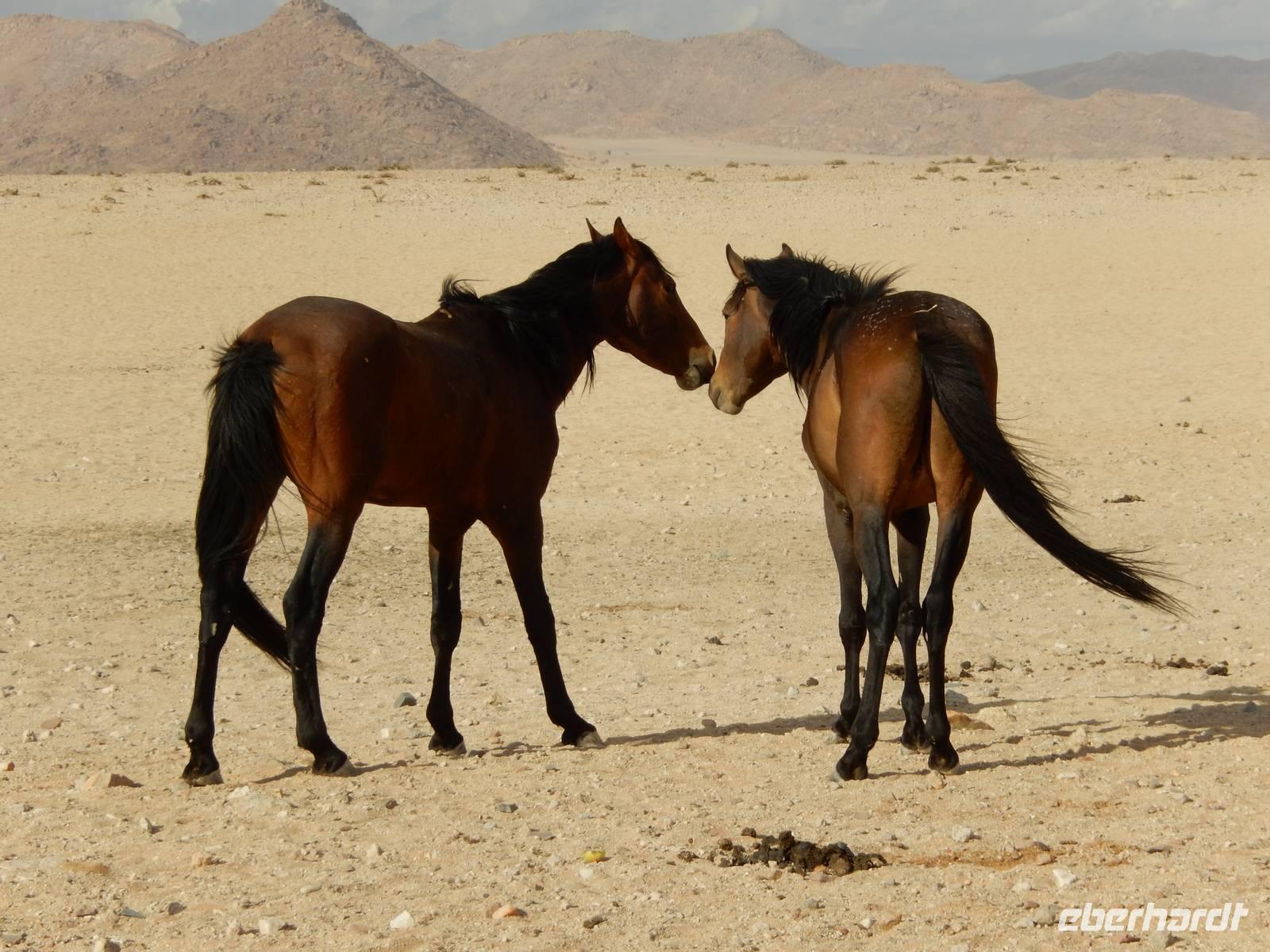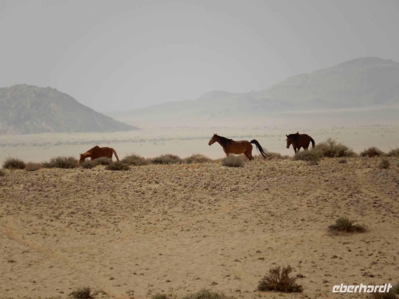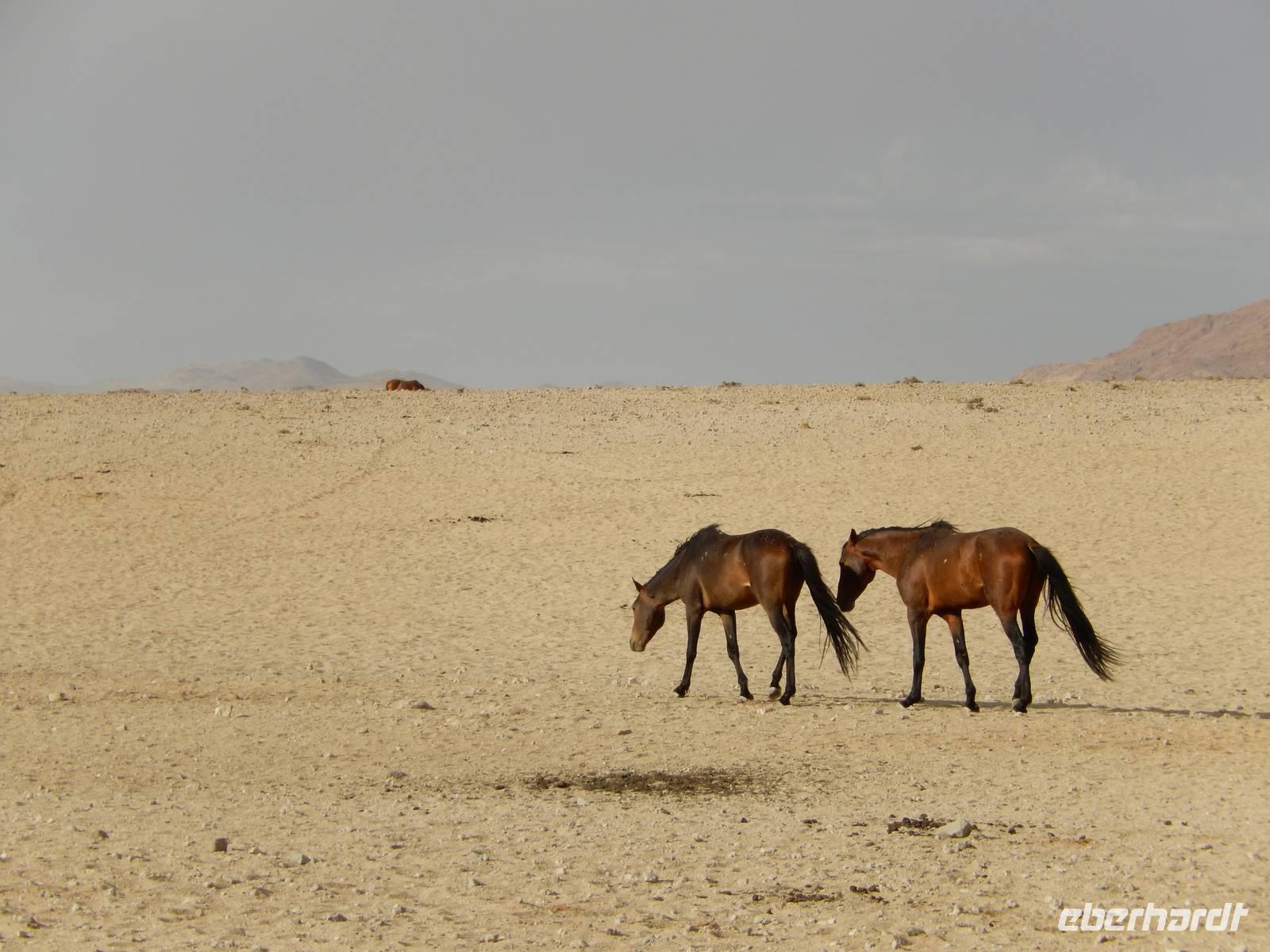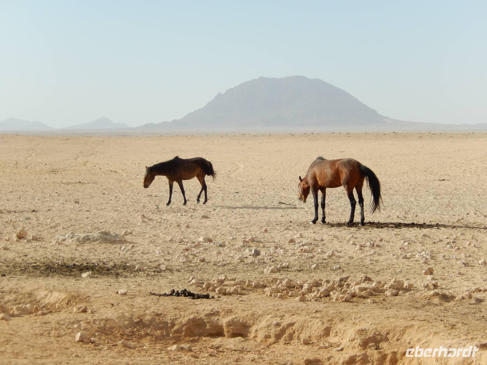 Niemand wusste bisher ganz genau, woher die Wildpferde stammen. Es wurde vermutet, dass es sich um die Nachkommen der Reittiere der deutschen Schutztruppe handelt. Eine andere These besagte, dass sie aus der einstigen Pferdezucht des Barons Hansheinrich von Wolf von der Farm Duwisib südlich von Maltahöhe stammen. Neuere Untersuchungen haben allerdings ergeben, dass die Pferde aus der südafrikanischen Kavallerie entstammen, die - im Kampf gegen die Deutsche Schutztruppe - 1915 hier mit 1700 Tieren lagerte. Durch einen deutschen Fliegerangriff wurden die in Panik flüchtenden Pferde in die Wüste vertrieben und konnten nicht wieder eingefangen werden.