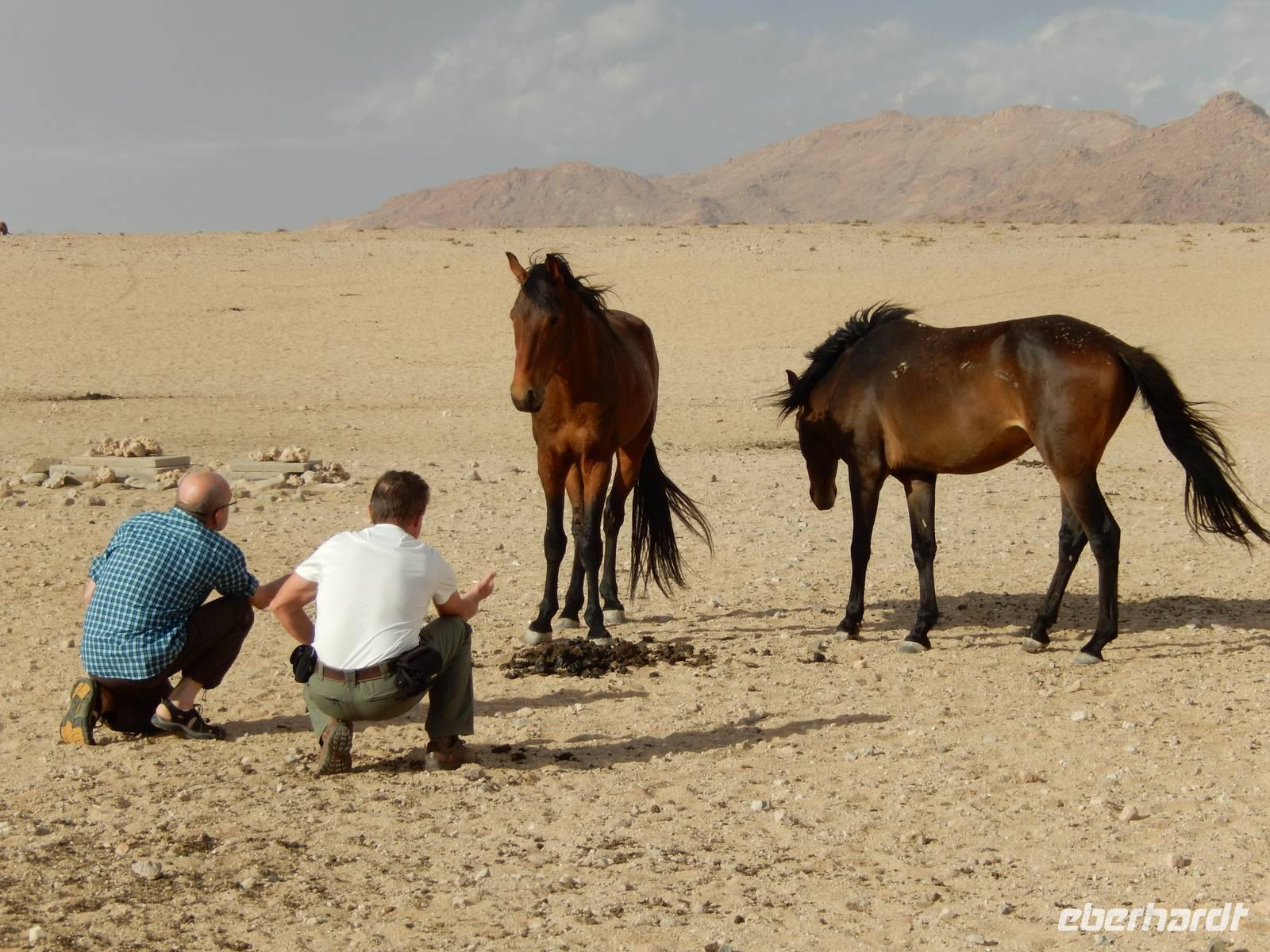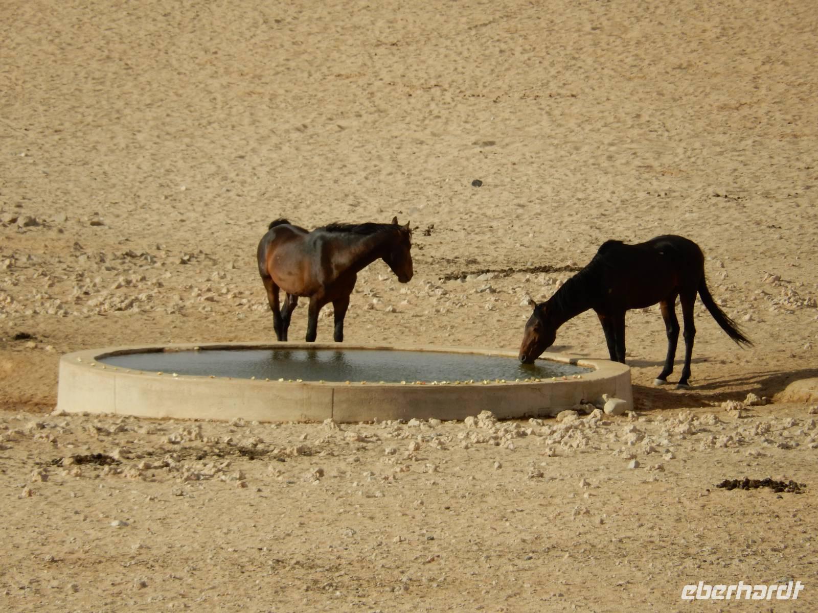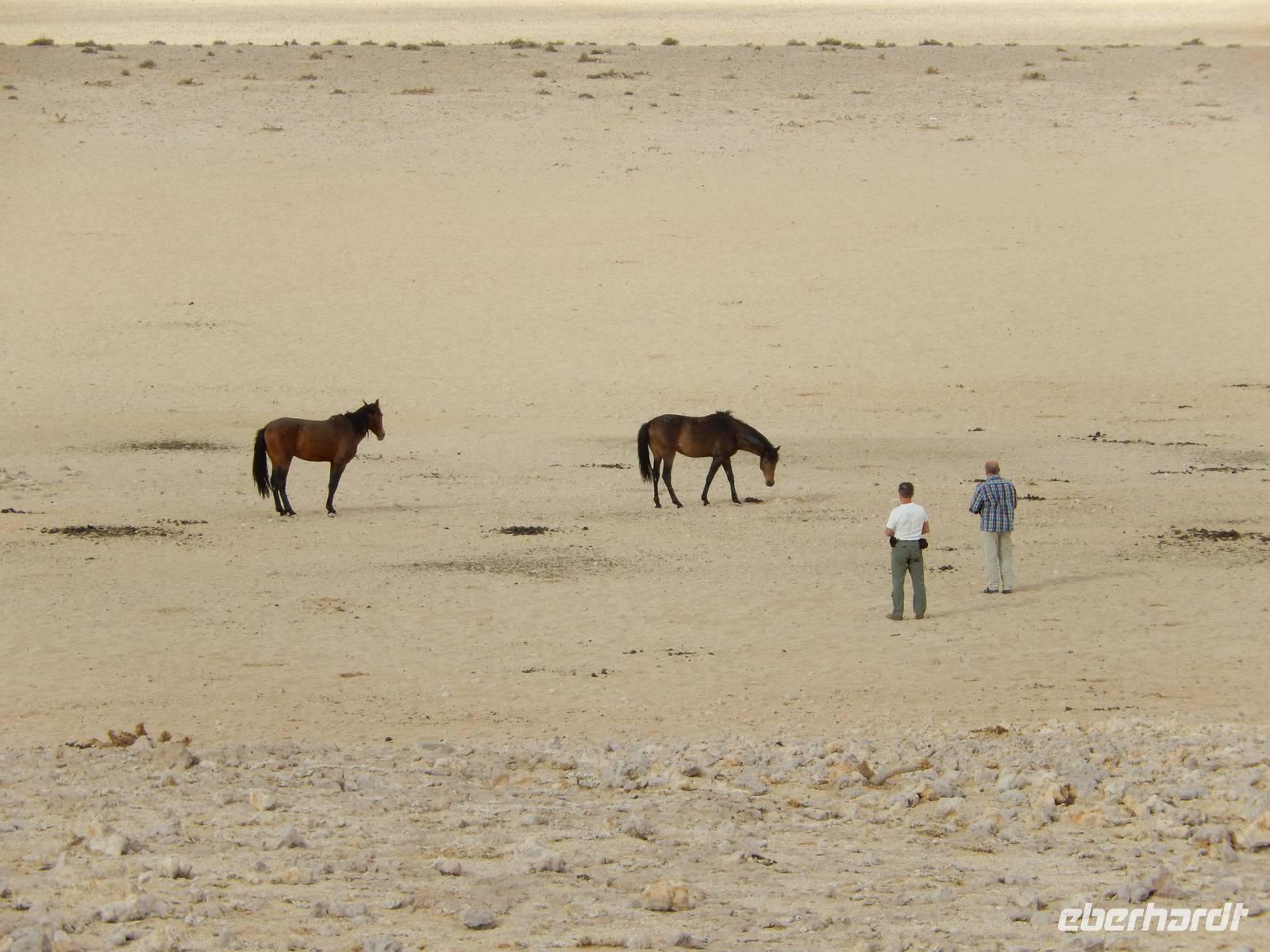 Nun kamen wir zu den Wildpferden der Namib-Wüste, die sich im Gebiet um Aus angesiedelt haben. Bei der Wasserstelle Garub beobachteten wir die außergewöhnlichen Tiere, die sich an die extremen Lebensbedingungen in der Wüste angepasst haben. Leider hatten sie nicht so richtig Appetit auf unsere mitgebrachten Äpfel.