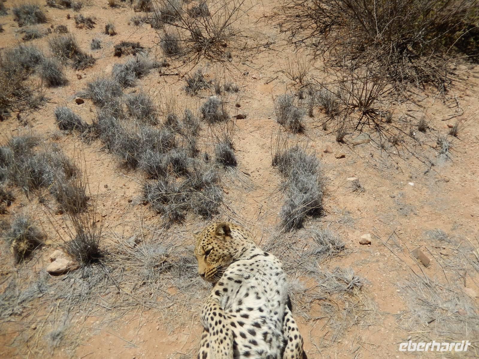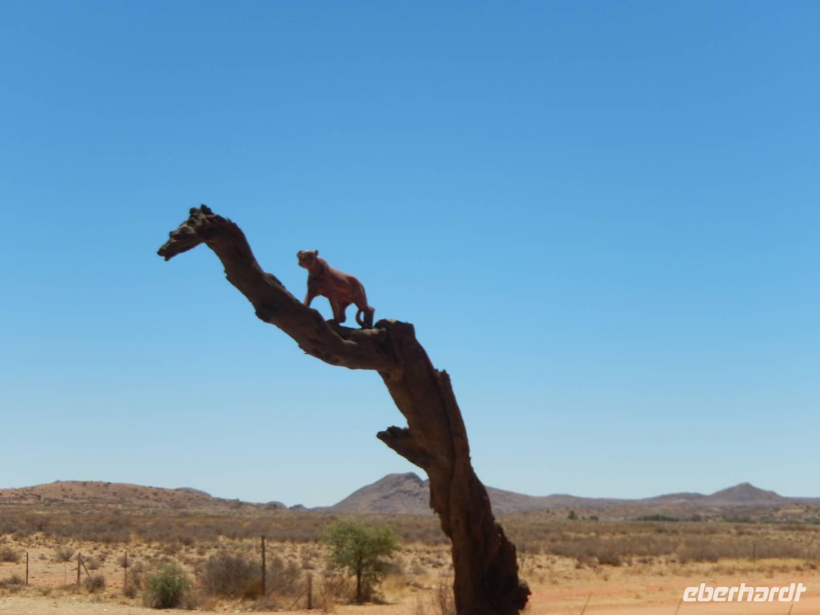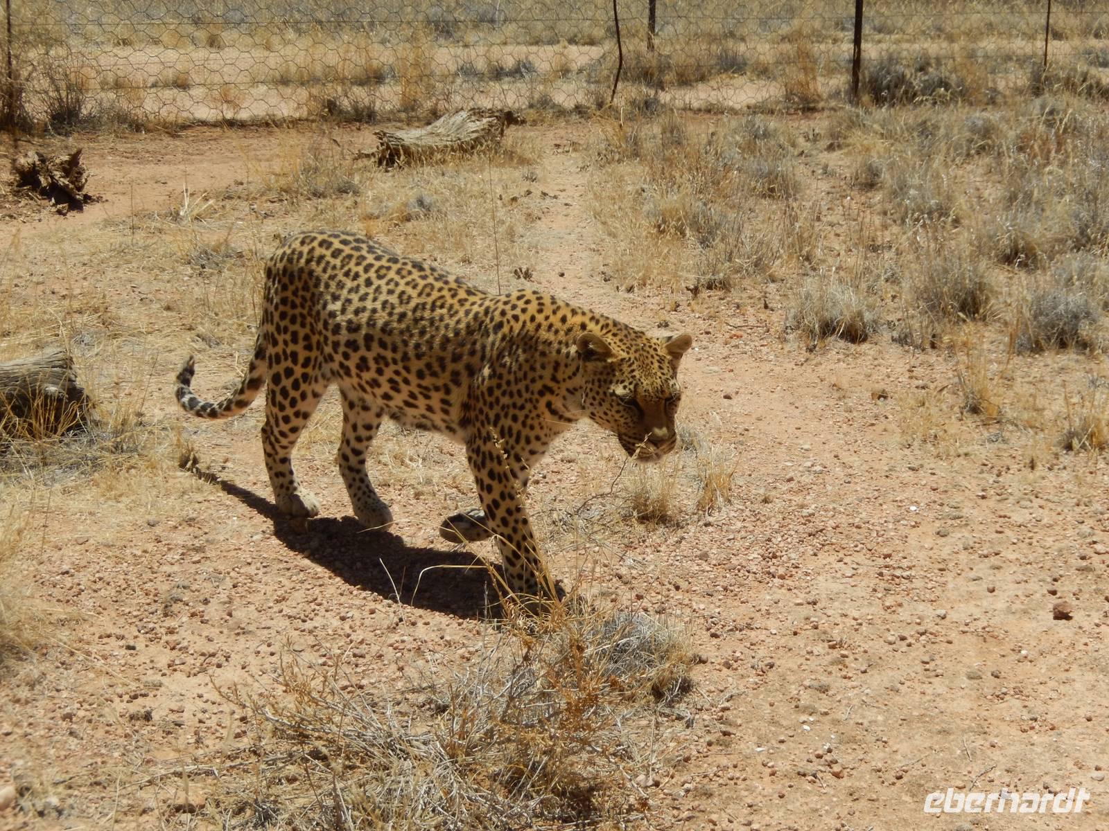 Über den Tsaris-Pass (1.630 Meter) überquerten wir den gleichnamigen Gebirgszug und machten dann in der Hammerstein-Lodge eine Pause. Hier trafen wir bei unseren "Cat-Walk" auf die beiden Wüstenluchse (Karakal) Romeo und Julia, auf die 2 Geparden Oscar und Wilde sowie auf die Leopardendame Lisa. Außer bei ihr durften wir ganz nah an die Tiere herangehen!