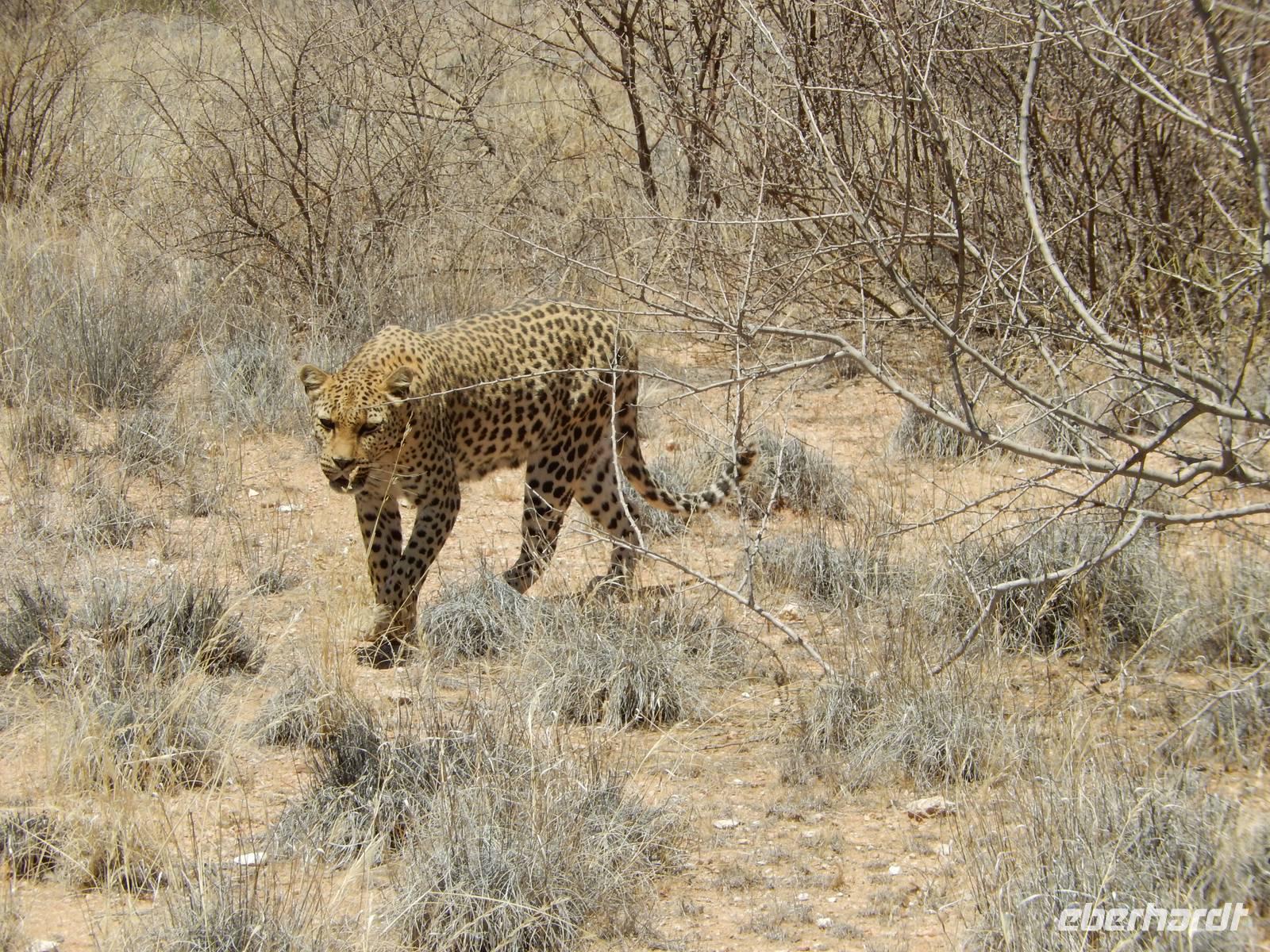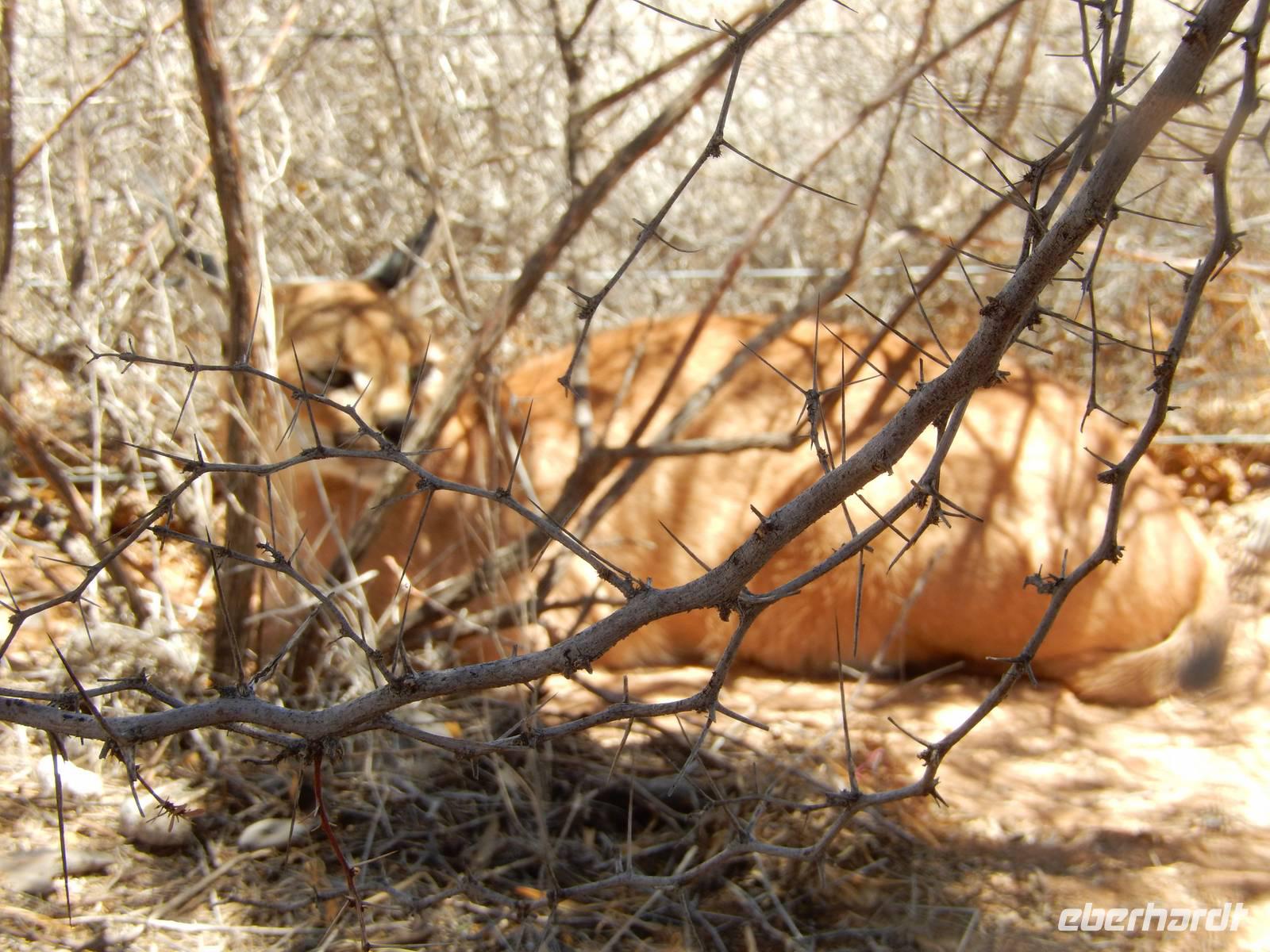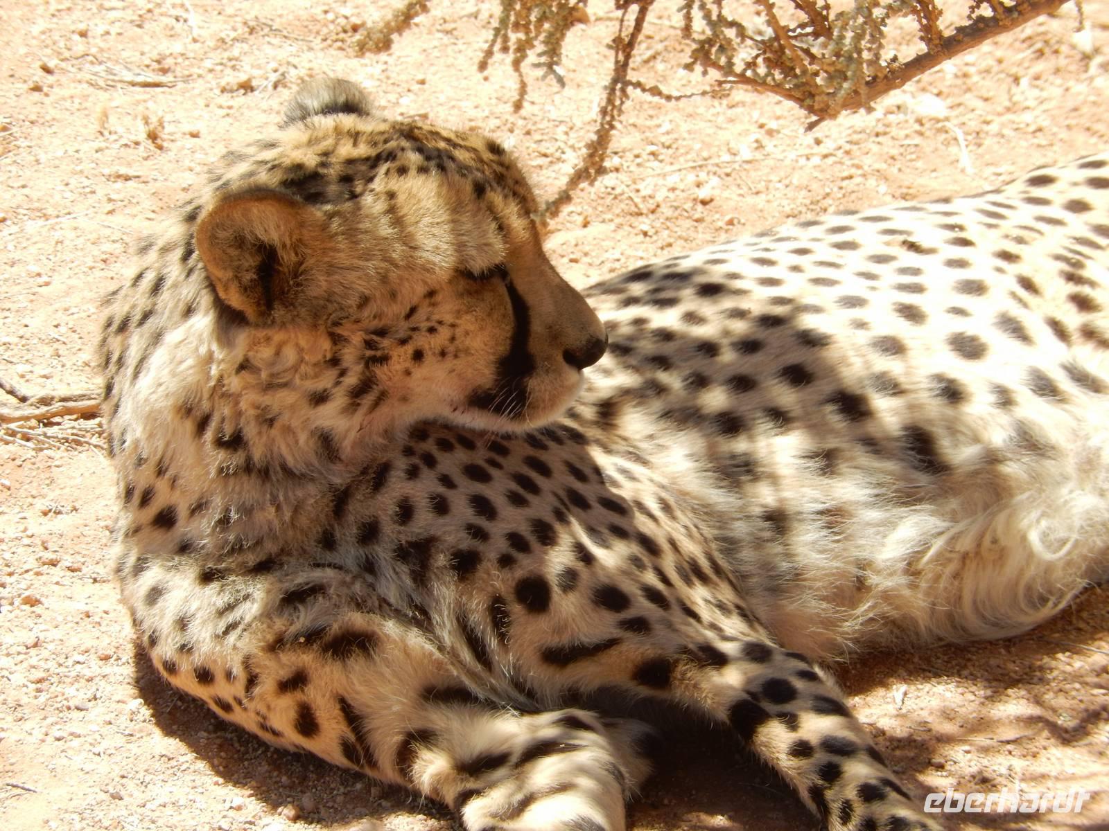 Über den Tsaris-Pass (1.630 Meter) überquerten wir den gleichnamigen Gebirgszug und machten dann in der Hammerstein-Lodge eine Pause. Hier trafen wir bei unseren "Cat-Walk" auf die beiden Wüstenluchse (Karakal) Romeo und Julia, auf die 2 Geparden Oscar und Wilde sowie auf die Leopardendame Lisa. Außer bei ihr durften wir ganz nah an die Tiere herangehen!
