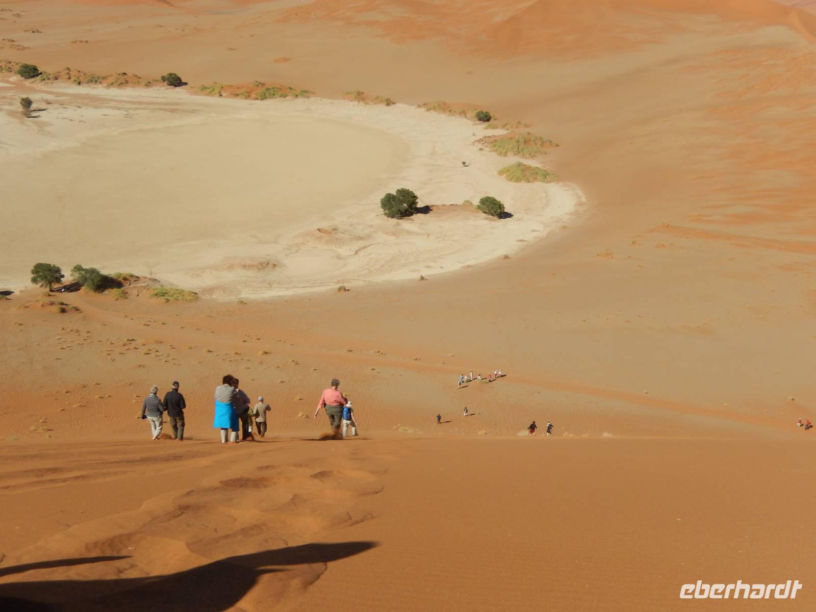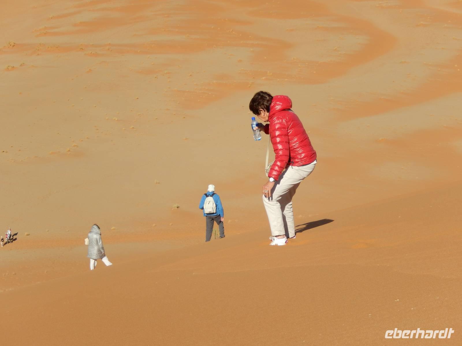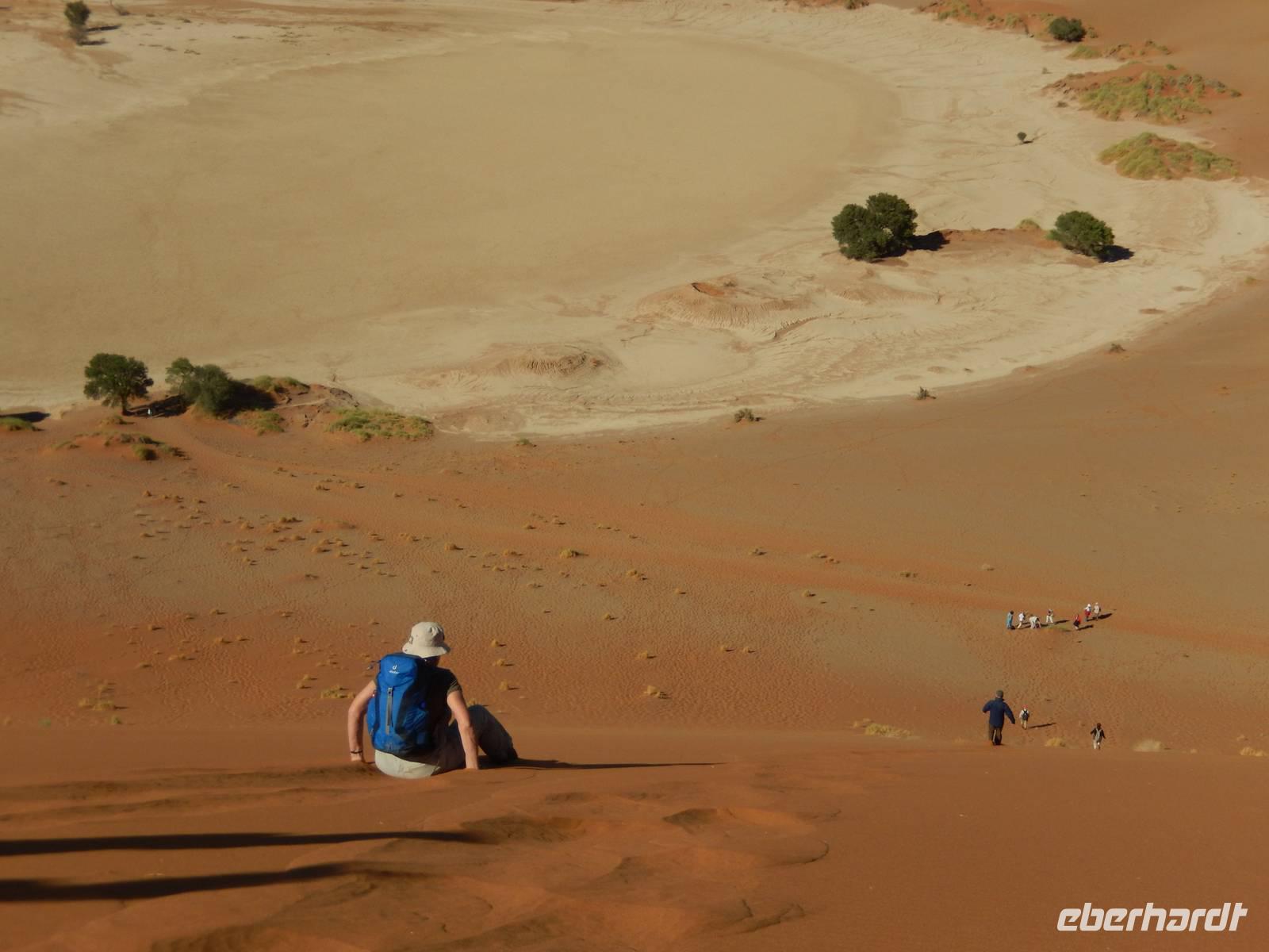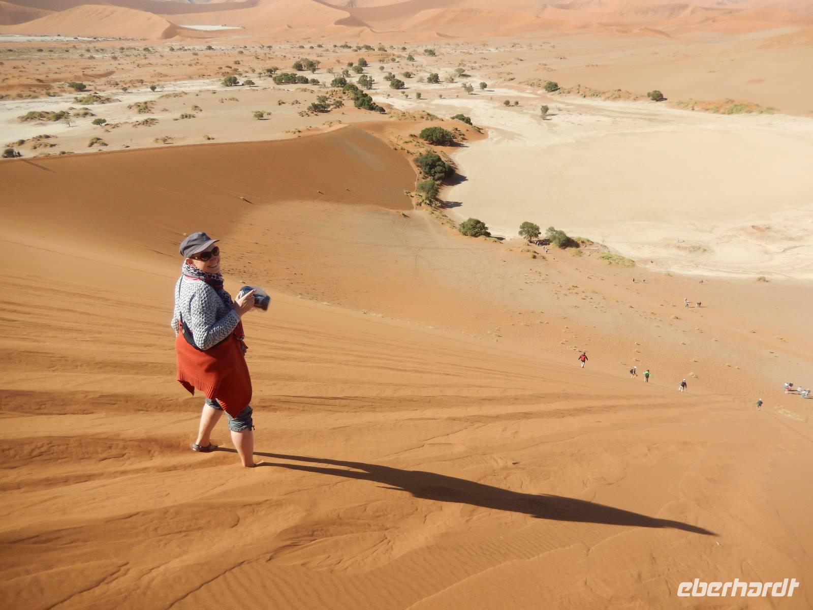 Hinunter ging es dann nicht auf dem gleichen Weg - nein! Wir "surften" mit großen Schritten an „Big Mama" hinunter! Das war ein Spaß! Unten hieß es dann erst einmal "Entsanden", denn wir hatten fast alle gefühlte 2 Kilo Namib-Sand in unseren Schuhen!
