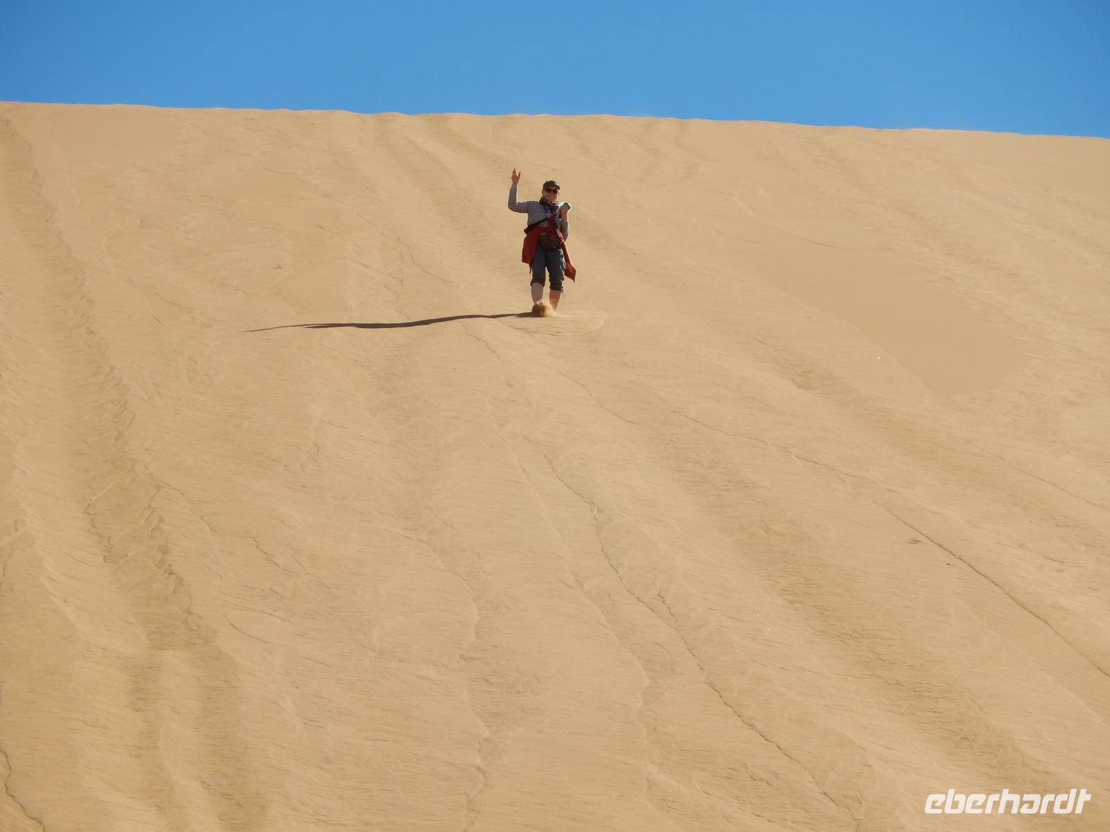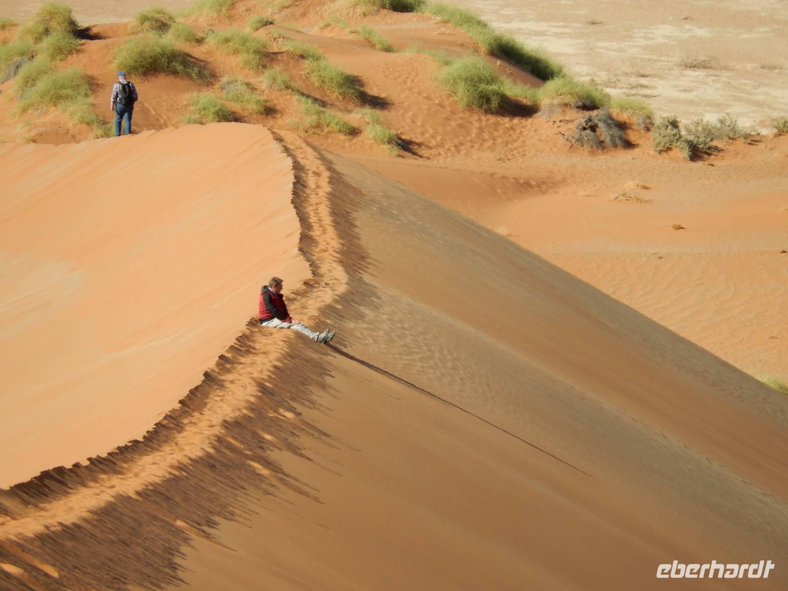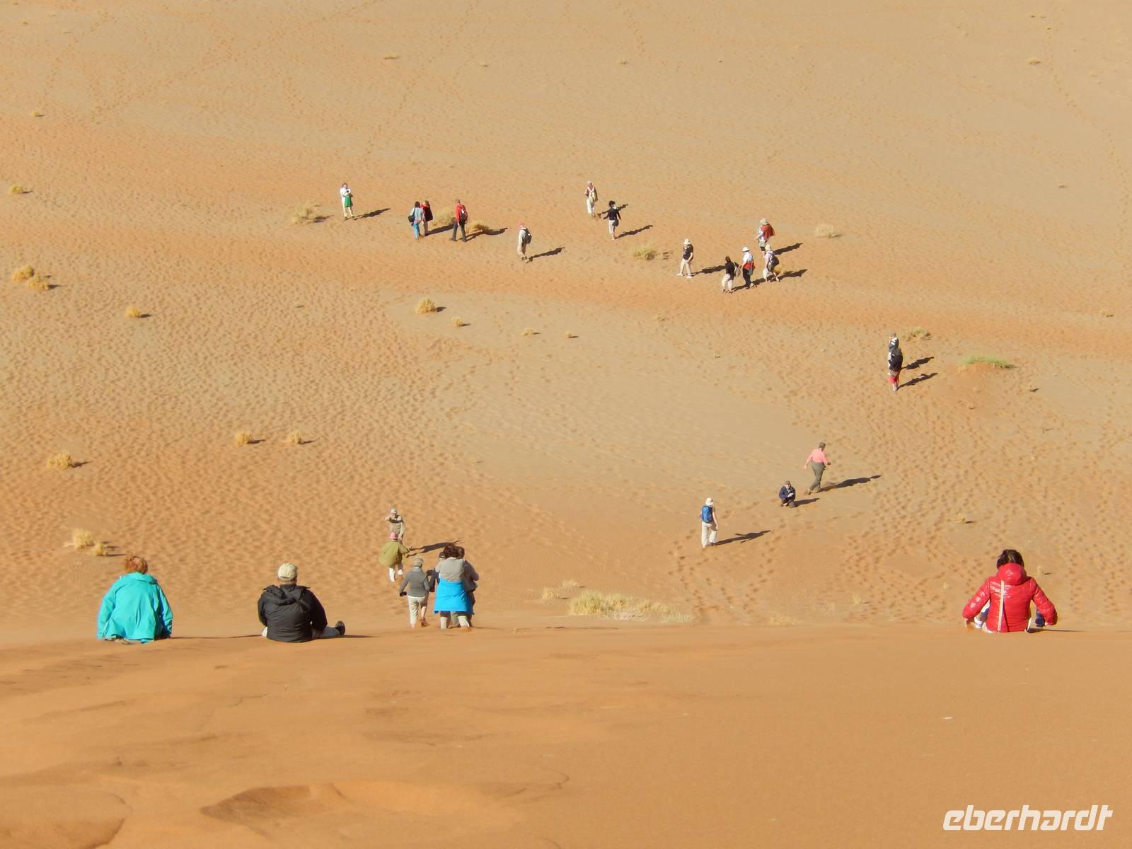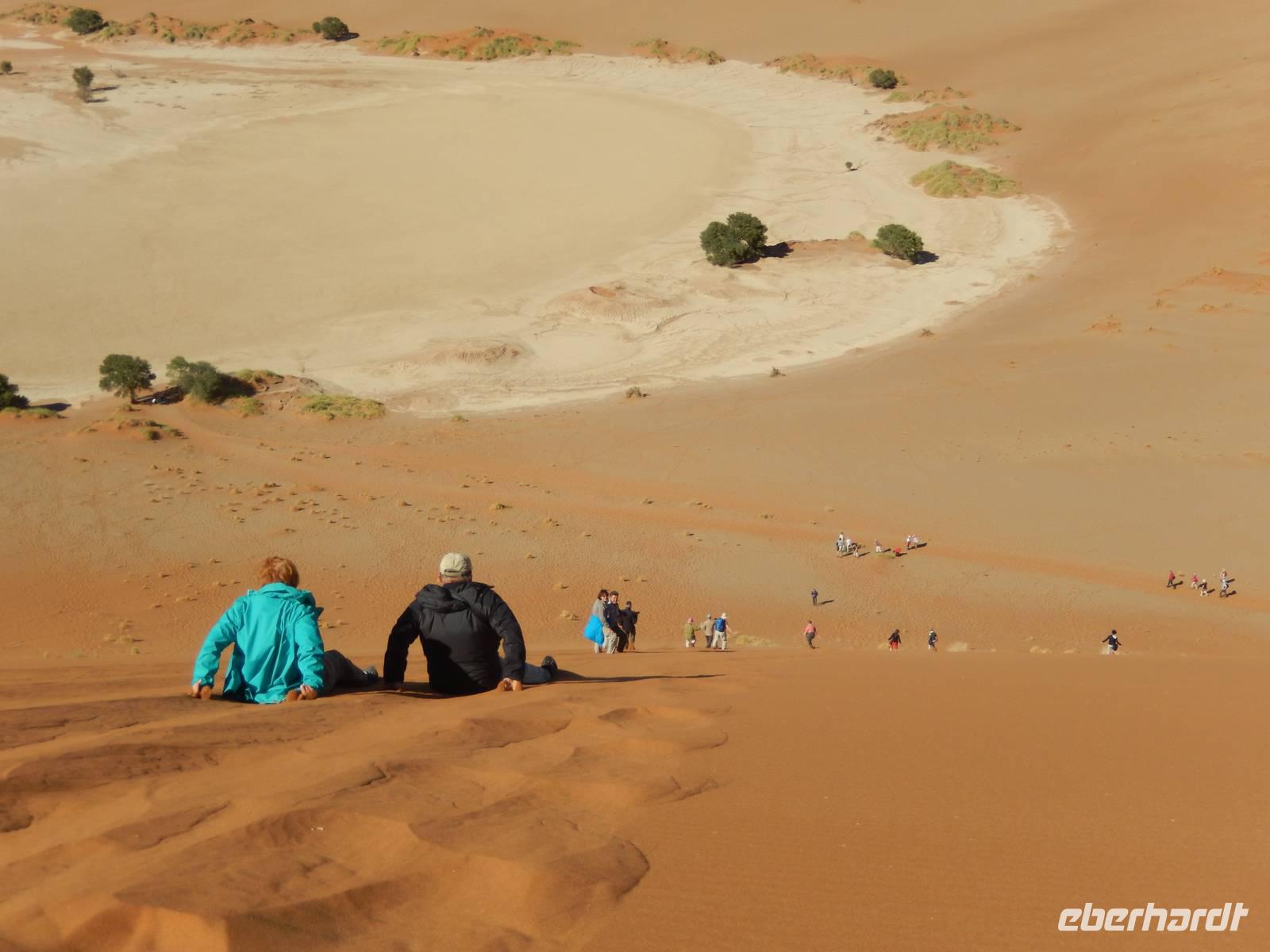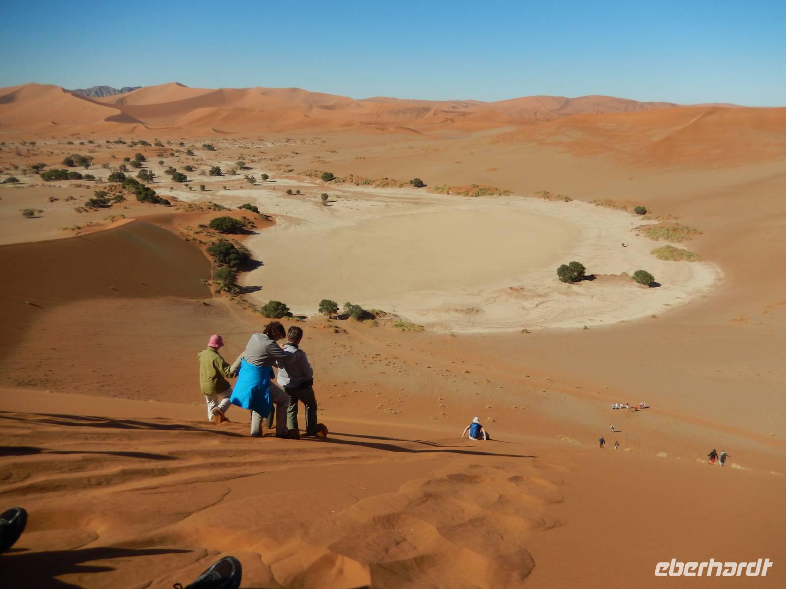 Hinunter ging es dann nicht auf dem gleichen Weg - nein! Wir "surften" mit großen Schritten an „Big Mama" hinunter! Das war ein Spaß! Unten hieß es dann erst einmal "Entsanden", denn wir hatten fast alle gefühlte 2 Kilo Namib-Sand in unseren Schuhen!