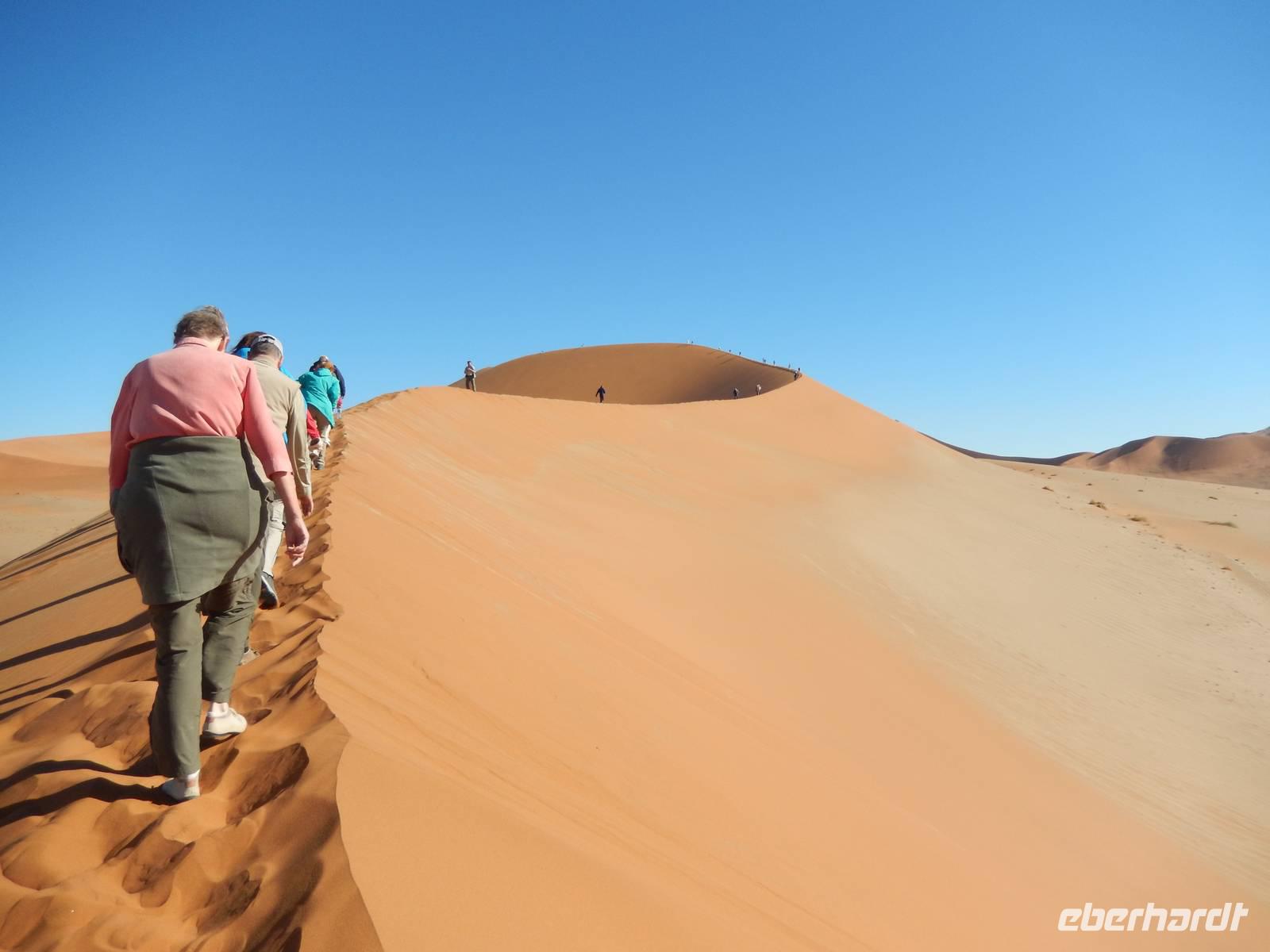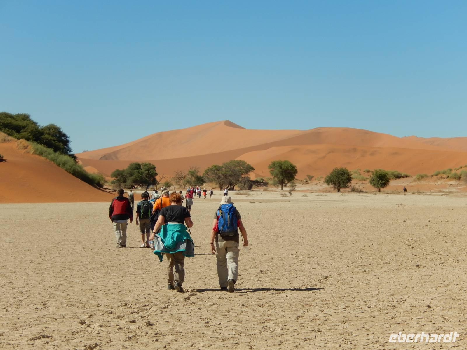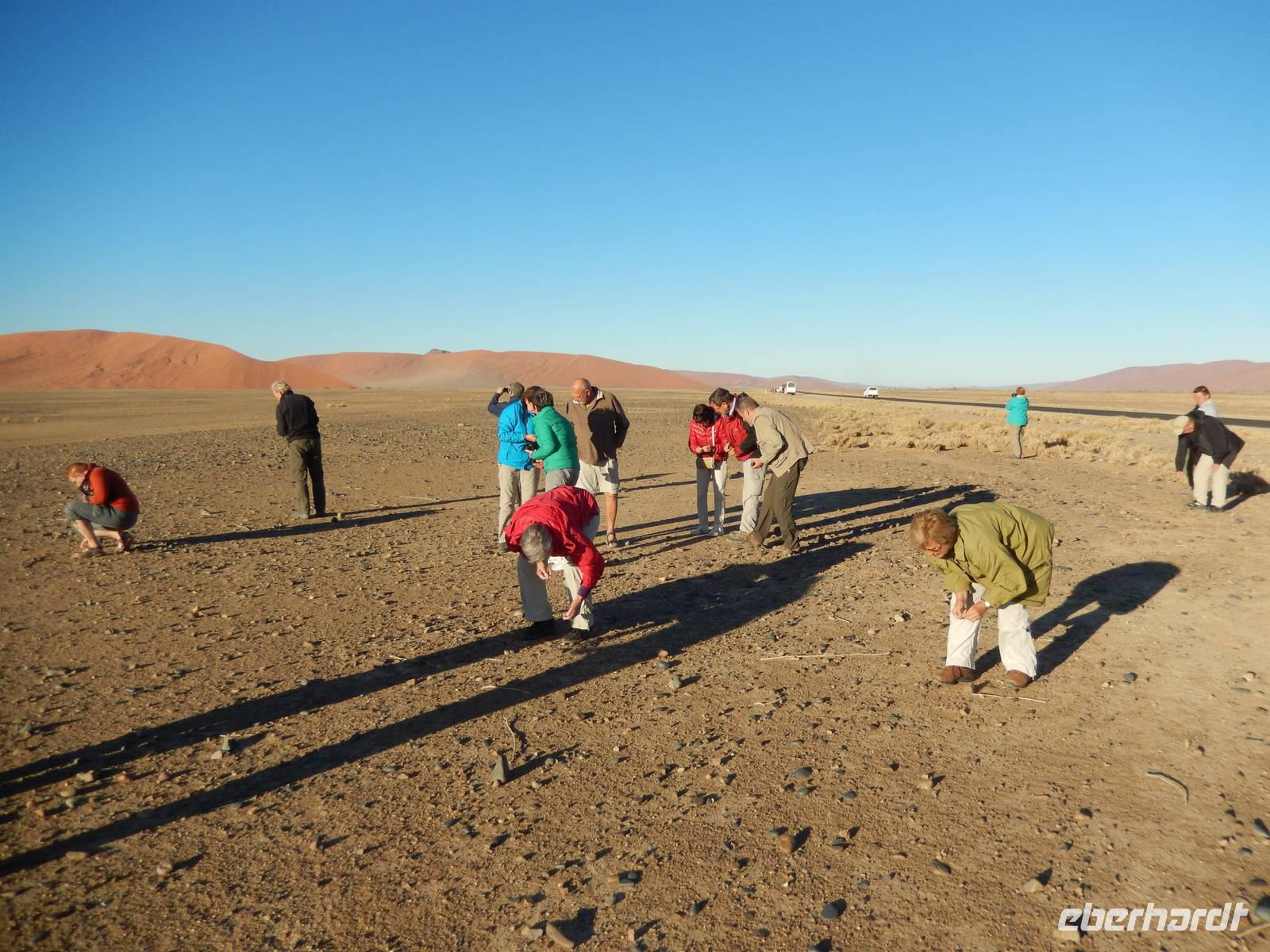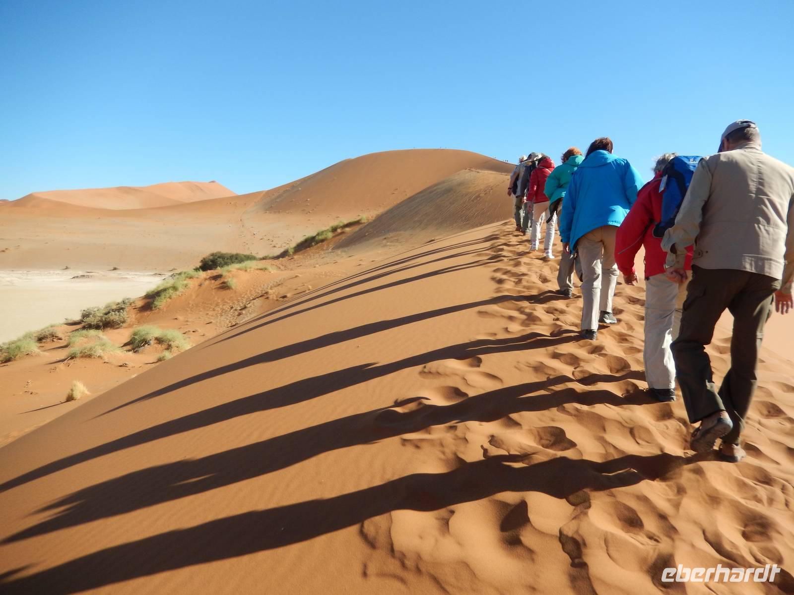 Hinunter ging es dann nicht auf dem gleichen Weg - nein! Wir "surften" mit großen Schritten an „Big Mama" hinunter! Das war ein Spaß! Unten hieß es dann erst einmal "Entsanden", denn wir hatten fast alle gefühlte 2 Kilo Namib-Sand in unseren Schuhen!