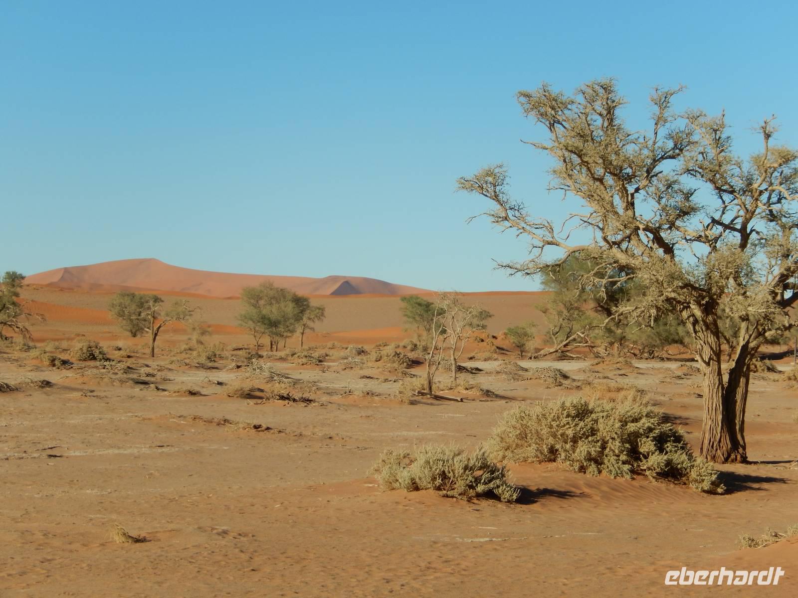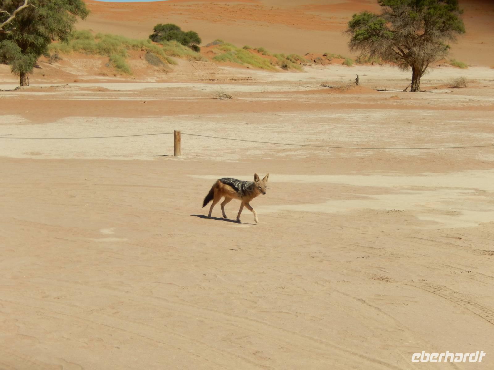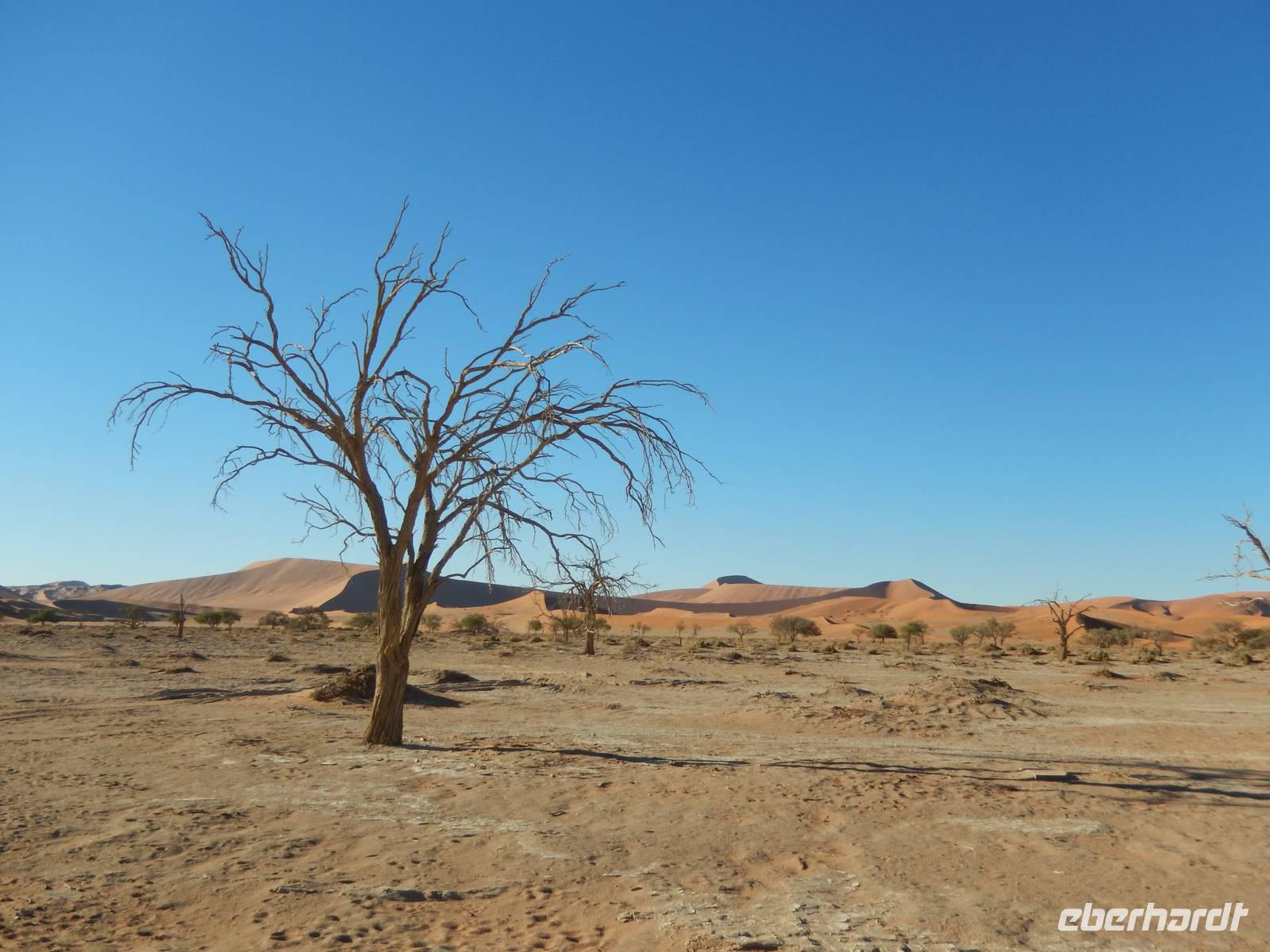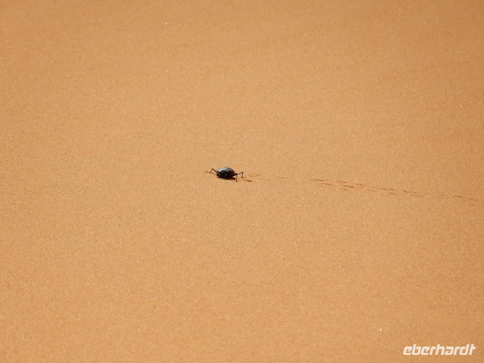 Schon bei der Fahrt hinein in das Namib-Sandmeer, was übrigens seit 2013 auf der Liste der UNESCO steht, standen wir den hohen, roten Sanddünen gegenüber. Und gerade in den frühen Morgenstunden, wenn sich die bis zu 380 Meter hohen Dünen im Spiel von Licht und Schatten befinden, ist dieser Anblick ein wahrer Genuss! Es entstanden Postkartenmotive von den Dünen, die vor etwa 5 Millionen Jahren entstanden. In dieser Zeit ist rund um das Sossusvlei auch eine einzigartige Landschaft aus Lehmböden und Bäumen entstanden, die sich der Wüste perfekt angepasst haben. Wir sahen die Spuren der Nacht im warmen Sand.
