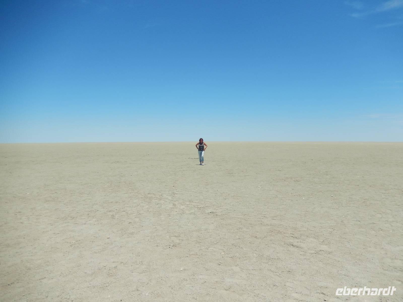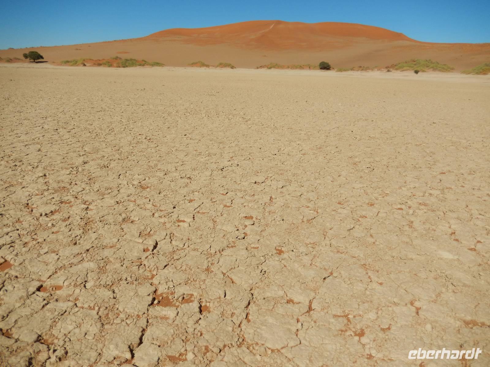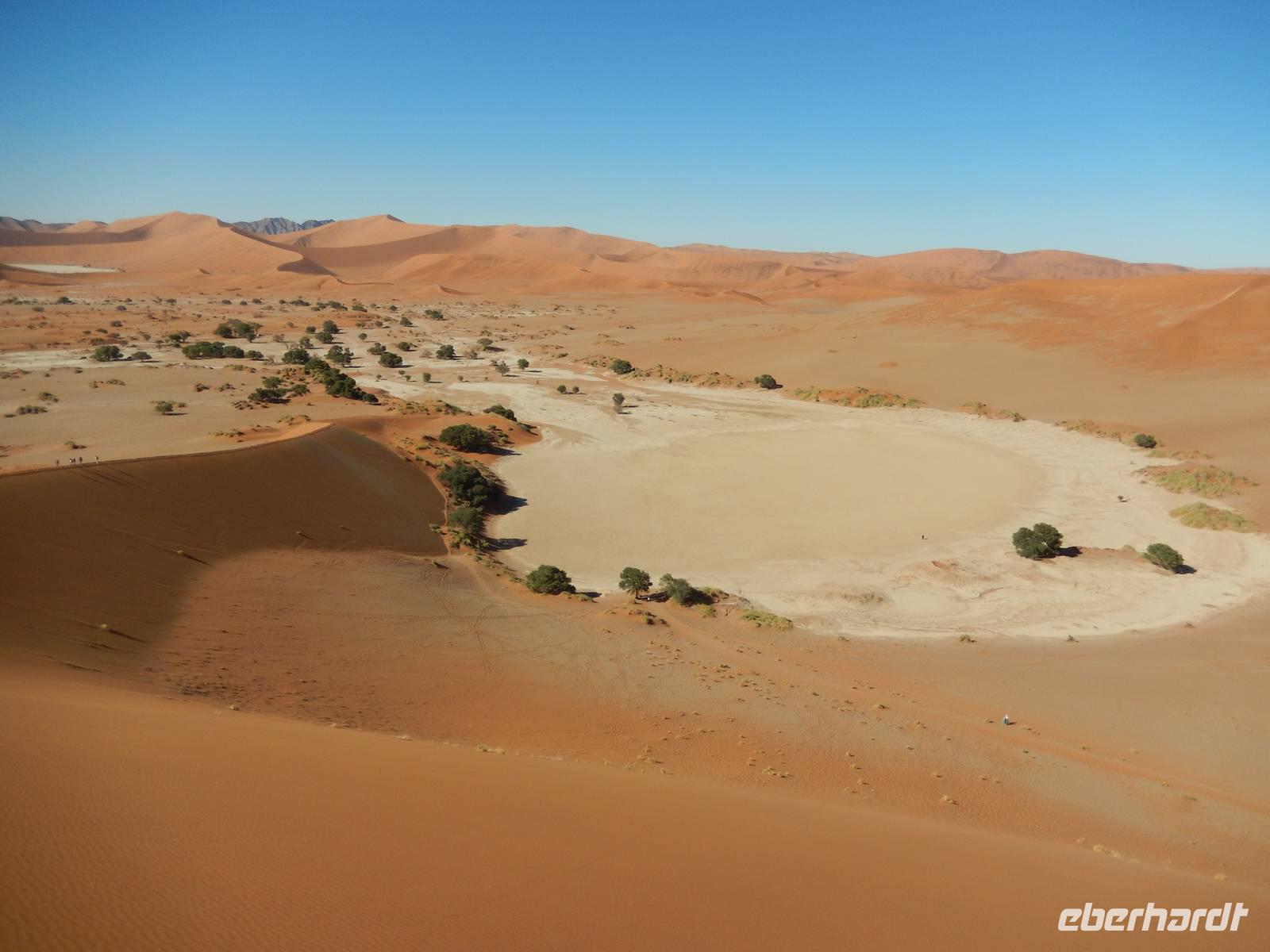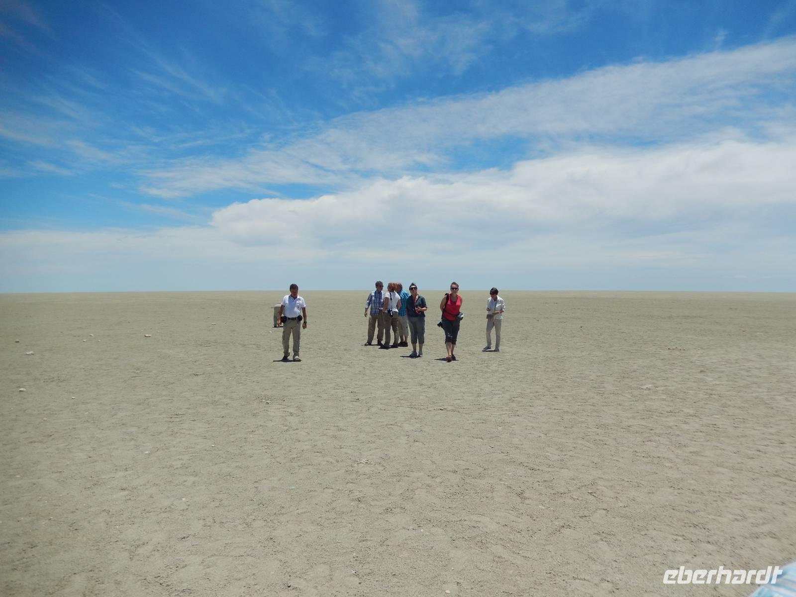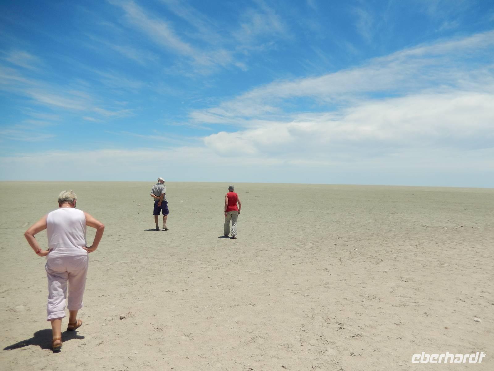 Die "Big Mama" ist eine der wenigen Dünen, die man besteigen darf. Also nichts wie hoch! Langsam, doch im gleichmäßigen Schritt stapften wir am Grat der Düne hinauf. Oben angekommen, wurden wir Dünenbesteiger mit einem wundervollen Blick auf die umliegenden Dünen und auf die Pfanne an sich belohnt! Ein Erlebnis, das wir so schnell sicher nicht vergessen werden!