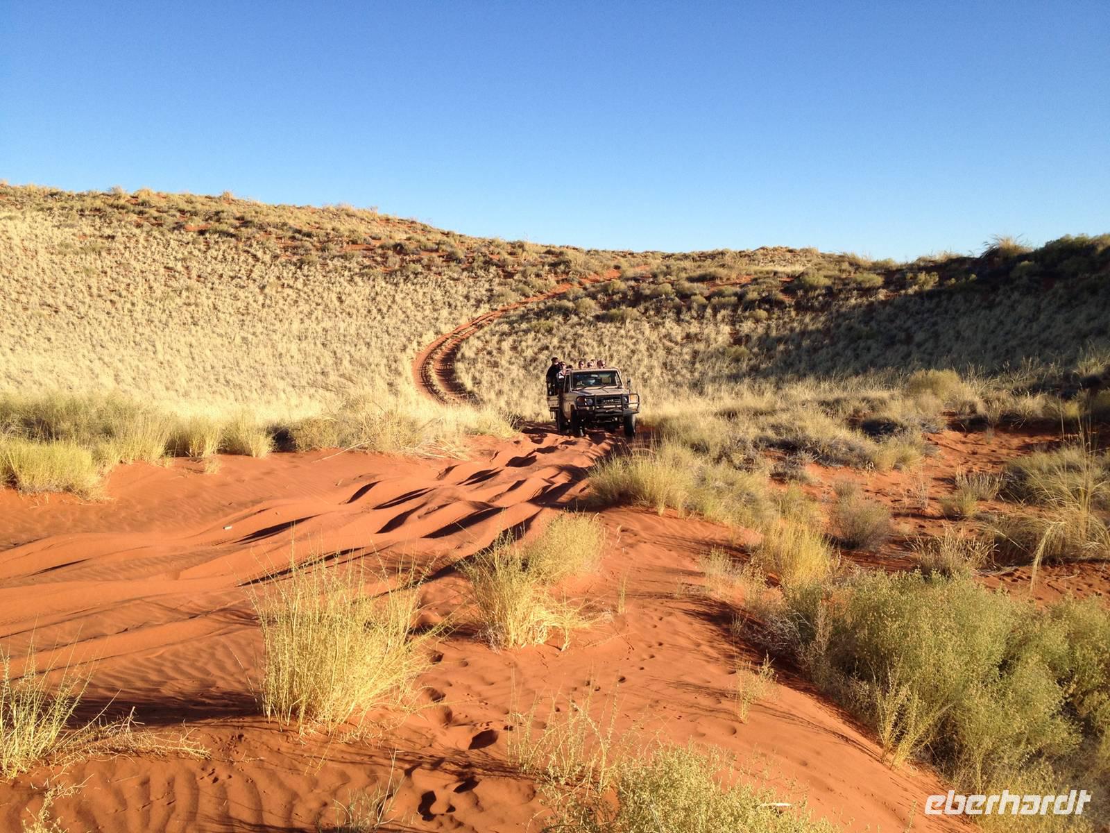 Am Parkplatz angekommen, stiegen wir in Geländewagen um, die uns vorbei an der größten Düne "Big Daddy" bis zur etwas kleineren Düne "Big Mama" brachten. Hier wurde es endlich Zeit für ein erstes Gruppenfoto!