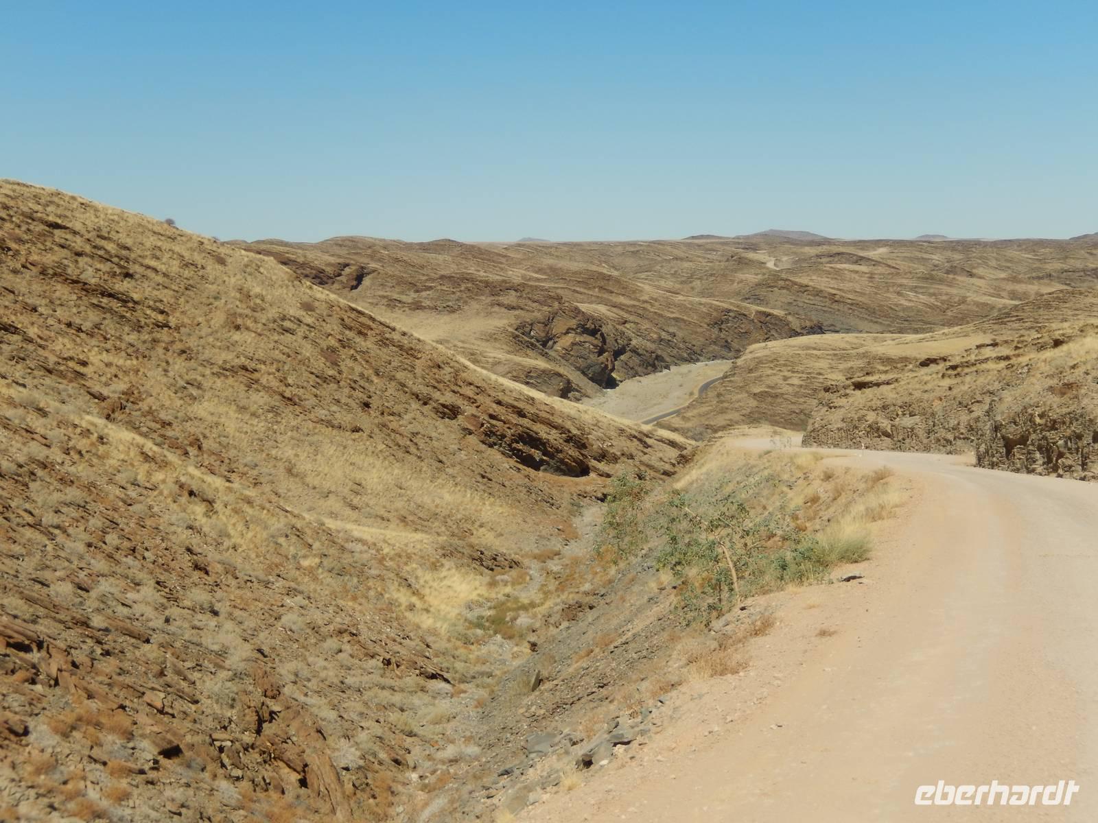 Wir schlängelten uns nun über ein paar enge Kurven durch den Kuiseb Canyon, der eigentlich gar kein richtiger Canyon ist. (wenn wir es mit dem Fish-River-Canyon oder Sesriem Canyon vergleichen)