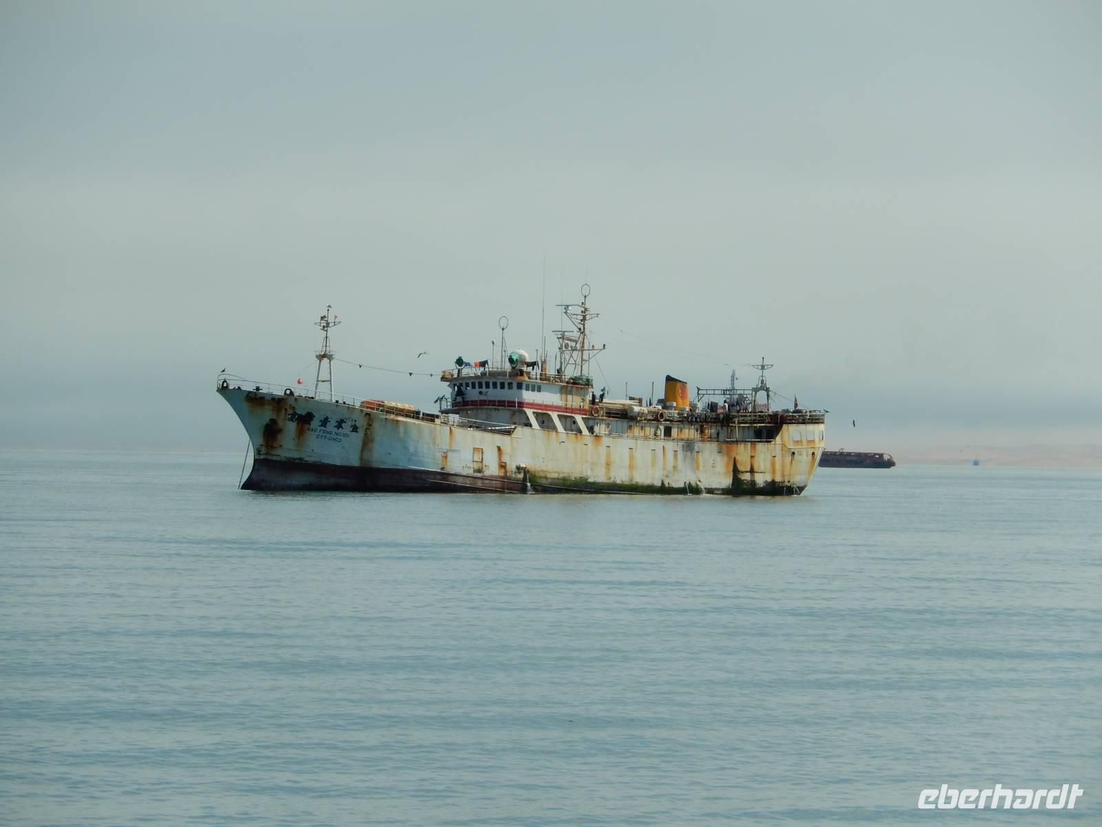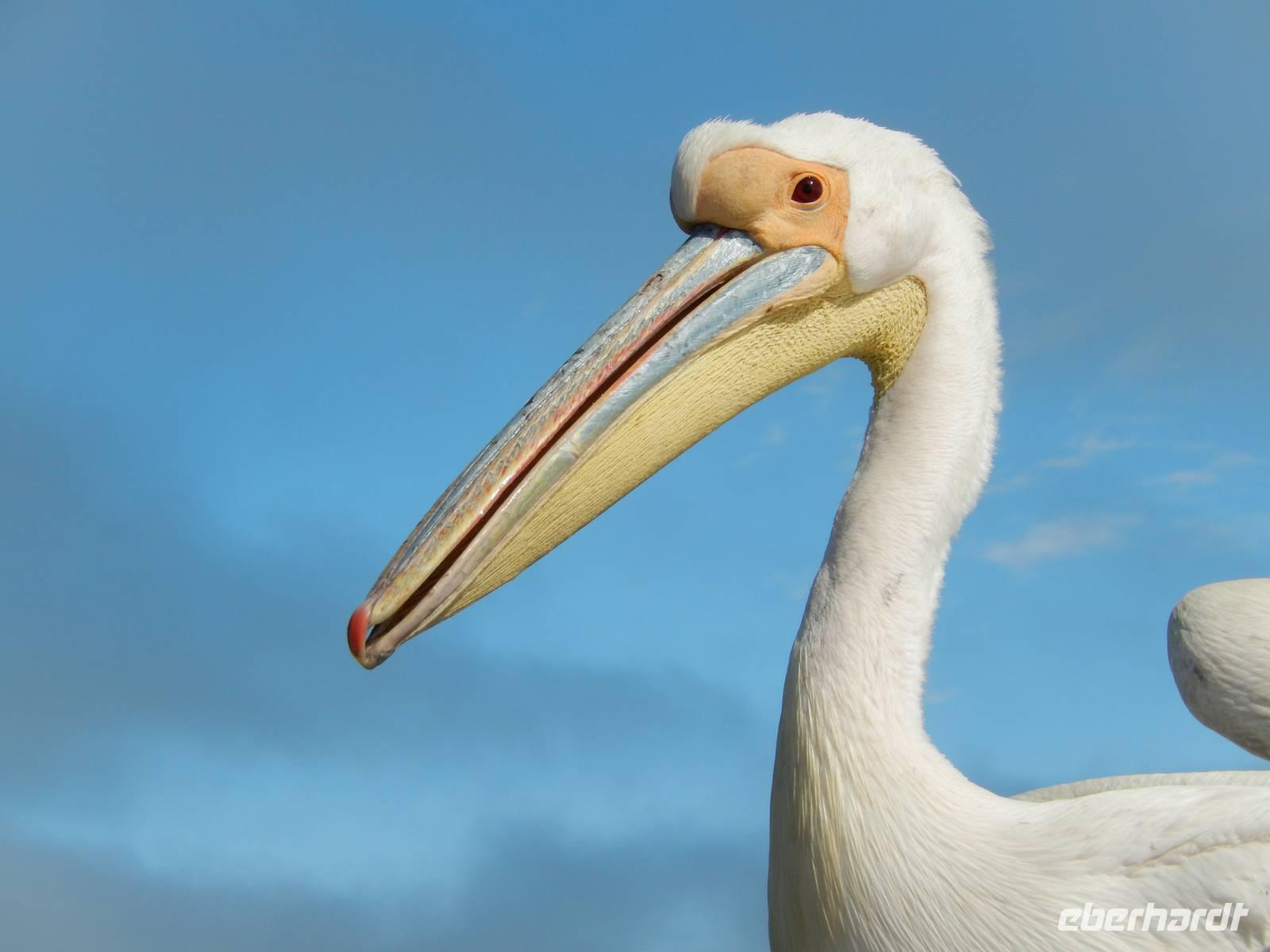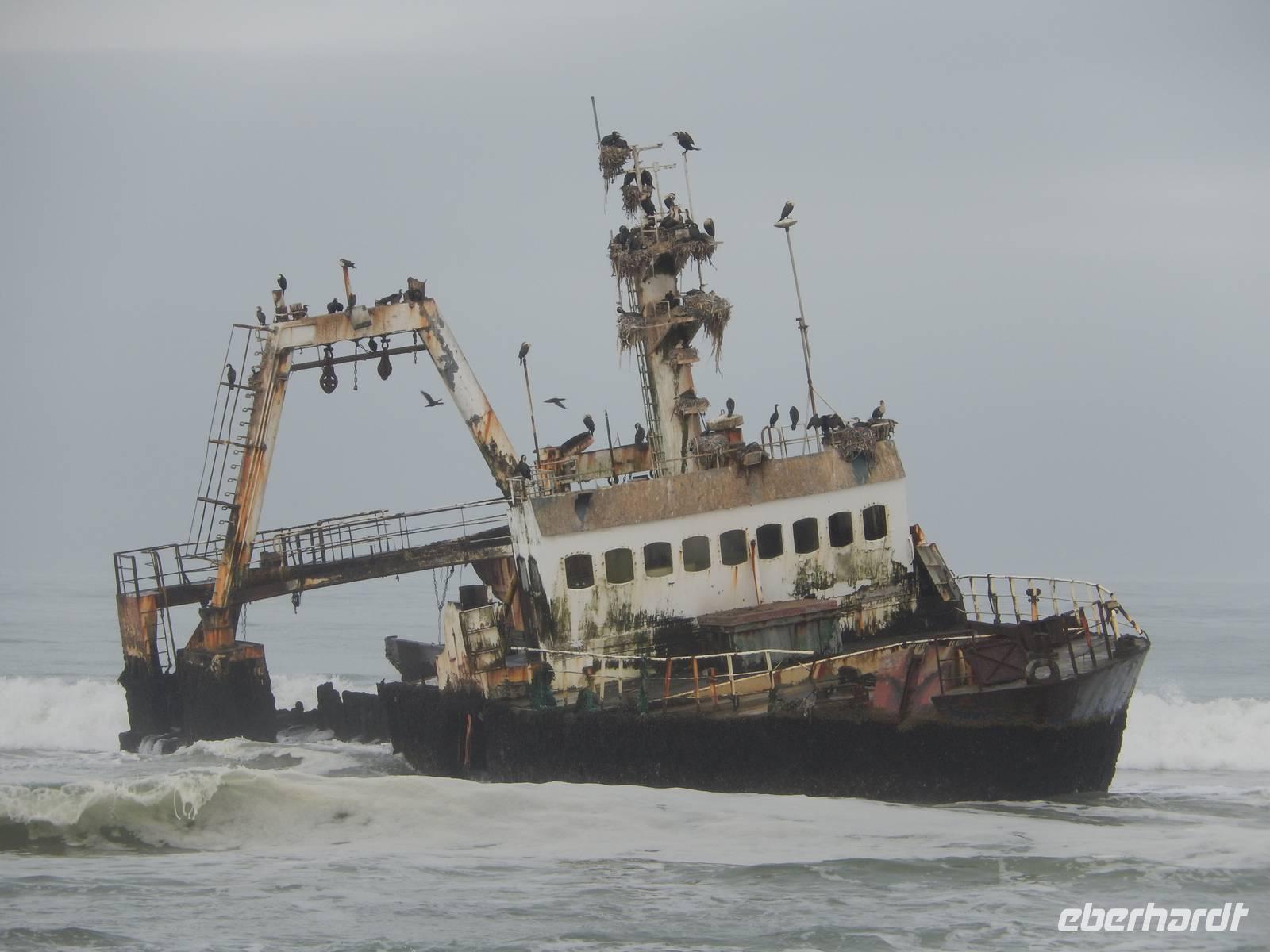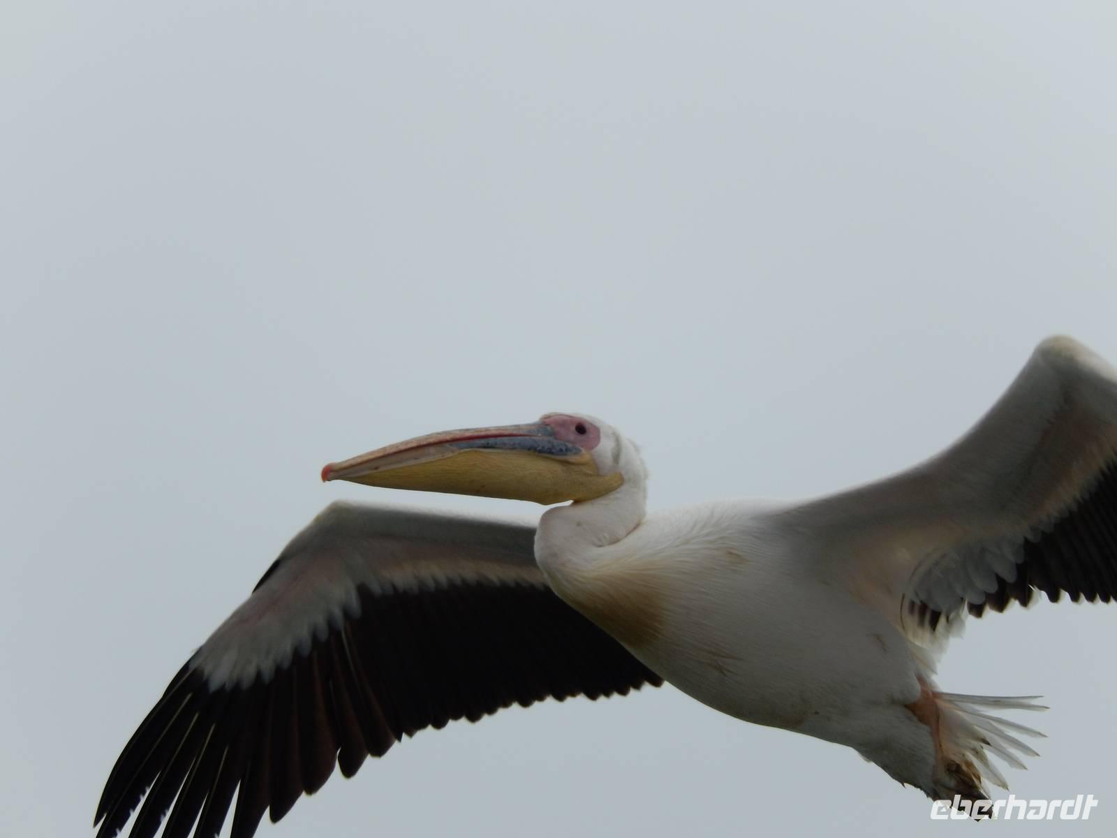 Es dauerte nicht lange und dann kam auch schon die "namibianische Luftwaffe" an Bord. Stattliche Pelikane, die mit einer Spannweite bis zu 3,50 Metern und einem Gewicht von 13 Kilo zu den schwersten flugfähigen Vögeln zählen, ließen sich auf unserer Reling nieder. Dann gesellten sich noch weitere Vögel wie Kormorane und Möwen hinzu. Von unserem Reiseleiter bekamen sie natürlich den geliebten Fisch! Die Sonne zeigte sich nun auch und die Decken und dicken Jacken waren überflüssig. Der von der Besatzung gereichte Sherry tat sein übriges.