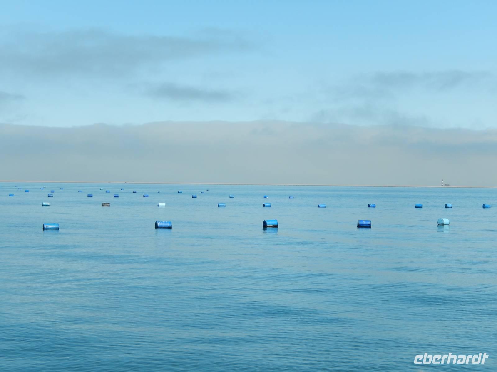 Heute stand für den Großteil der Gruppe ein Ausflug in der Walfischbucht auf dem Programm. Claus brachte uns entlang der Küstenstraße ins 30 Kilometer entfernte Walvis Bay, südlich von Swakopmund. Links der Straße die mächtigen Sanddünen und rechts der tobende Atlantik - ein kurioses Bild. Leider lag der Neben wieder sehr tief und somit haben wir von der Schönheit der Küstenstraße nicht viel mitbekommen.