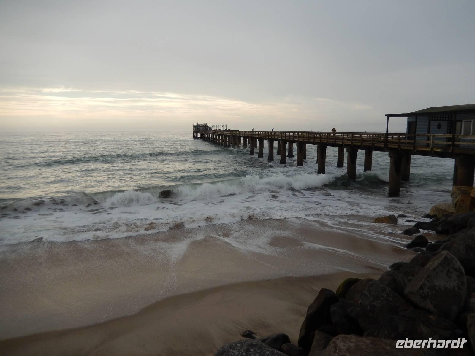 Von hier war es dann nicht mehr weit bis nach Swakopmund an der Küste. Wie wenn jemand einen Schalter plötzlich umlegte, verschwand die Sonne und Nebel zog auf. Irgendwie fühlten wir uns, als hätte uns jemand nach Deutschland gebeamt. Die Temperaturen waren nun gar nicht mehr afrikanisch und auch sonst kam uns hier vieles so bekannt und normal vor. Gerade noch bei (un)angenehmen 35°C in der Wüste, mussten wir und jetzt mit frischen 16°C anfreunden. Nun wussten wir auch, warum Swakopmund bei den Namibianern liebevoll "Kühlschrank am Atlantik" genannt wird.