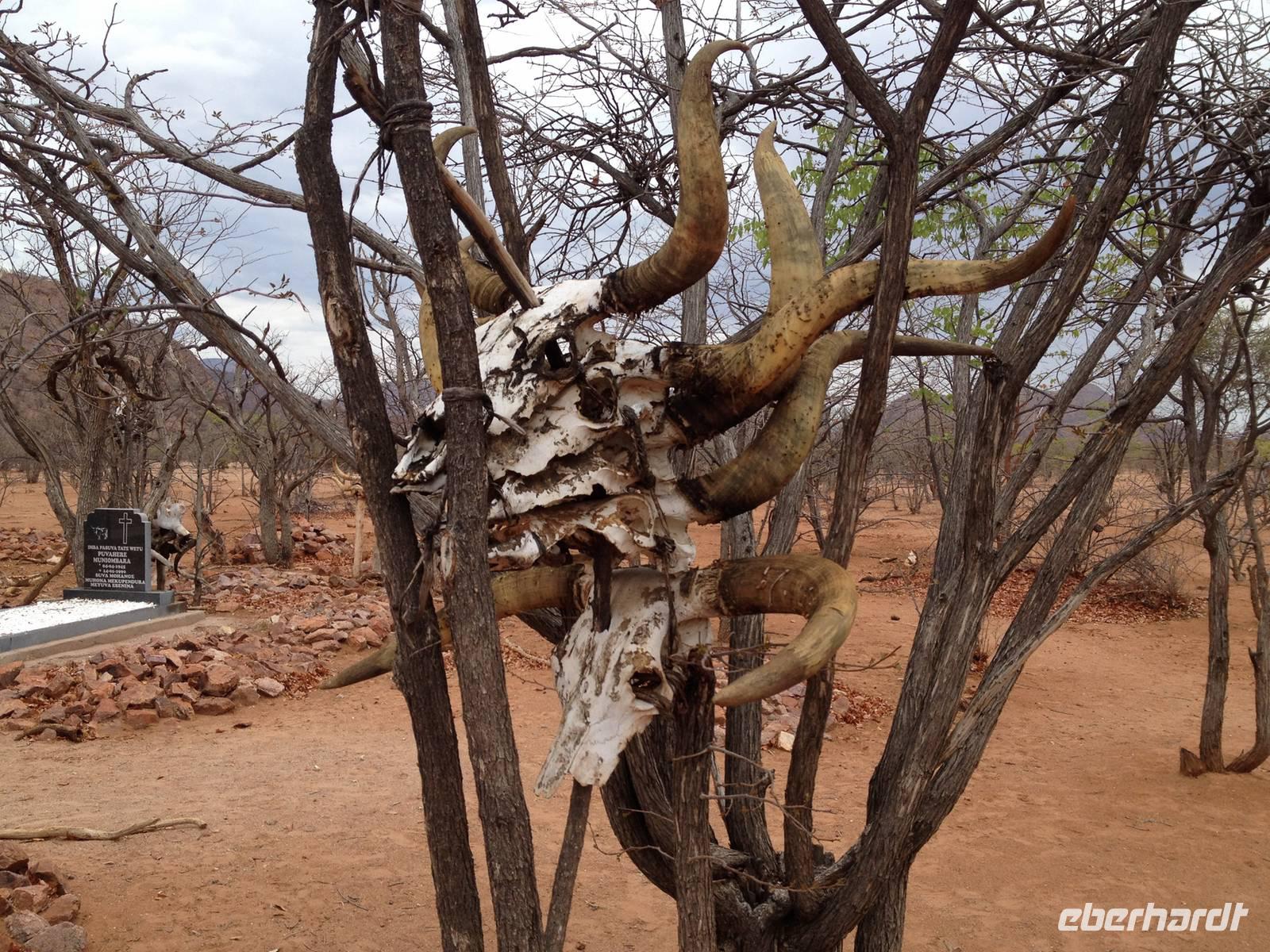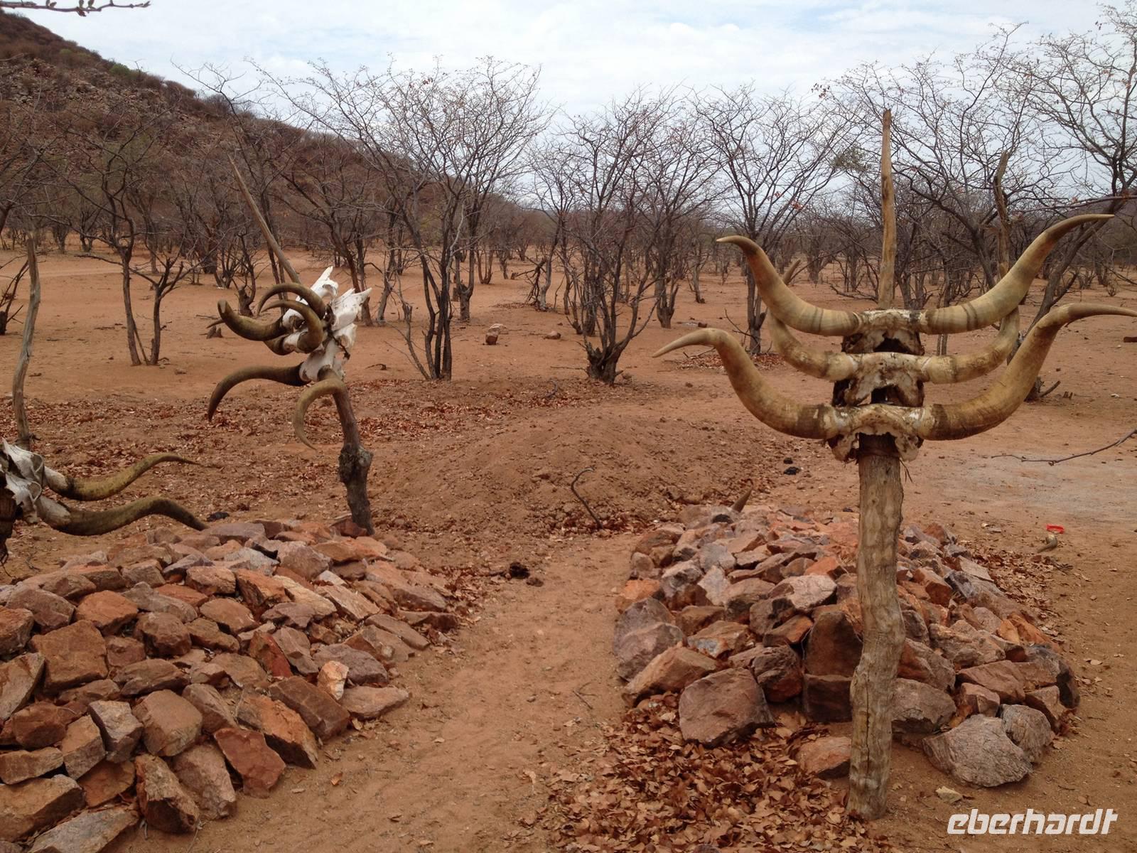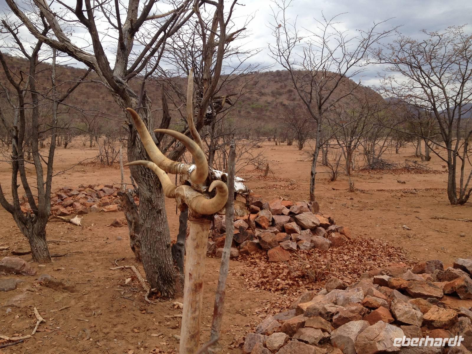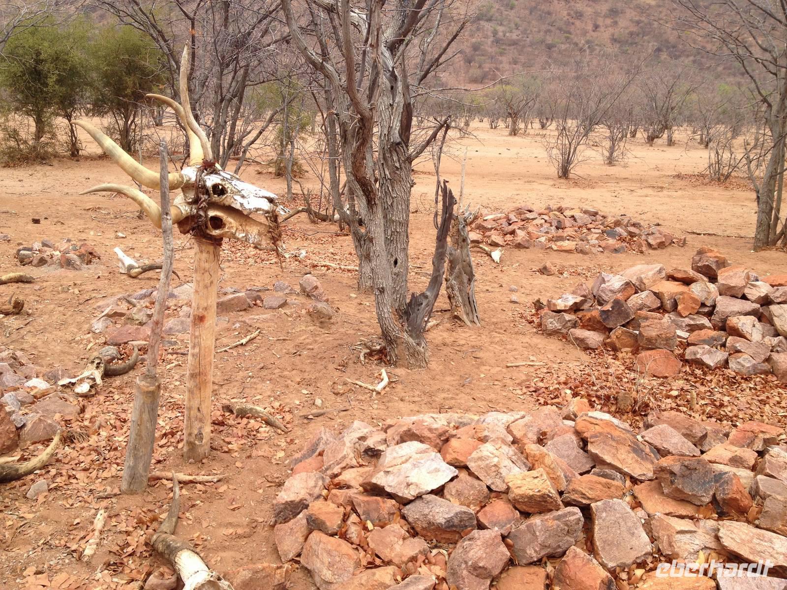 Auf dem Rückweg zu unserer Lodge hielten wir dann noch an einem Himba-Friedhof, wo auch der Kult der Opfergabe zelebriert wird.