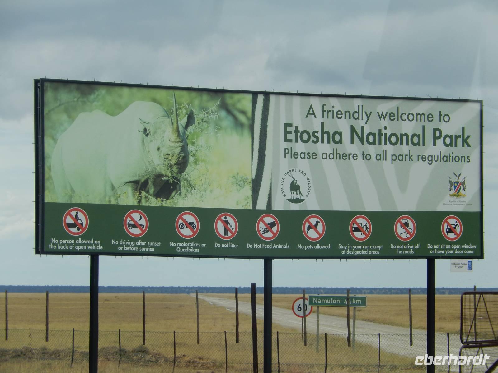 Durch das King Nehale Gate fuhren wir in den Park, der schon 1907 durch den Gouverneur von Deutsch-Südwestafrika, Friedrich von Lindequist, zum Naturschutzgebiet erklärt wurde. Zu dieser Zeit war der Bereich jedoch viel größer als heute.