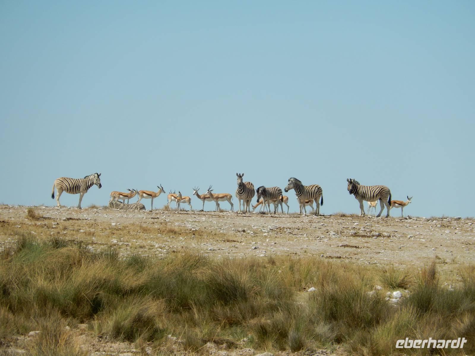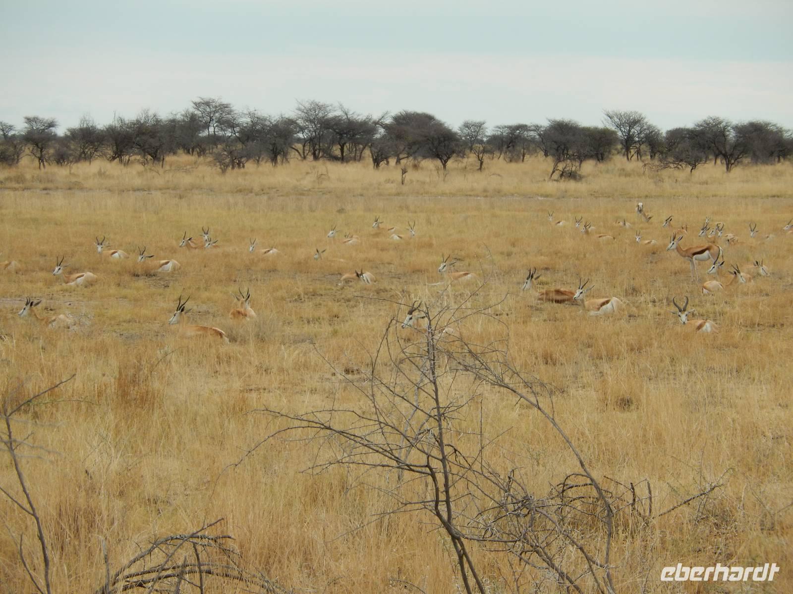 Das Glück stand scheinbar auf unserer Seite, denn gleich zu Beginn trafen wir auf eine riesige Herde Steppenzebras, Springböcke und Streifengnus.