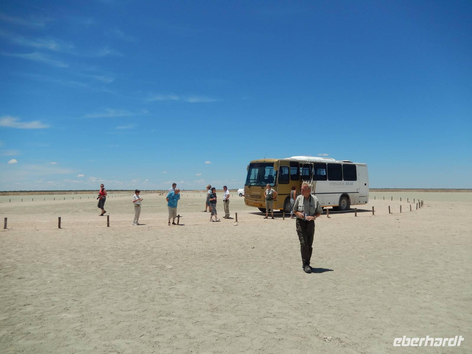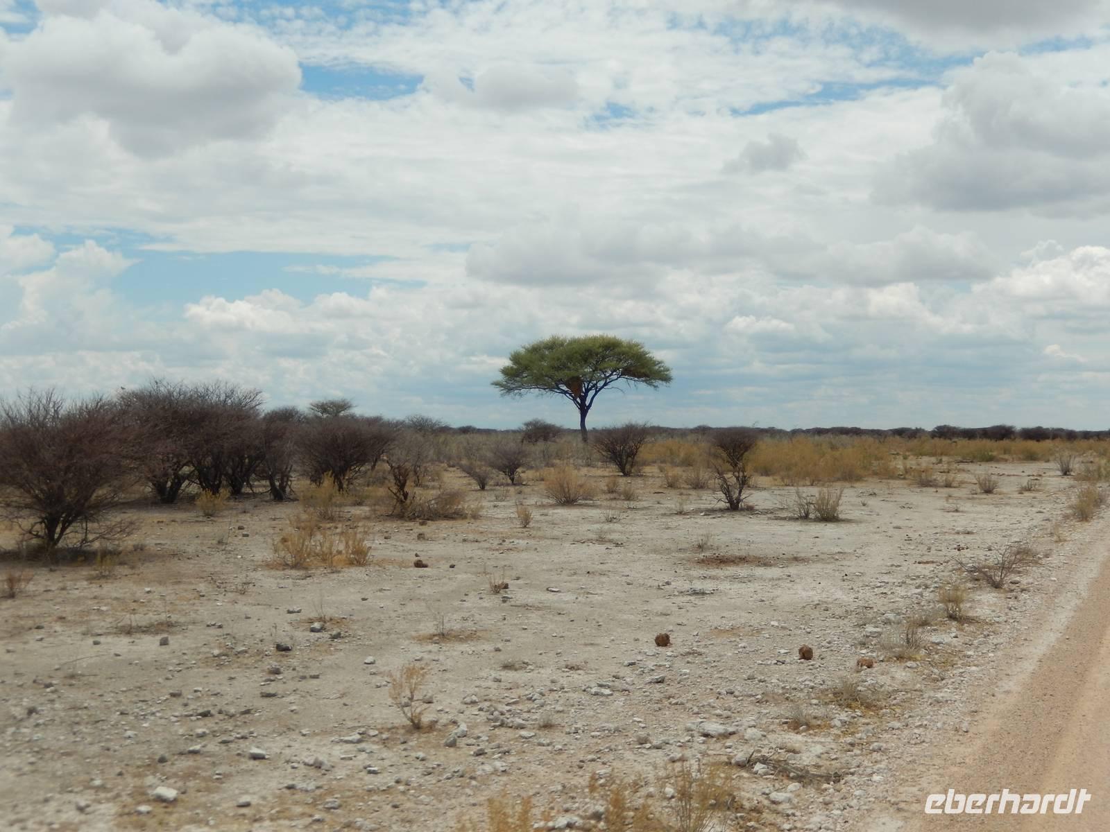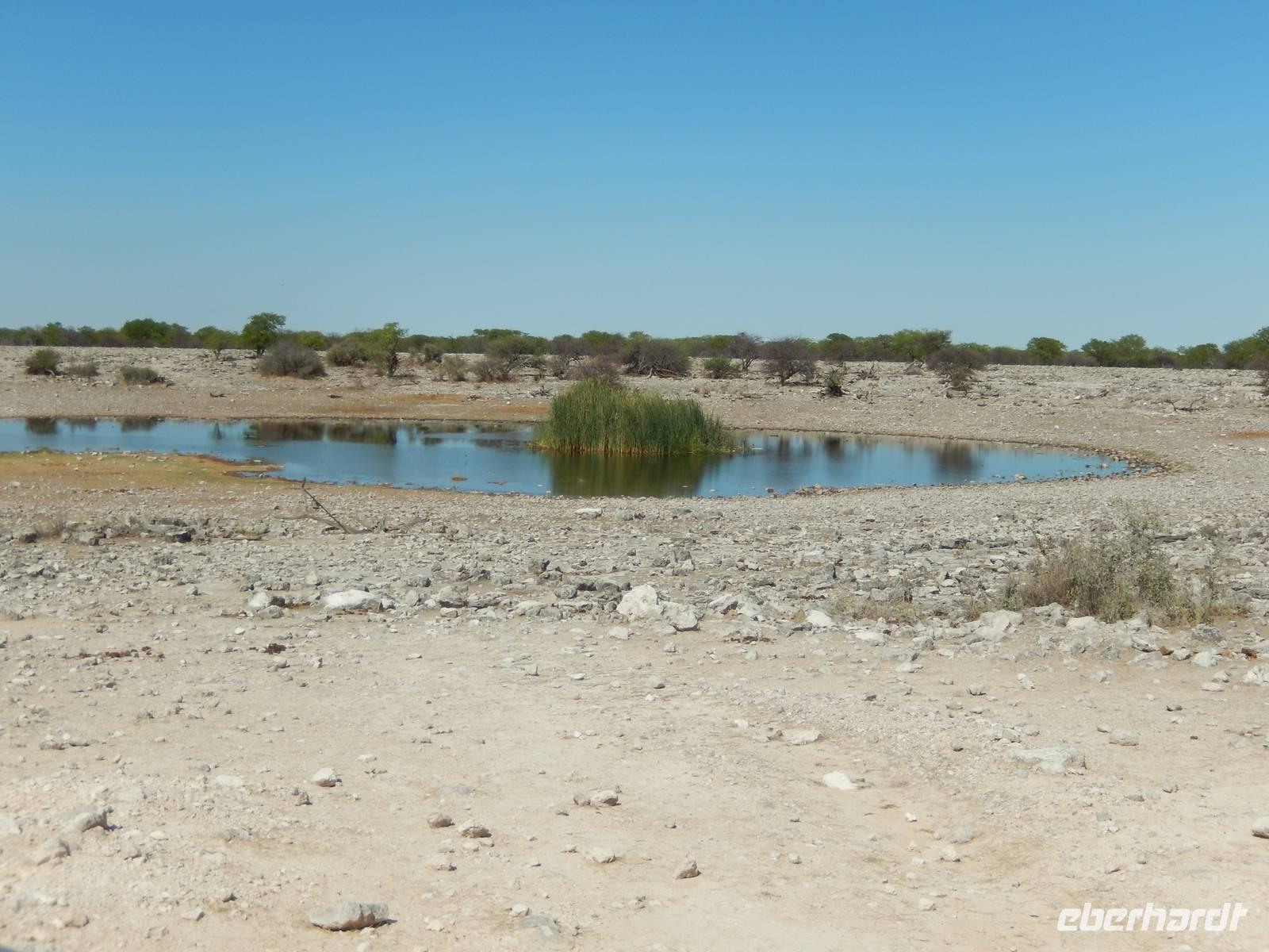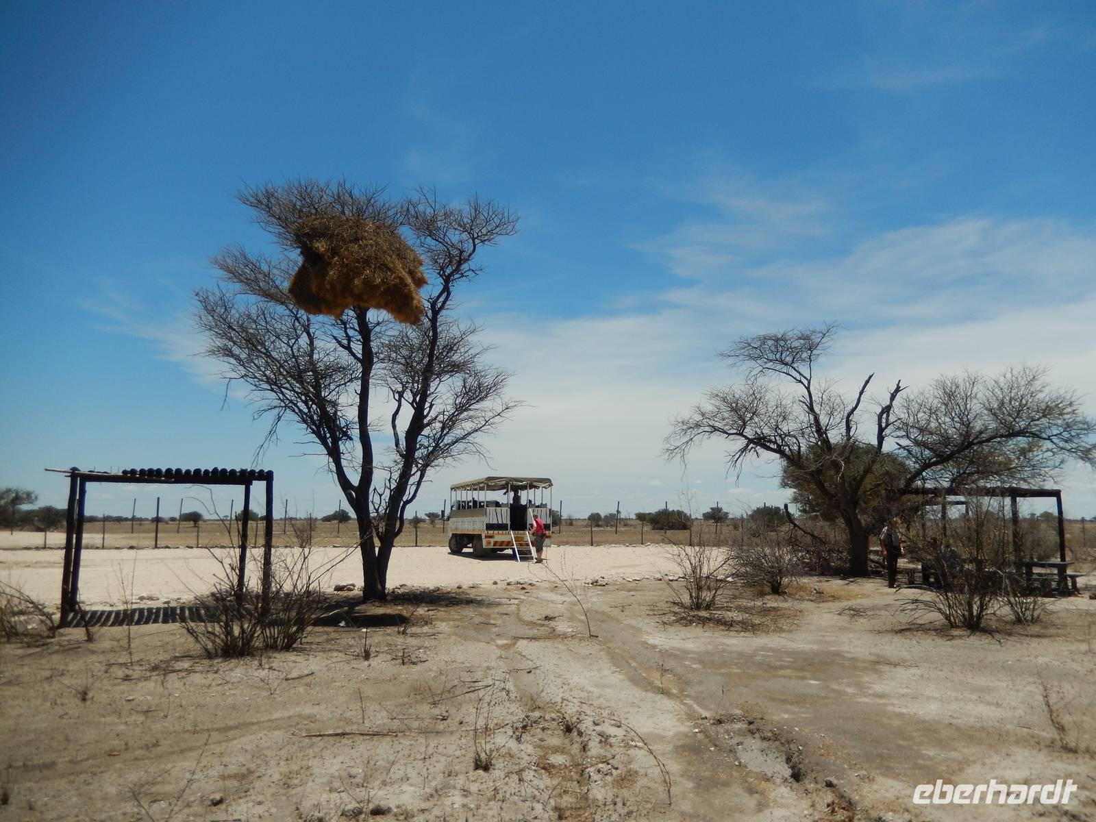 Ganz in der Nähe machten wir unsere Mittagsrast, bevor wir zum Wasserloch Ozonjuitji m'Bari fuhren. Leider war hier nichts zu sehen und so kehrten wir um und fuhren zurück in Richtung Okaukuejo, einem ehemaligen Militäraußenposten und heute ein staatliches Camp und Informationszentrum des Parks.