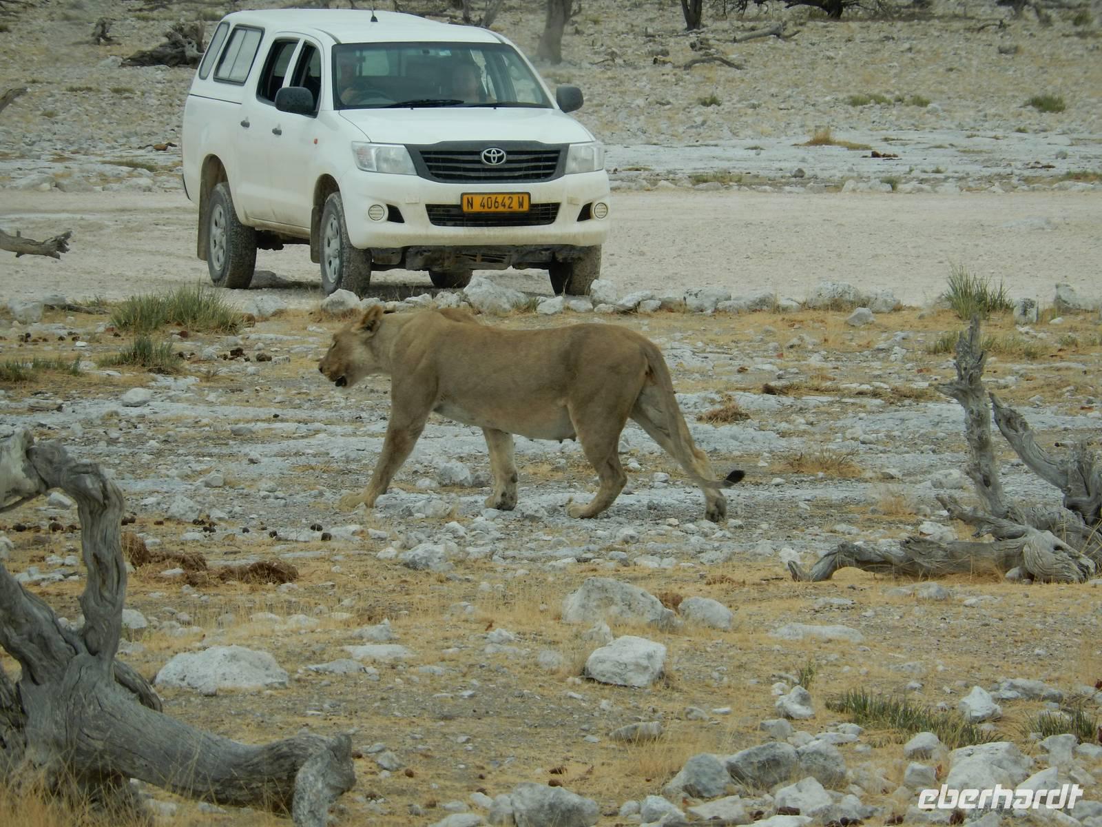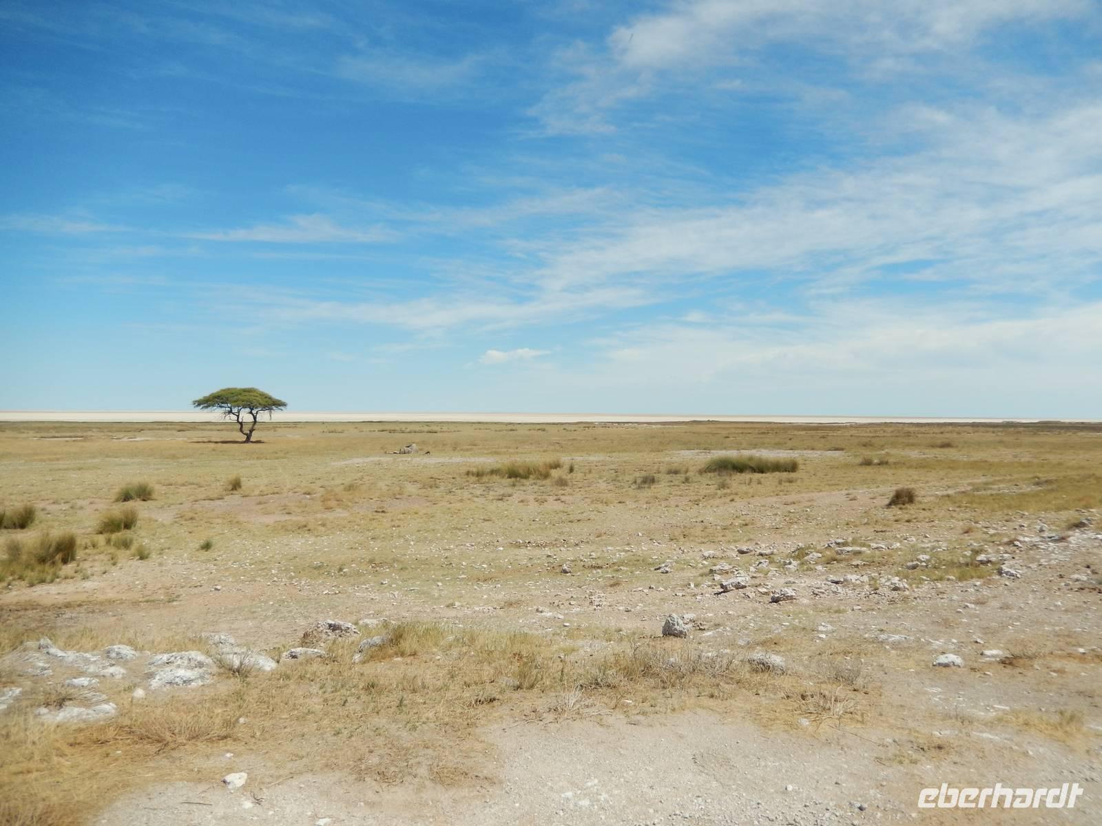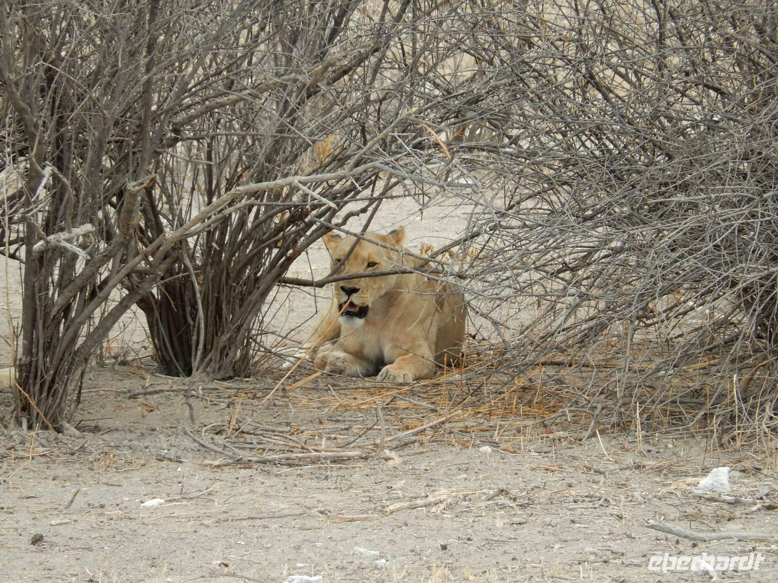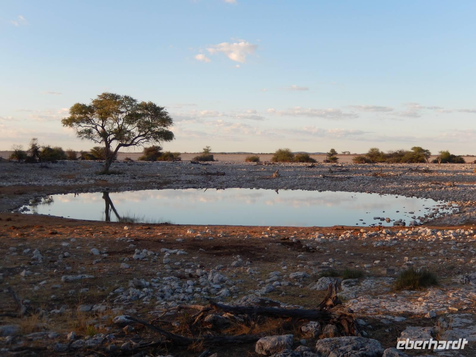 Ganz in der Nähe machten wir unsere Mittagsrast, bevor wir zum Wasserloch Ozonjuitji m'Bari fuhren. Leider war hier nichts zu sehen und so kehrten wir um und fuhren zurück in Richtung Okaukuejo, einem ehemaligen Militäraußenposten und heute ein staatliches Camp und Informationszentrum des Parks.