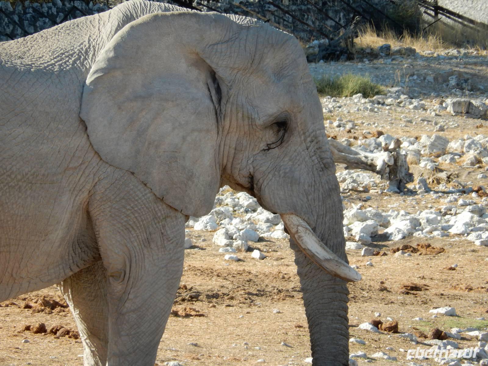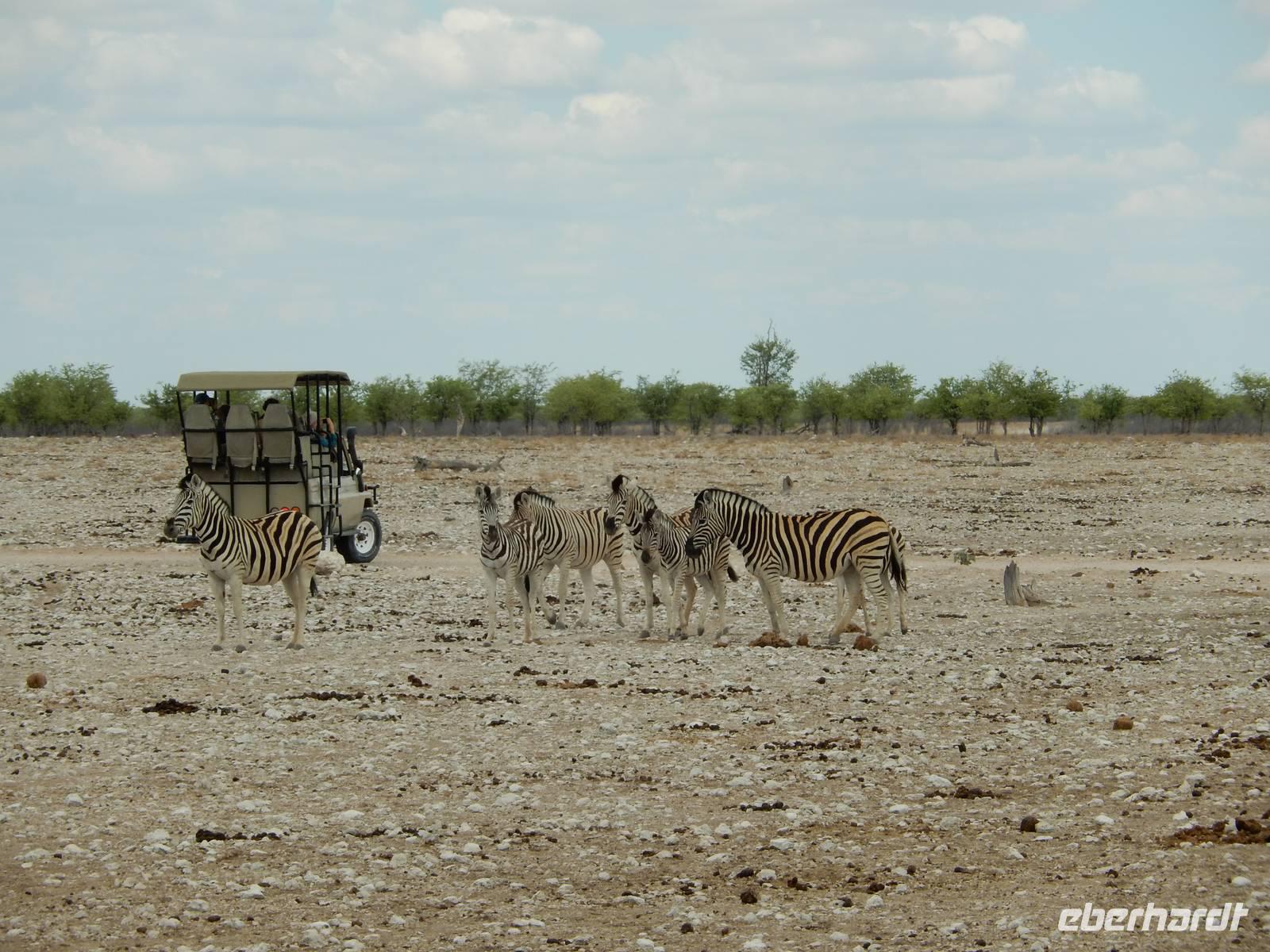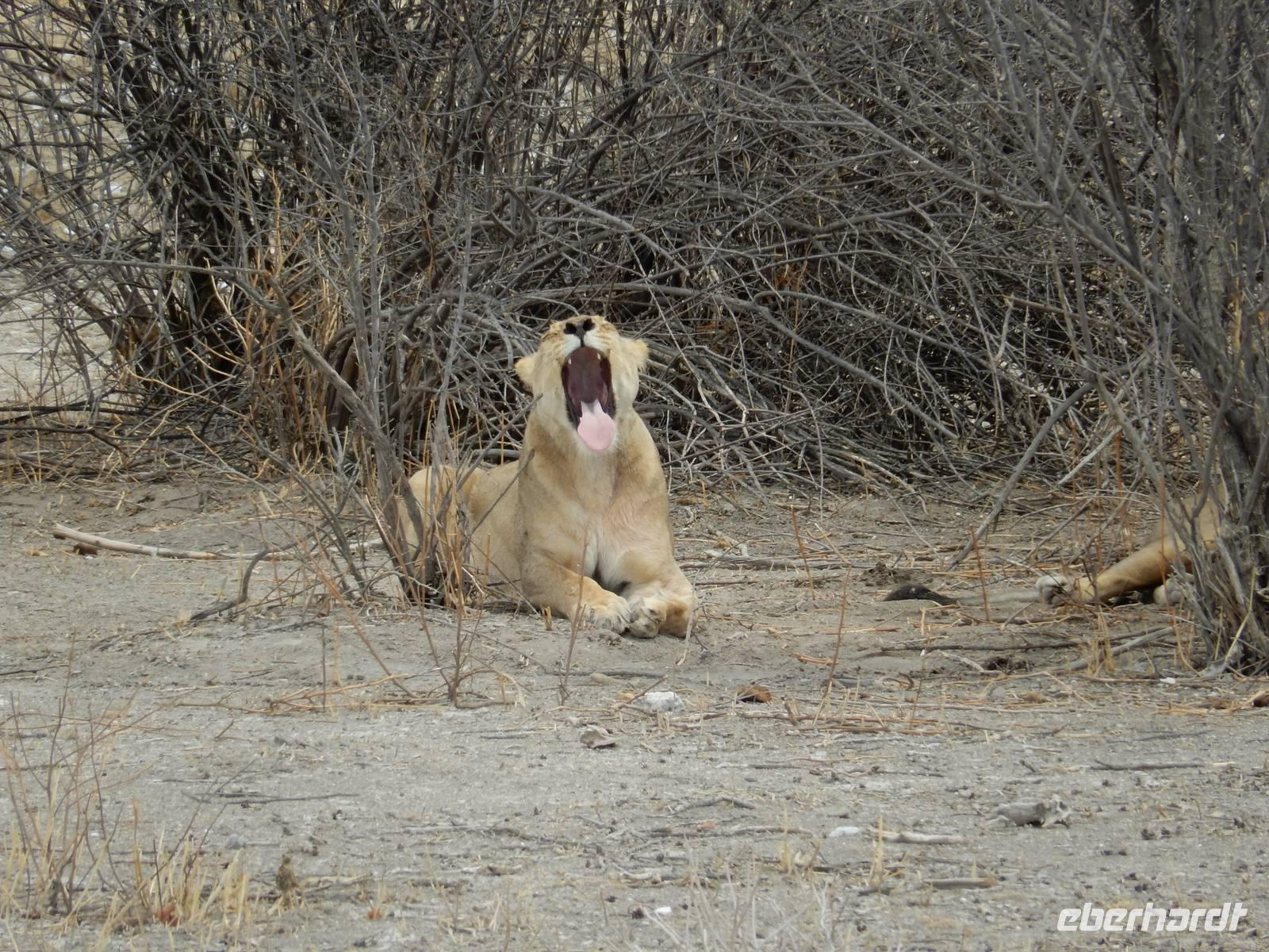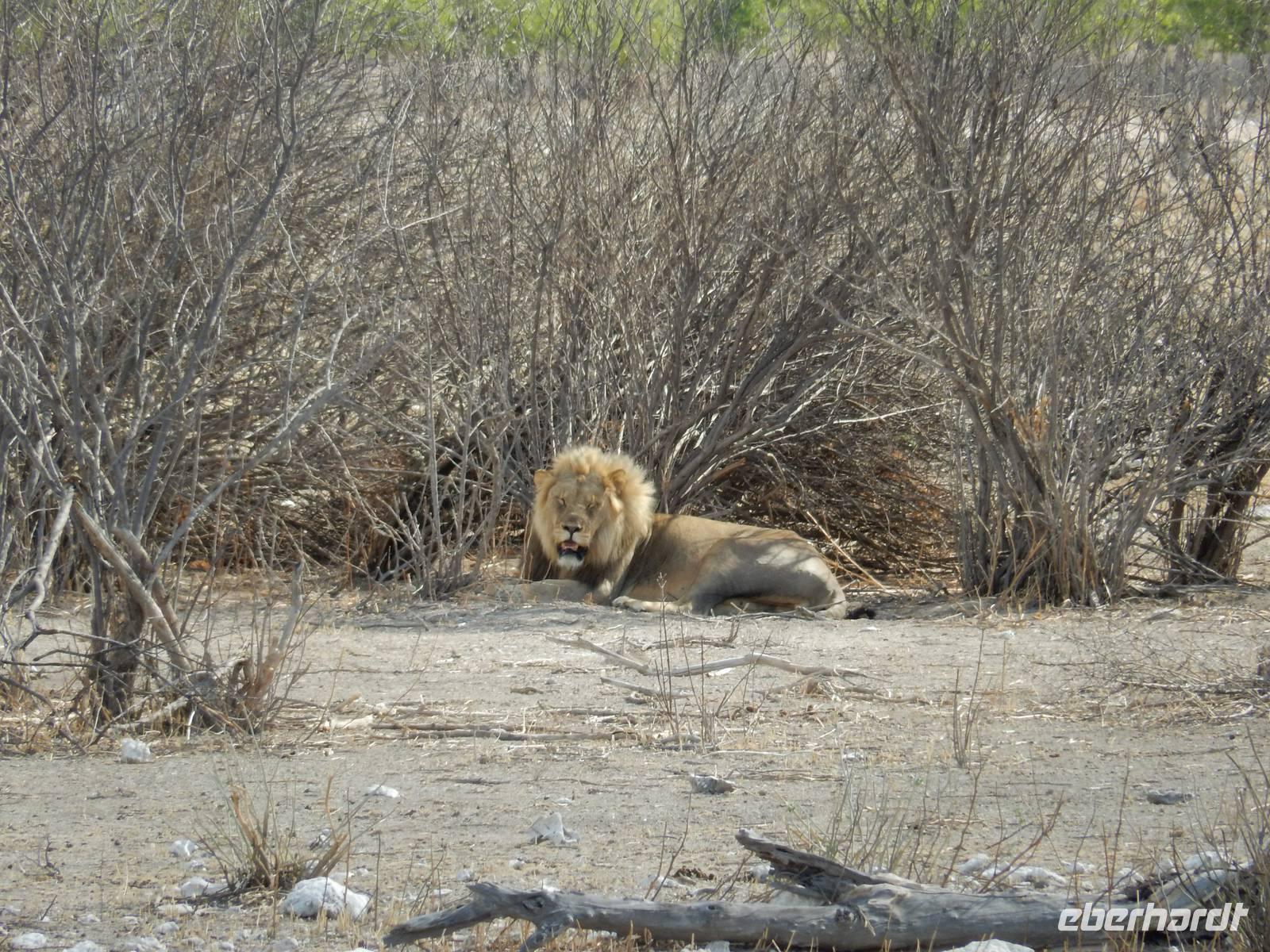 Ganz in der Nähe machten wir unsere Mittagsrast, bevor wir zum Wasserloch Ozonjuitji m'Bari fuhren. Leider war hier nichts zu sehen und so kehrten wir um und fuhren zurück in Richtung Okaukuejo, einem ehemaligen Militäraußenposten und heute ein staatliches Camp und Informationszentrum des Parks.