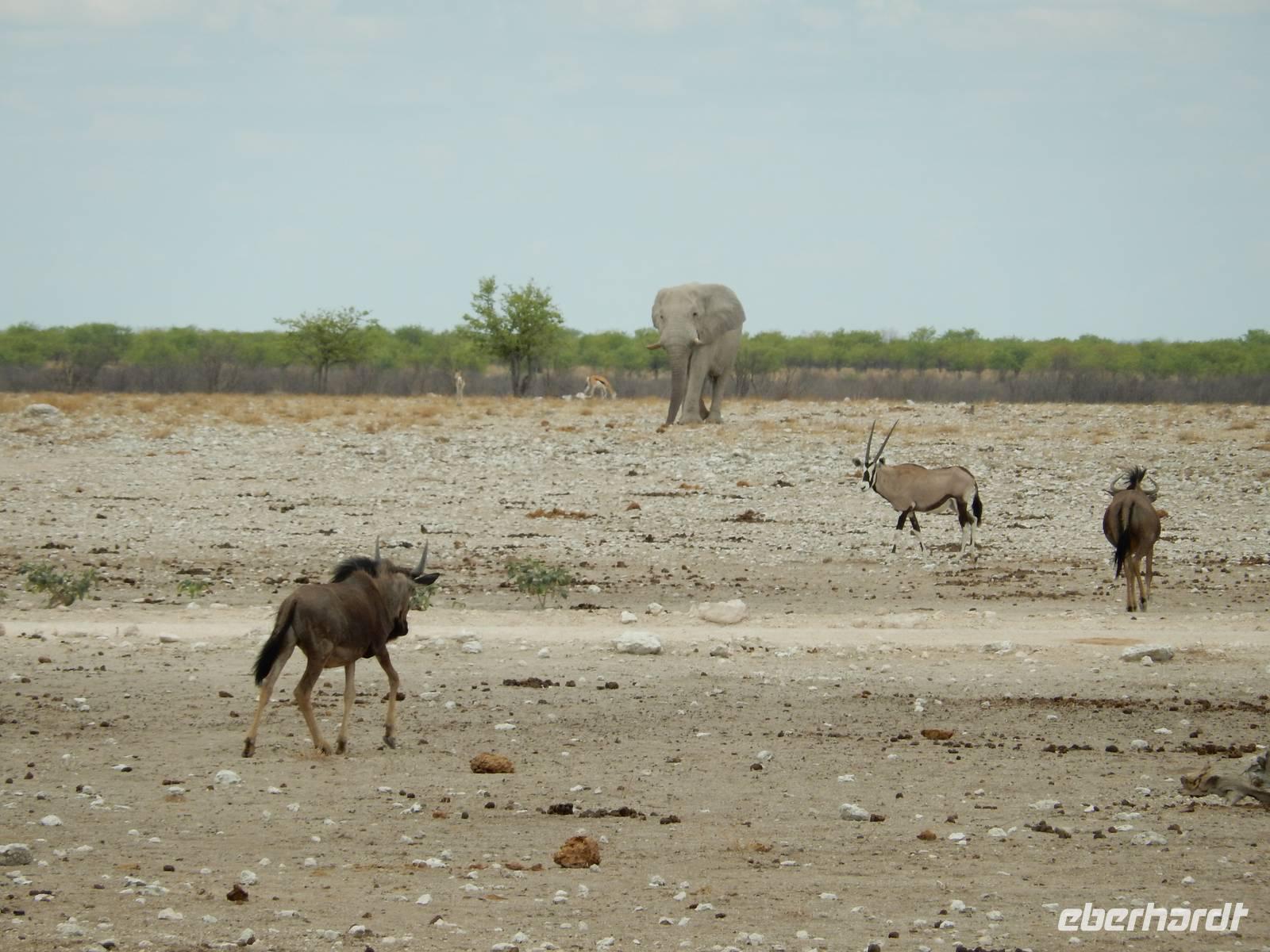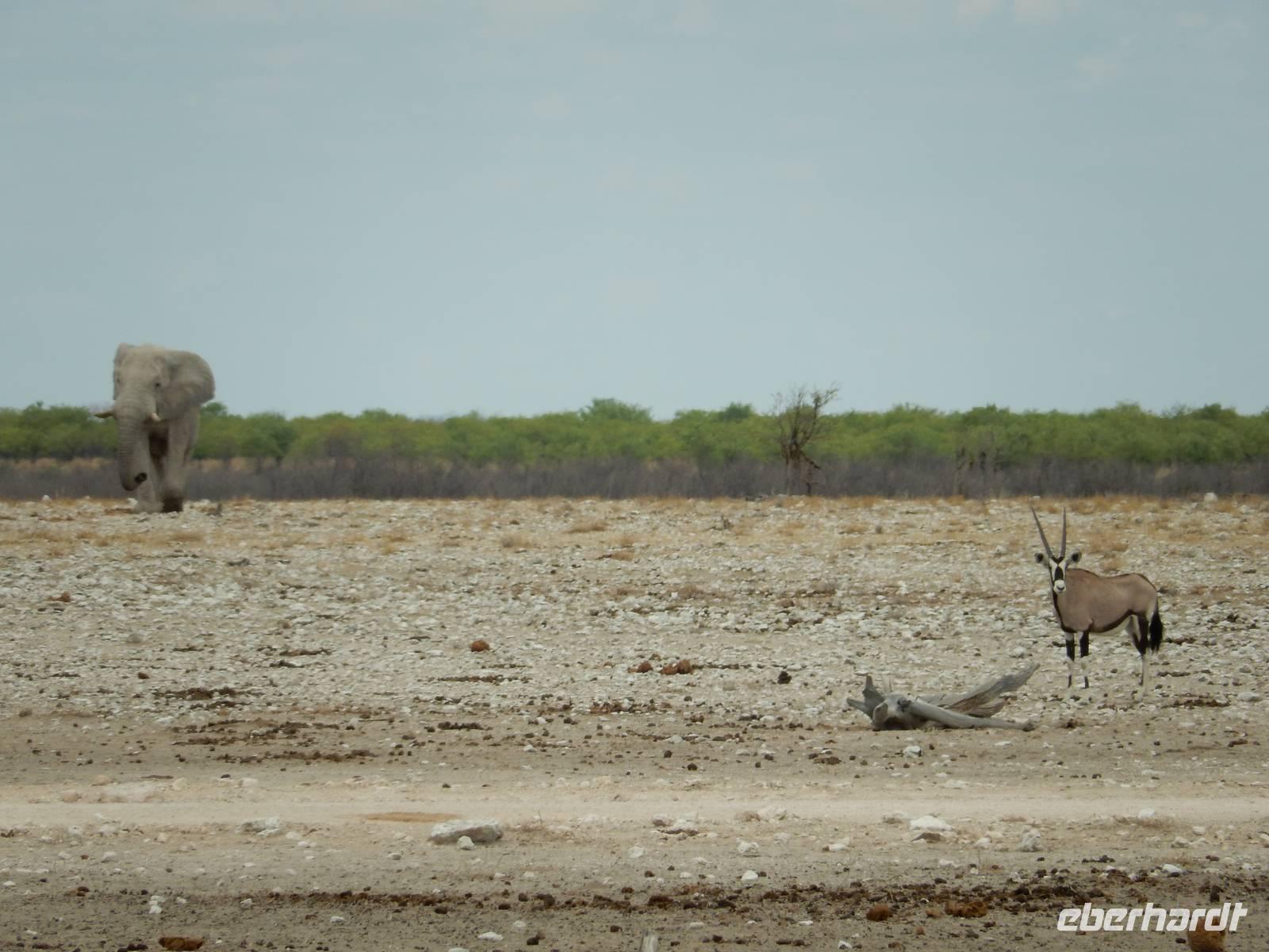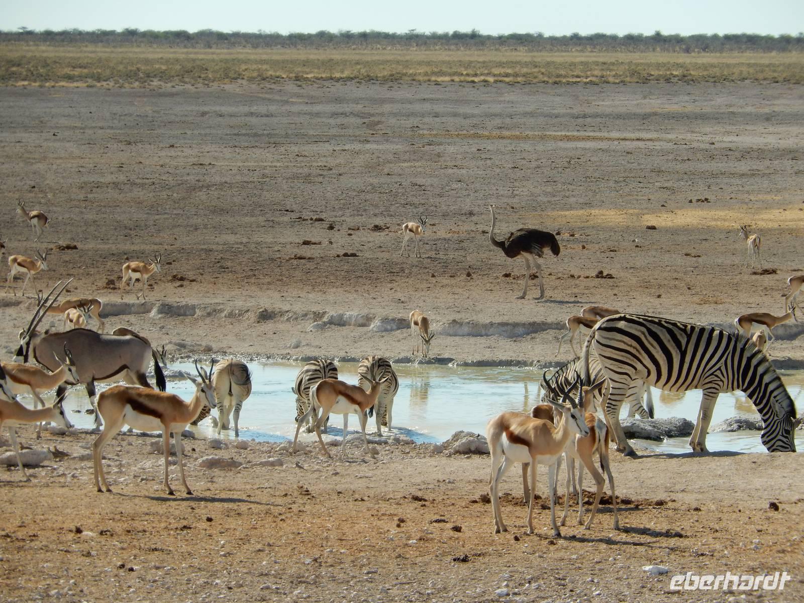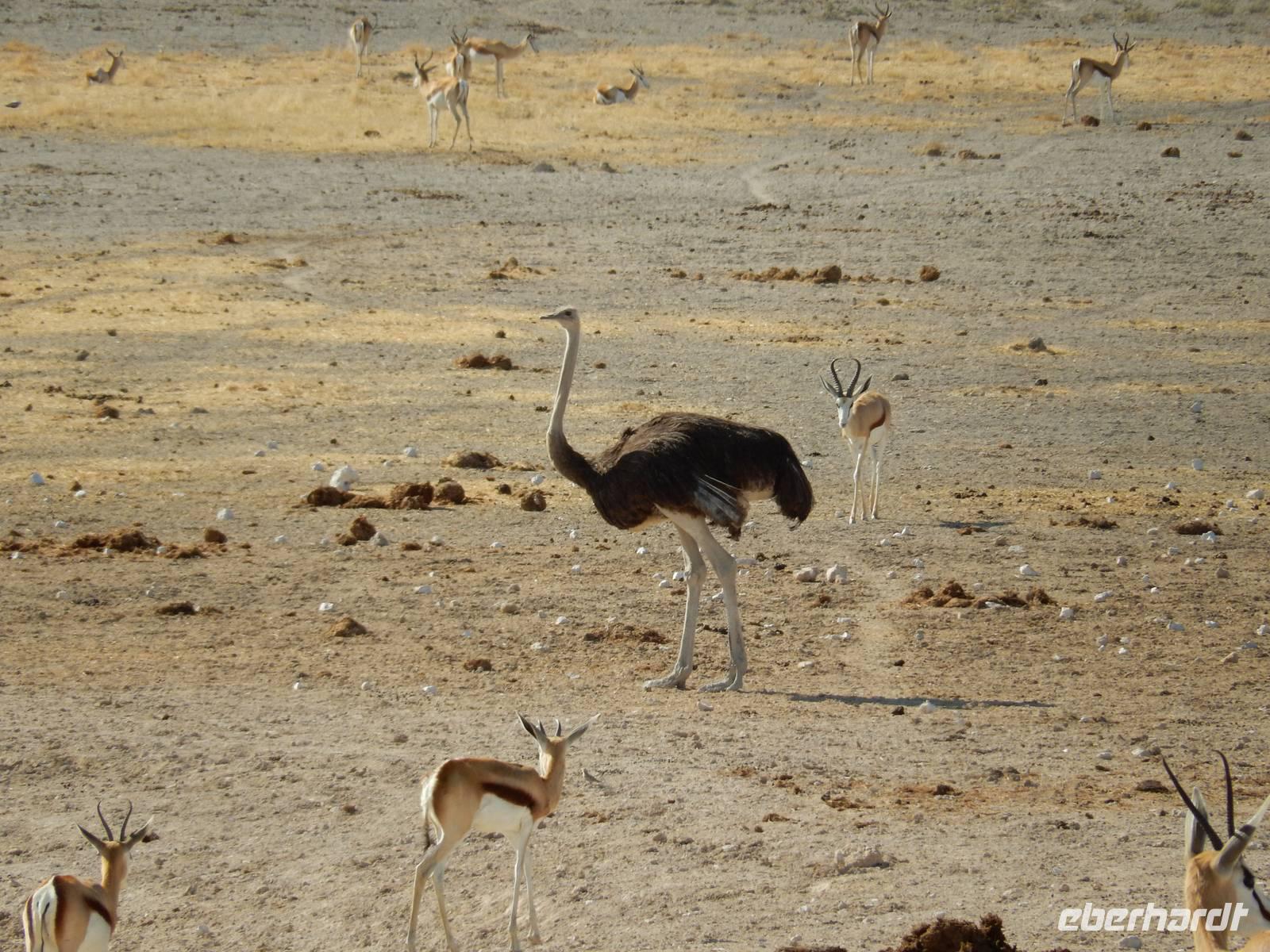 Um nun aber zu unserer Unterkunft, dem Etosha Safari Camp, zu gelangen, mussten wir einmal quer durch den Etosha-Nationalpark hindurch. So hatten wir also einen zusätzlichen Tag, um die artenreiche Tierwelt des größten Naturparks des Landes zu entdecken.