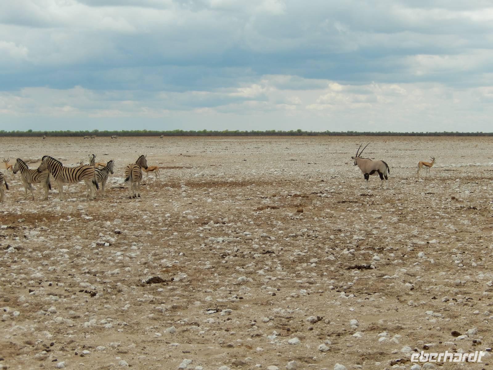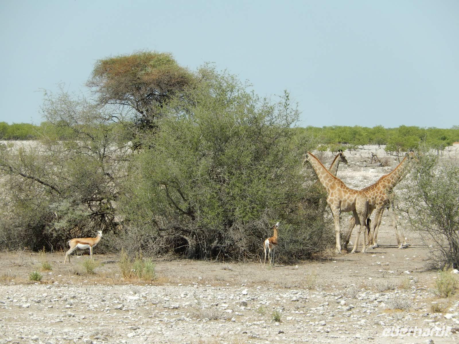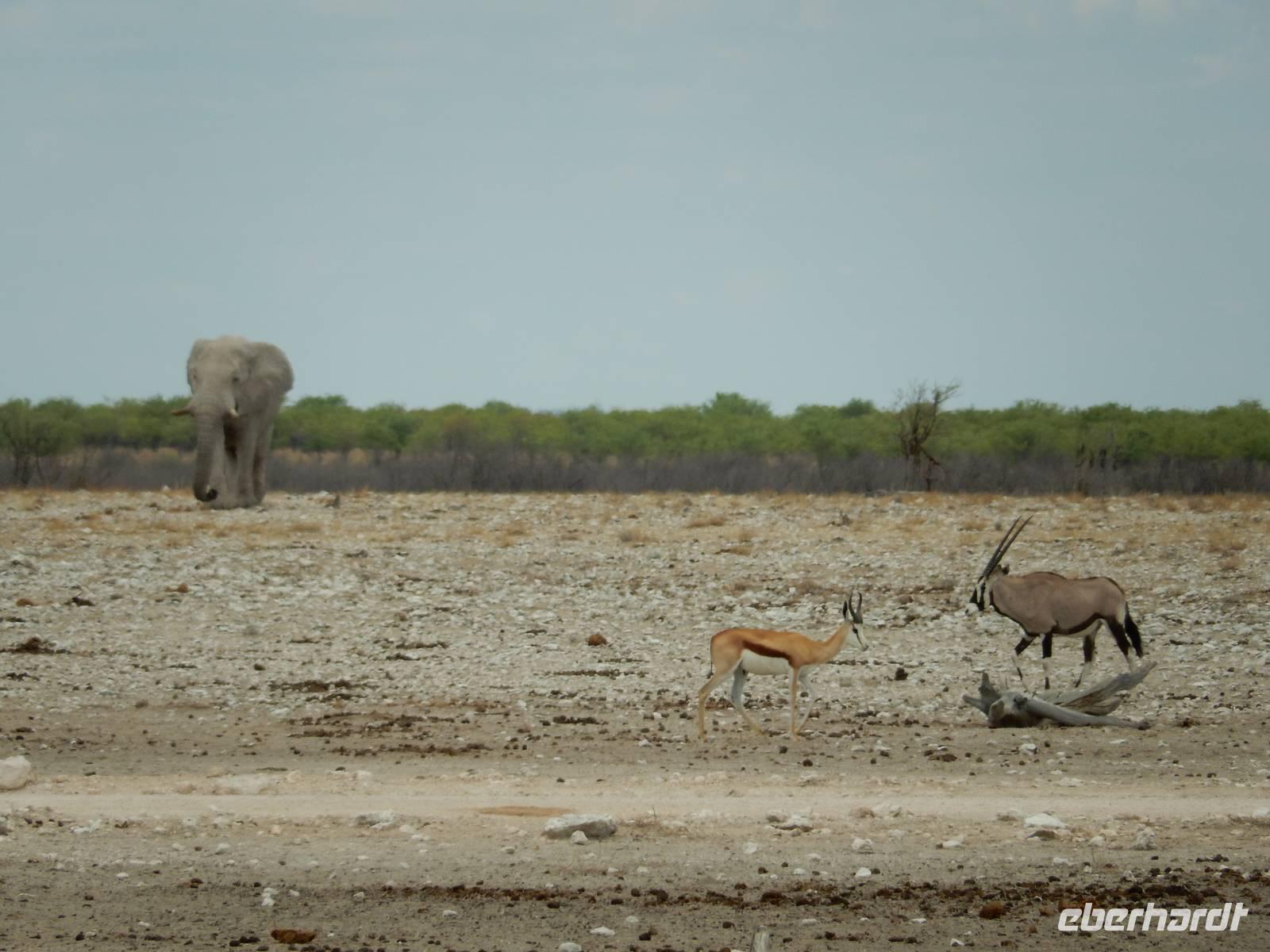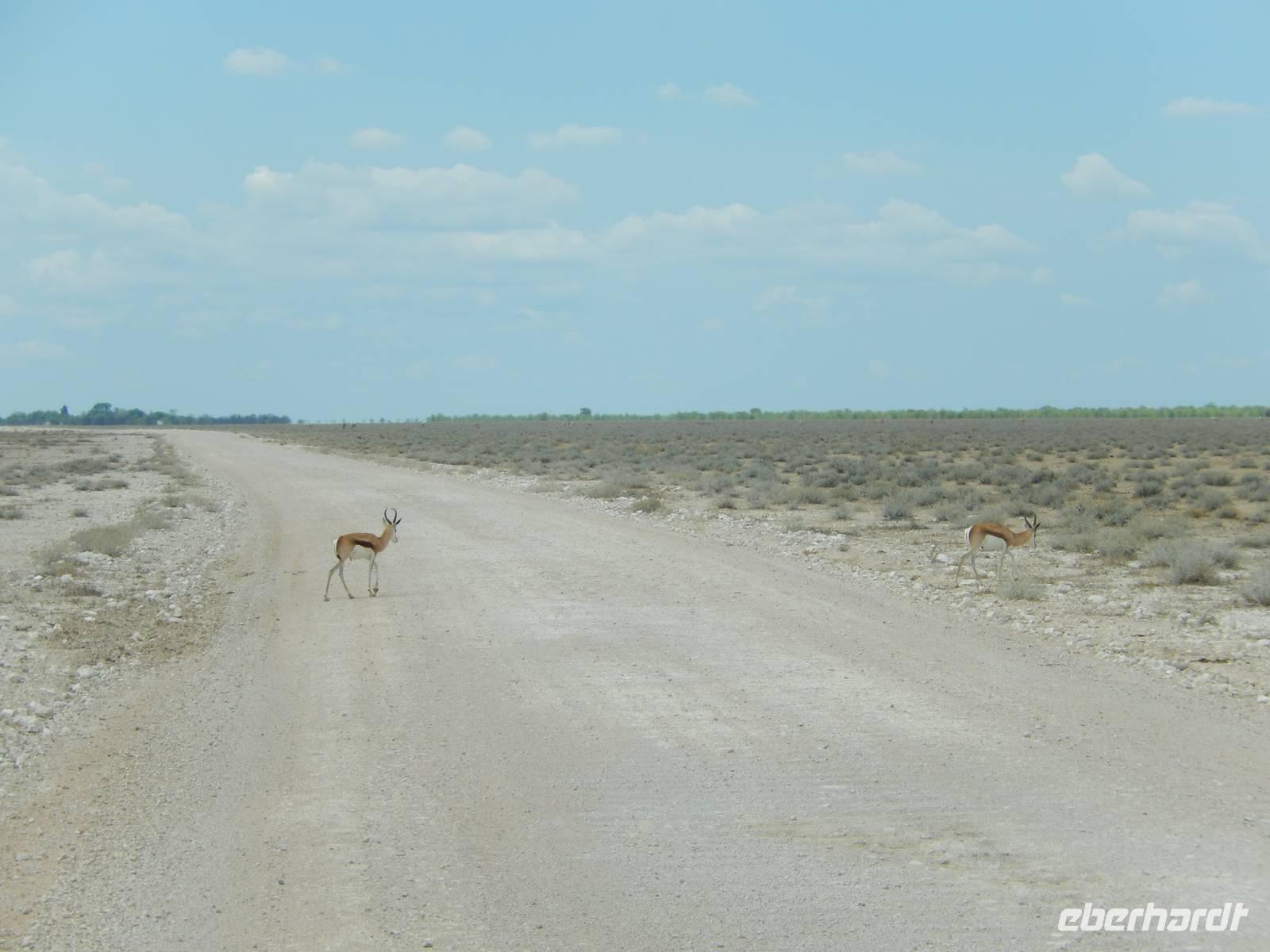 Um nun aber zu unserer Unterkunft, dem Etosha Safari Camp, zu gelangen, mussten wir einmal quer durch den Etosha-Nationalpark hindurch. So hatten wir also einen zusätzlichen Tag, um die artenreiche Tierwelt des größten Naturparks des Landes zu entdecken.