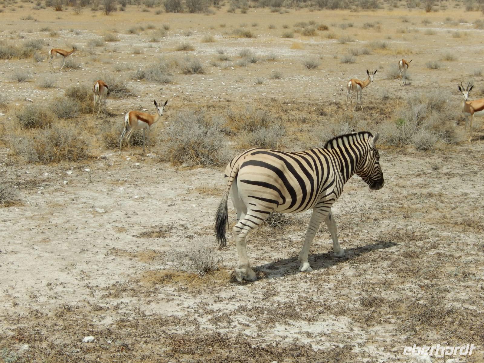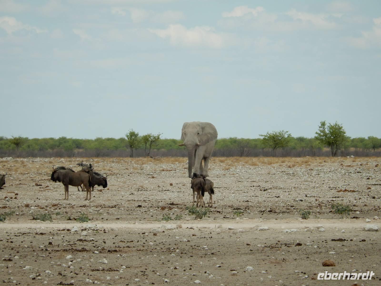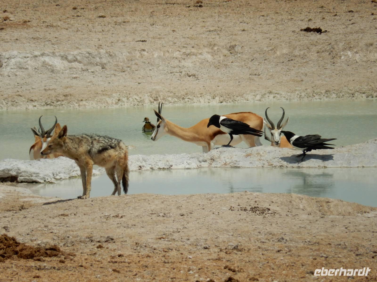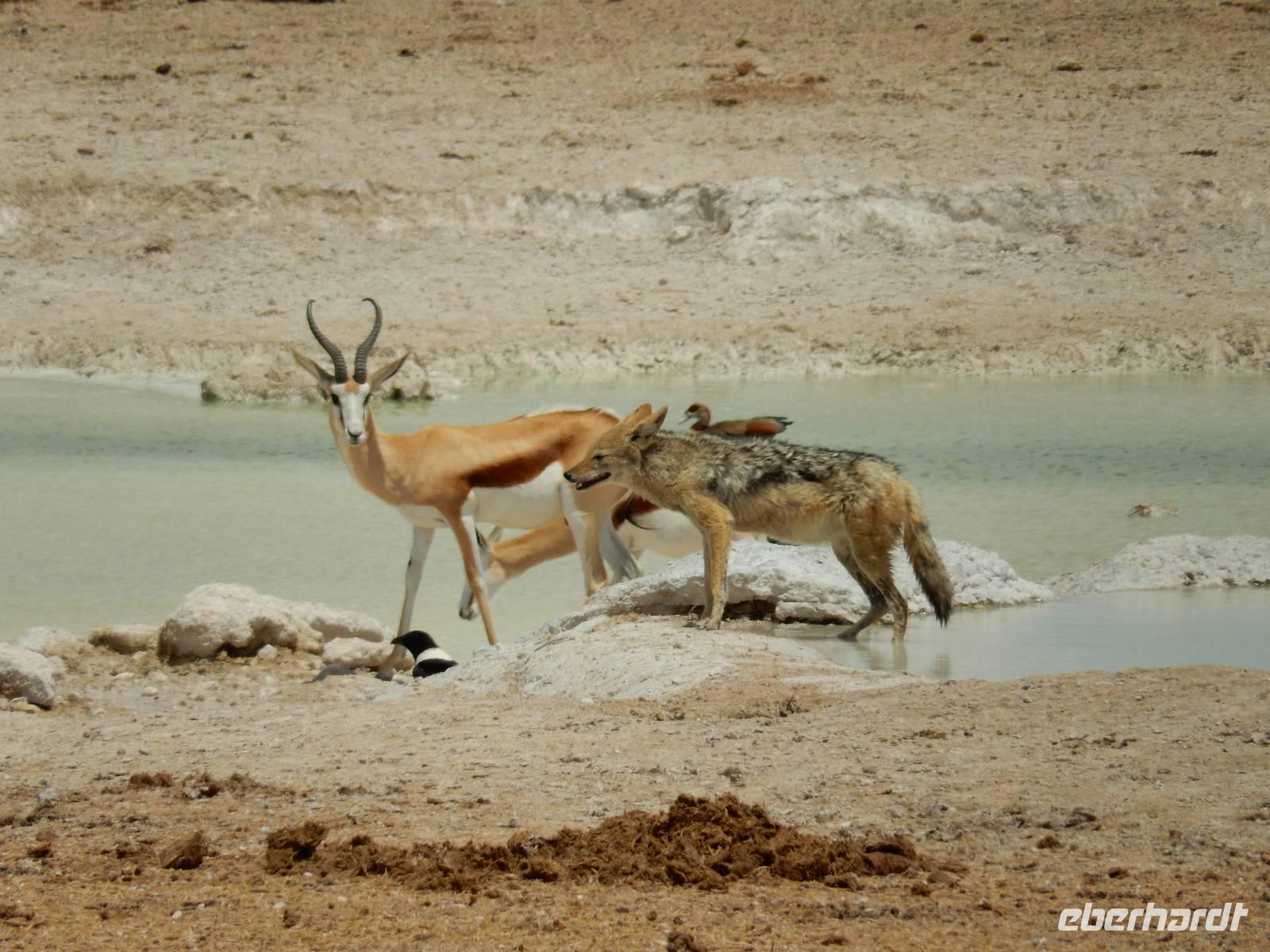 Um nun aber zu unserer Unterkunft, dem Etosha Safari Camp, zu gelangen, mussten wir einmal quer durch den Etosha-Nationalpark hindurch. So hatten wir also einen zusätzlichen Tag, um die artenreiche Tierwelt des größten Naturparks des Landes zu entdecken.
