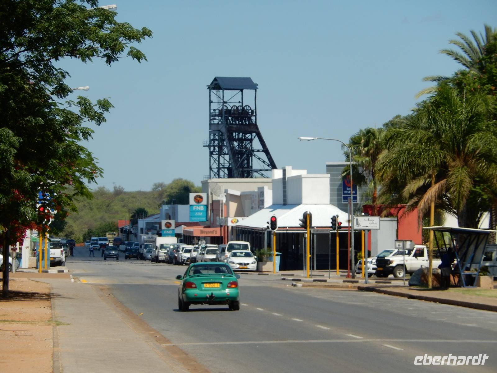 Heute ließen wir uns (also Claus und ich) etwas Besonderes einfallen und erweiterten das Programm erneut. Die erste Station des Tages war die Minen- und Gartenstadt Tsumeb. Sie hat rund 15.000 Einwohner und wirkt sehr grün. Tsumeb lebt aber vorwiegend vom Bergbau. Schon die Buschmänner fanden hier - in einem 12 Meter hohen Malachit Hügel - Kupfer und tauschten es mit den Ovambos gegen Tabak ein. Um 1900 begann man mit dem industriemäßigen Bergbau von Kupfer, Blei, Silber, Zink und Kadmium. Im heimatkundlichen Museum von Tsumeb informierten wir uns über die Geschichte der Stadt und der Region und kamen mit der engagierten Kuratorin Ilse Schatz, die das Museum 1975 gründete, ins Gespräch.