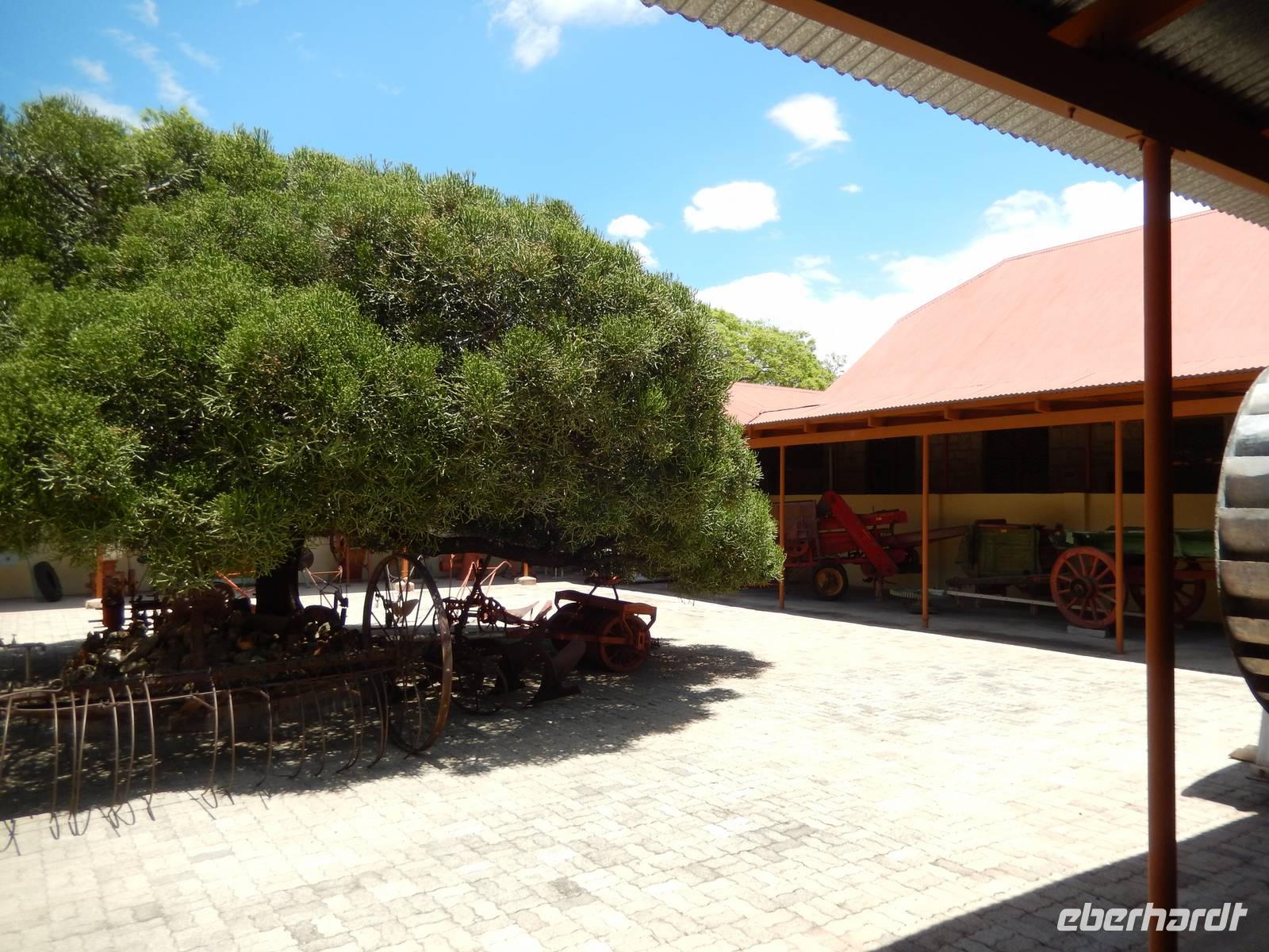 Nur wenige Kilometer waren es anschließend bis nach Grootfontein, an der namibischen Nationalstraße B8 gelegen, die von Windhoek in den Caprivi Strip im Nordosten führt. Auch hier gab es ein heimatkundliches Museum, welches sich im alten Fort der Deutschen Schutztruppe aus dem Jahre 1896 befindet. Hier sind neben landwirtschaftlichen Maschinen auch tolle Himba-Schmuckstücke ausgestellt.