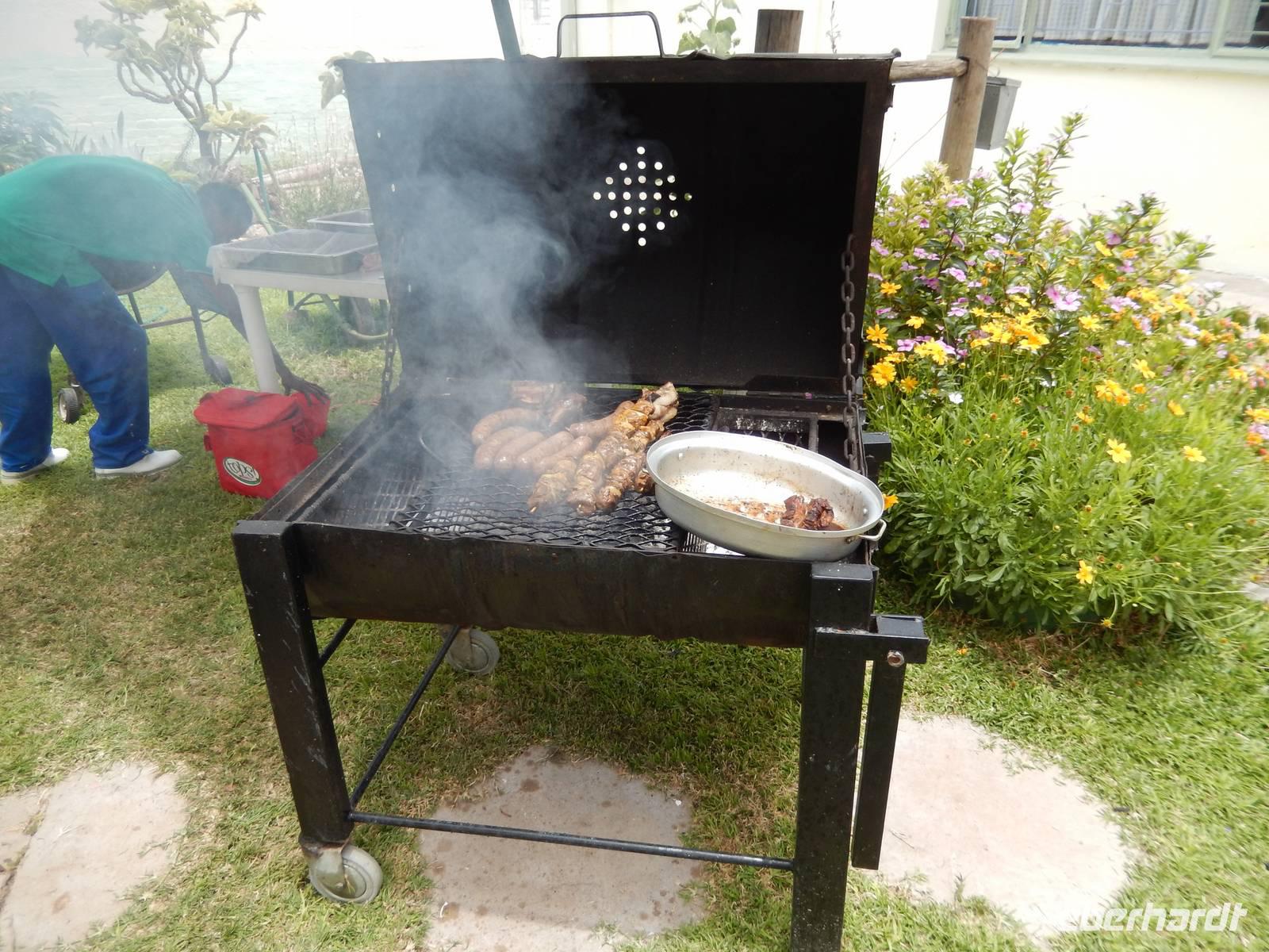 Vor dem Abendessen trafen wir uns zum "Sundowner". Diesen erlebten wir heute auf dem Hausberg der Lodge bei Gin Tonic, Bierchen oder Cidre. Zum Abendessen wurden wir mit einem leckeren Barbecue verwöhnt.