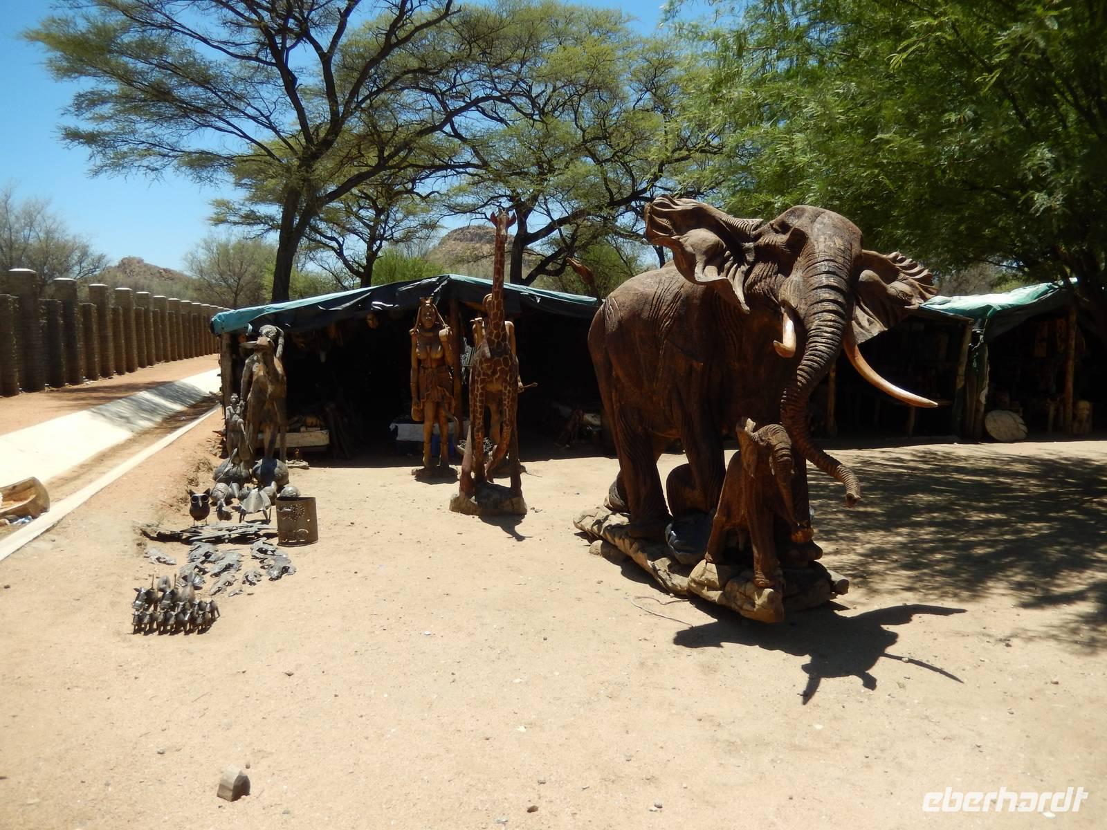 Der nächste Stopp führte uns zum hiesigen Holzschnitzermarkt am Rande der Stadt - eine gute Gelegenheit, die letzten Namibia-Dollar auszugeben. Handeln war hier übrigens Pflicht! So hatten wir mit den teilweise äußerst aufdringlichen Händlern jede Menge Spaß und der ein oder andere erstand tatsächlich nach einigen fairen Verhandlungen noch ein typisches Souvenir für Zuhause.