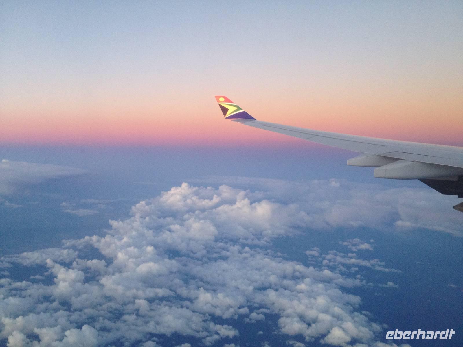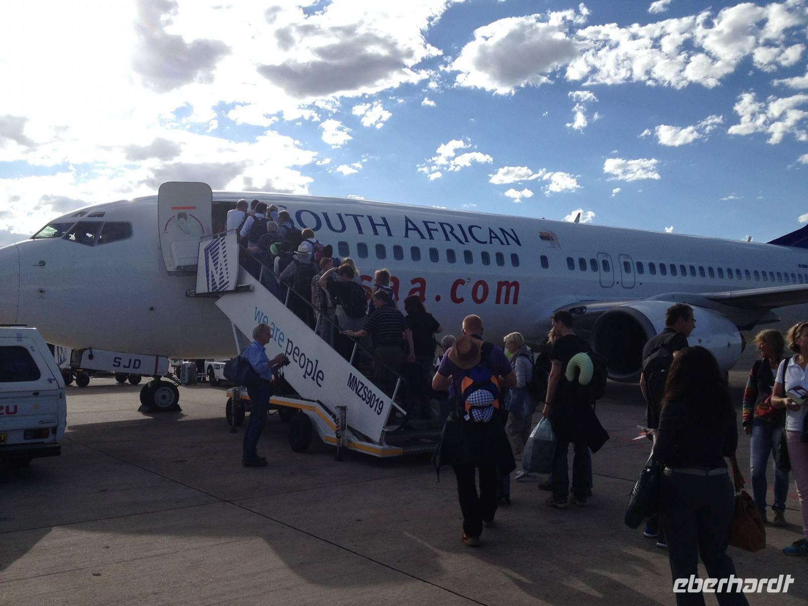 Das Boarding der Maschine der South African Airways verlief ebenso unkompliziert und somit starteten wir am frühen Abend zunächst nach Johannesburg (Südafrika). Nach knapp 11 Stunden angenehmen Nachtfluges landeten wir sicher im südlichen Afrika und die dritte Etappe führte uns schließlich von Johannesburg nach Windhoek - Hauptstadt Namibias.