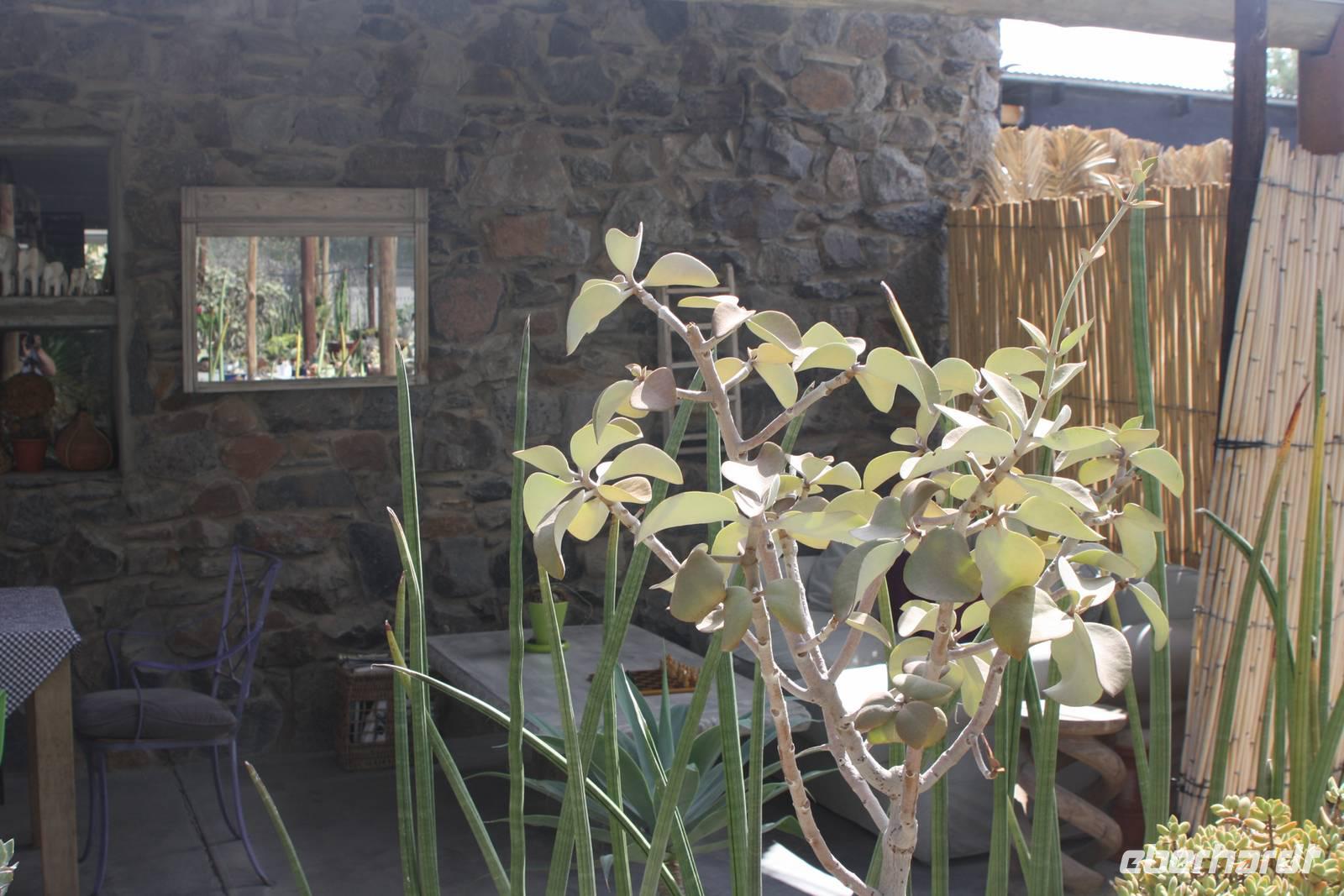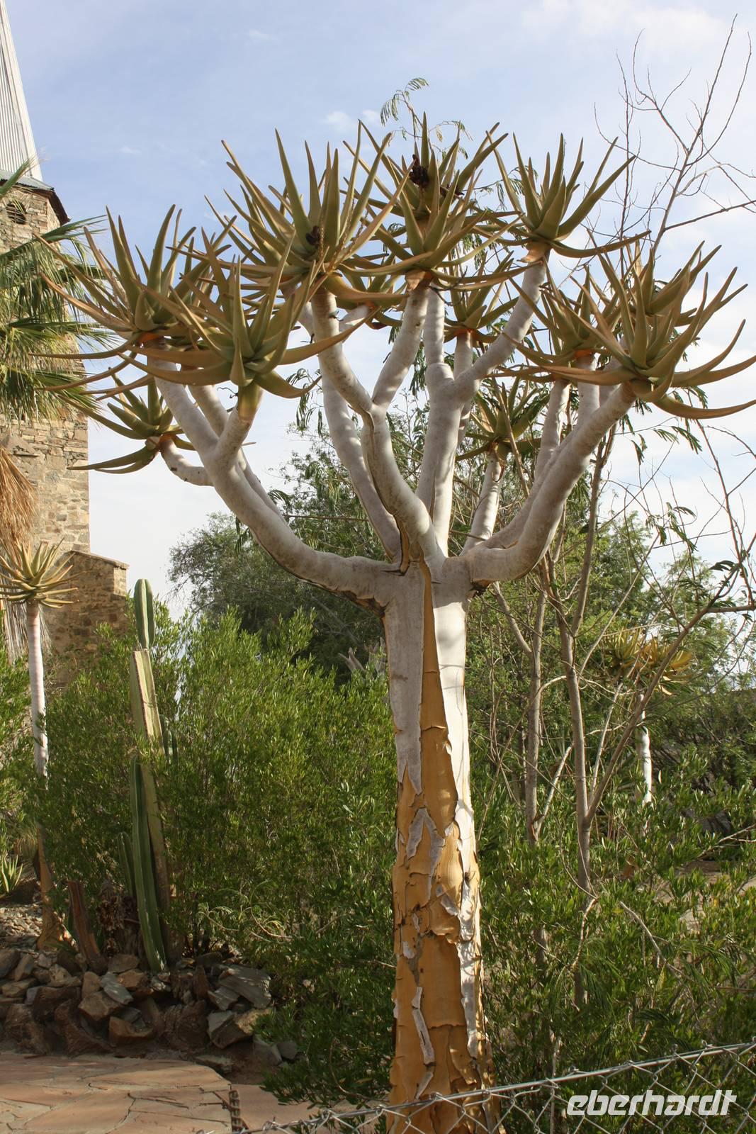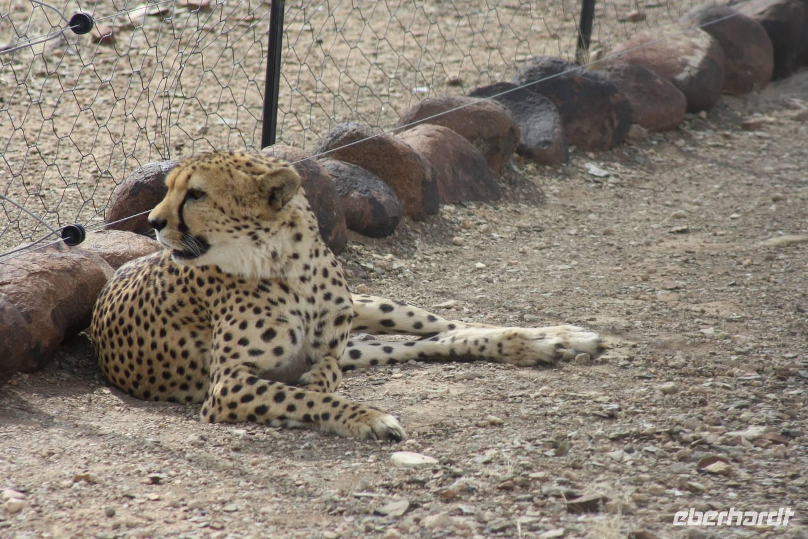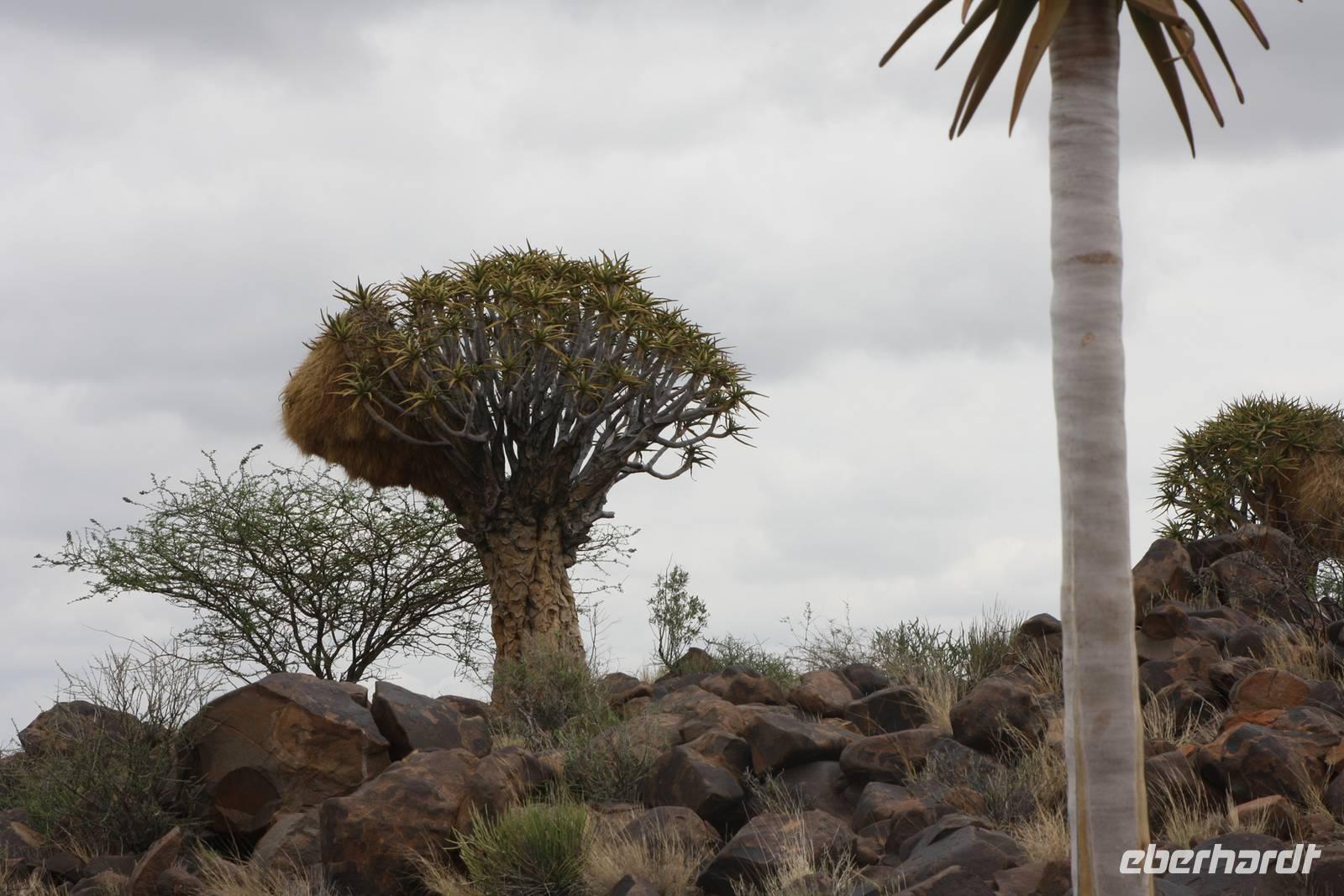 Ein neuer Tag in Afrika, der uns leider mit Regen begrüßt. Die Einheimischen freut es sehr, da sie diesen Regen schon sehr lange vermissen. Erstes Highlight des Tages: wir sehen zwei Eulen in den Blättern der Palmen ruhen. Sie sind ganz schön groß und nach Anmerkung des einen oder anderen Gastes haben sie in der vergangenen Nacht Radau gemacht. Nun sind sie ganz ruhig und lassen sich fotografieren. Nach dem Frühstück geht es weiter auf der B1 in Richtung Mariental. Ernst möchte mit uns zunächst zum Hardap-Stausee, dem zweitgrößten Namibias aber aus organisatorischen Gründen kommen wir nicht herein. Weiter gehts entlang der Dirtroad vorbei an Maisfeldern. Dann wird der Weg durch den Regen aber so sumpfig, das Jonas sich für die Rückfahrt entscheidet.Über die asphaltierte Straße erreichen wir nach rund anderthalb Stunden Mariental. Hier haben wir Zeit im Supermarkt für das Mittagspicknick einzukaufen und den Tank unseres Safaritrucks aufzufüllen. Es geht weiter Richtung Keetmanshop. Die unendliche Steppe begleitet uns links und rechts der Straße. Immer wieder mal kämpft sich die Sonne durch die regenverhangenen Wolken. Circa fünfzig Kilometer vor Keetmanshop kommen die ersten Köcherbäume in unser Blickfeld. Die Sonne hat ihren Kampf gewonnen und wir erreichen den Quiver Tree Forest. Auf dem Privatgelände spaziert meine Gruppe entlang der Köcherbäume während Ernst und ich das Mittagspicknick vorbereiten. Nach der Stärkung spazieren wir noch ein Stück entlang der Köcherbäume und Ernst erzählt uns interessante Details dazu. Danach hält er noch eine kleine Überraschung für uns bereit: der er die Chefin des privaten Farmgeländes kennt, dürfen wir in ein abgegrenztes Gehege fahren, in dem zwei Geparden leben. Obwohl wir zur Mittagszeit dort sind, haben wir das Glück, die zwei Katzen zu sehen, die sich in der prallen Sonne aalen. Ernst ist sogar so verrückt, rauszugehen und sich auf die Erde zu legen, um die Aufmerksamkeit der Katzen zu erregen. Vielen Dank nochmal dafür.Unser nächster Stopp ist am Spielplatz der Gigangen,dem Giants Playground. Verschiedenartigste Gesteinsformungen aus Magmagestein erwarten uns hier, und lassen sich auf unserem Rundgang fotografieren. Schließlich treten wir die Weiterfahrt Richtung Keetmanshop an. Während Ernst mal wieder im Supermarkt shoppt, sind wir an der Felsenkirche zum Fotografieren.Natürlich haben wir vorab auch das Kaiserliche Postamt in der Stadt auf Bild festgehalten. Unser Abend klingt in der Maritz-Lodge aus, die etwas außerhalb von Keetmanshop liegt.