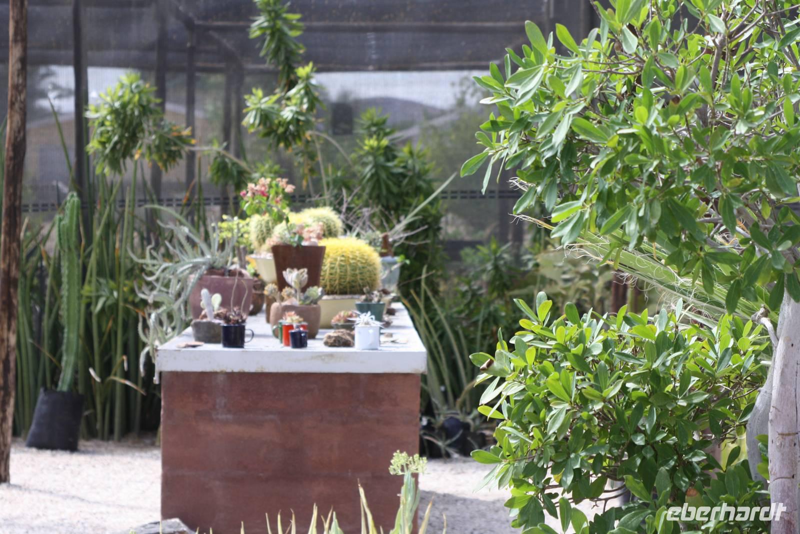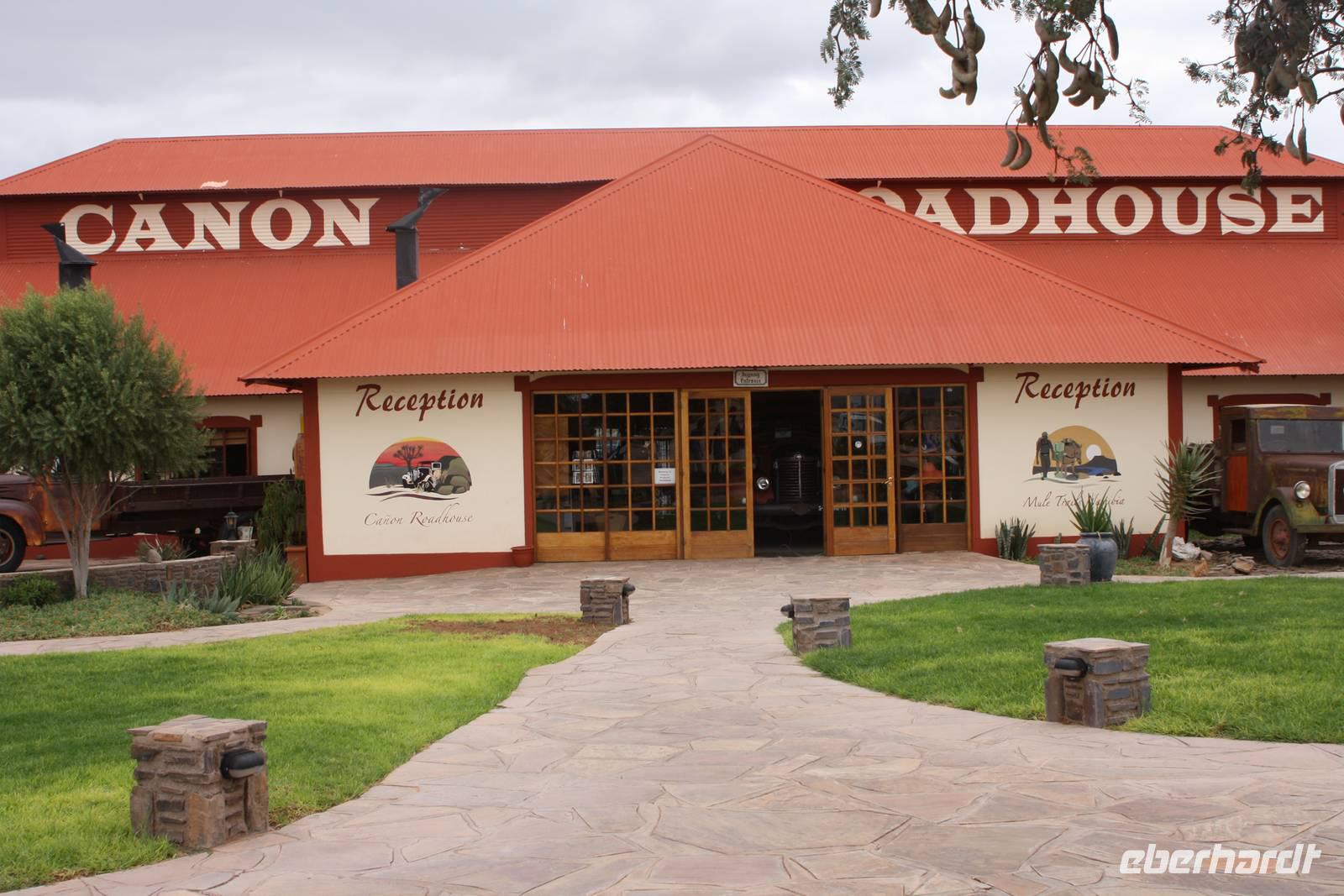Nachdem es in der Nacht geregnet hat, sind wir nun froh, das es aufgehört hat. Nach dem Frühstück sammelt Jonas mit seinem Truck unsere Koffer ein und wir fahren zurück in das Städtchen Keetmanshoop. Während Ernst mal wieder shoppen geht, obwohl, bei Lebensmittel nennt man das einkaufen, fahren wir mit Jonas erneut zur Felsenkirche. Jetzt hat das Museum im Inneren der Kirche auch geöffnet und wir bestauenen alte Bügeleisen, Stempeldrucker, Geschirr, Gläser aus Deutschland usw.. Dann verlassen wir Keetmanshop und unser Weg führt uns weiter Richtung Süden zum Fishriver Canyon. Nach einer nicht allzu langen Fahrzeit, bezogen auf die letzten Tage, fährt Jonas bald eine Schotterpiste hinauf, damit wir einen wunderbaren (Foto-)Ausblick auf den Naute-Stausee haben. Da zurzeit nicht genügend Wasser im Stausee ist, können wir leider nicht zur Brücke fahren. Aber unser Erns hat noch eine andere Idee. Gemeinsam mit Jonas ¨entführen¨ er uns auf eine private Farm. Hier wachsen Dattelpalmen noch und nöcher. Ob wir überhaupt hier sein dürfen, werden wir wohl erst vom Herrn der Farm erfahren. Den finden wir dann auch irgendwann und ist sogar so nett, einen seinen Mitarbeiter abzustellen, uns alles zu zeigen. Wir gehen ins Innere einer Halle wo zahlreiche Namibiar die Datteln aussortieren nach ihrer Verwertbarkeit. Die Einheimischen sind mindestens genauso erfreut uns zu sehen, als wir auch sie. William erklärt uns den Prozess und wir dürfen sogar von den Datteln probieren. Dann zeigt er uns, wo die kleinen Dattelpalmen die ersten zwei drei Jahre stehen,bevor sie auf die hektargroßen Feldern umziehen. Aber auch Nüsse und Granatäpfel werden hier geerntet. Wir bleiben vor einer riesigen Granatapfelplantage stehen und wir dürfen auch hier probieren und sogar mitnehmen. Mit großem Dank verabschieden wir uns von William.Nach einem weiteren, diesmal kürzeren Stopp in einer Wein- und Schnapsbrennerei erreichen wir dann Canon Roadhouse. Vielleicht hat es der ein oder andere schon einmal auf Bildern gesehen? Viele Oldtimer, aus deren Mitte Kakteen und Köcherbäume wachsen. Wir machen hier unsere Mittagspause und neben zahlreichen Fotos genießen wir eine Kleinigkeit zum Mittag inklusive Rock Shandy. Kurz nach um drei erreichen wir schließlich unser Zuhause für die kommende Nacht, die Country Lodge - eine wunderschöne Lodge. Und ein extra WOW weil wir ihn das höherwertige Quartier umgebucht wurden. Da uns der restliche Nachmittag frei zur individuellen Gestaltung steht, erkunden wir erstmal das Gelände. Ein kleinere Weg Richtung Canyon führt uns zum Pool. Von hier aus hat man einen wunderschönen Blick über die Bergwelt - und das, wer mag, im kühlen nass. Damit uns aber nicht langweilig wird, unternimmt ein Teil der Gruppe eine optionale Pirschfahrt und beobachtet dabei unter anderem Oryxe. Ich klettere mit meinen anderen Gästen den Hausberg hinauf. Von hier oben beobachten wir, wie Sonne am Horizont langsam verschwindet und der Himmel sich von rot in lila verwandelt um schlussendlich ganz zu verdunkeln. Zurück bei der Lodge nehmen wir auf der Terrasse zum Abendessen platz. Dadurch dass diesmal Buffet serviert wird, kann sich jeder wirklich so viel nehmen, was er am liebsten mag wie zum Beispiel Reis mit ganz viel Soße;)