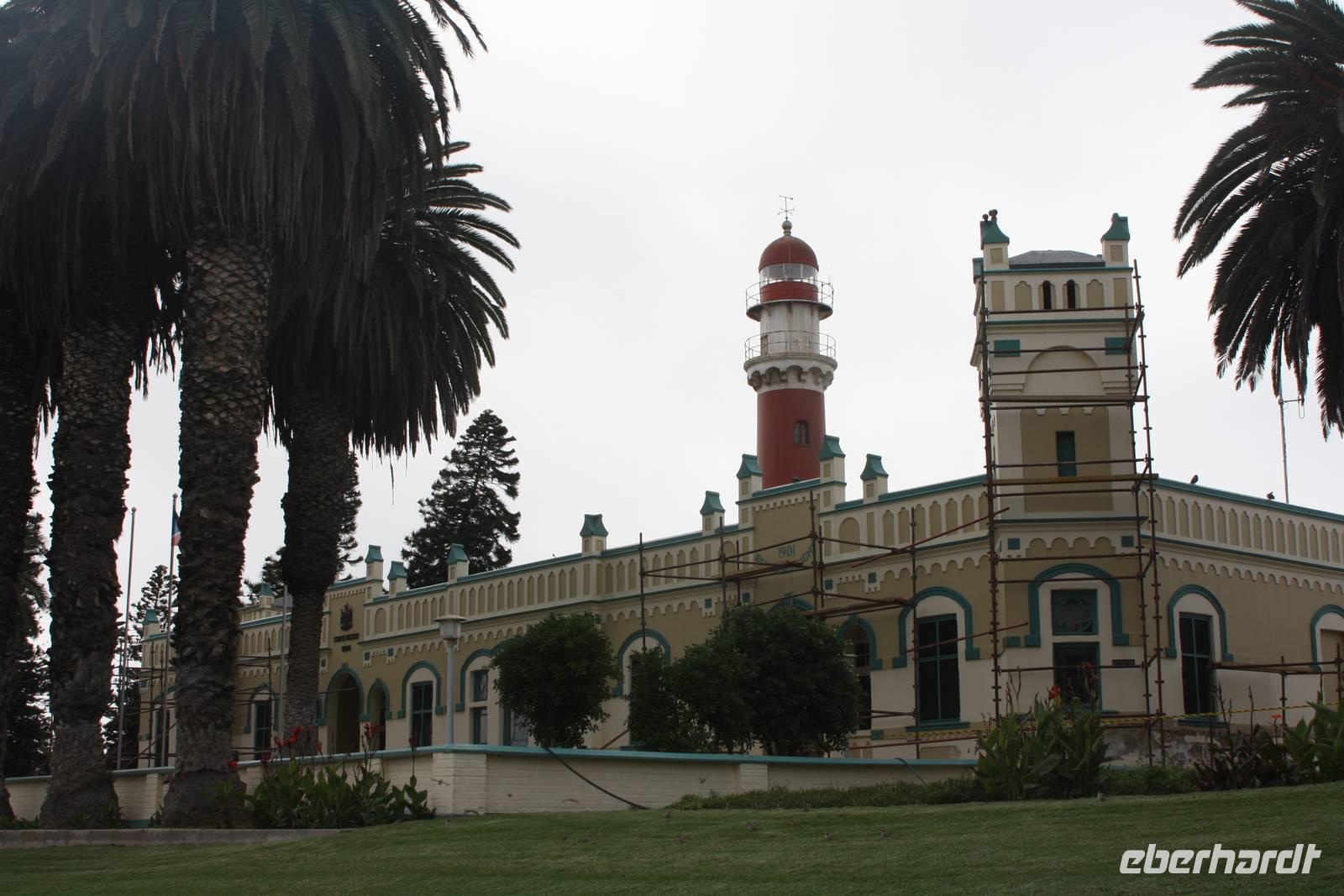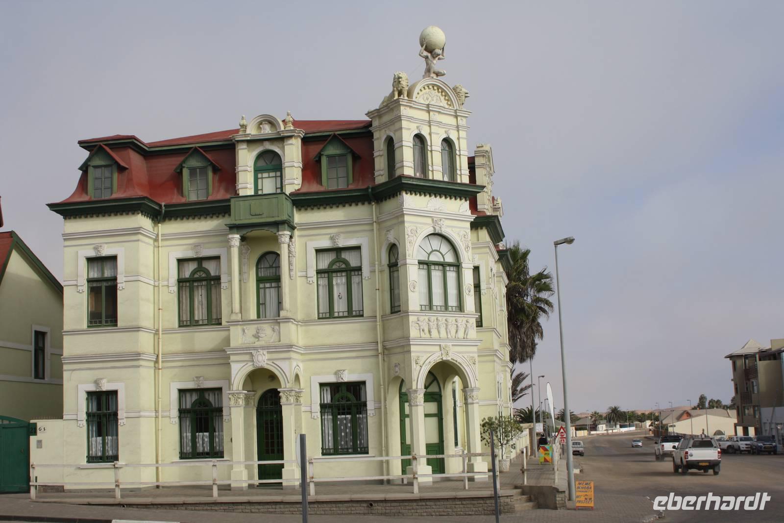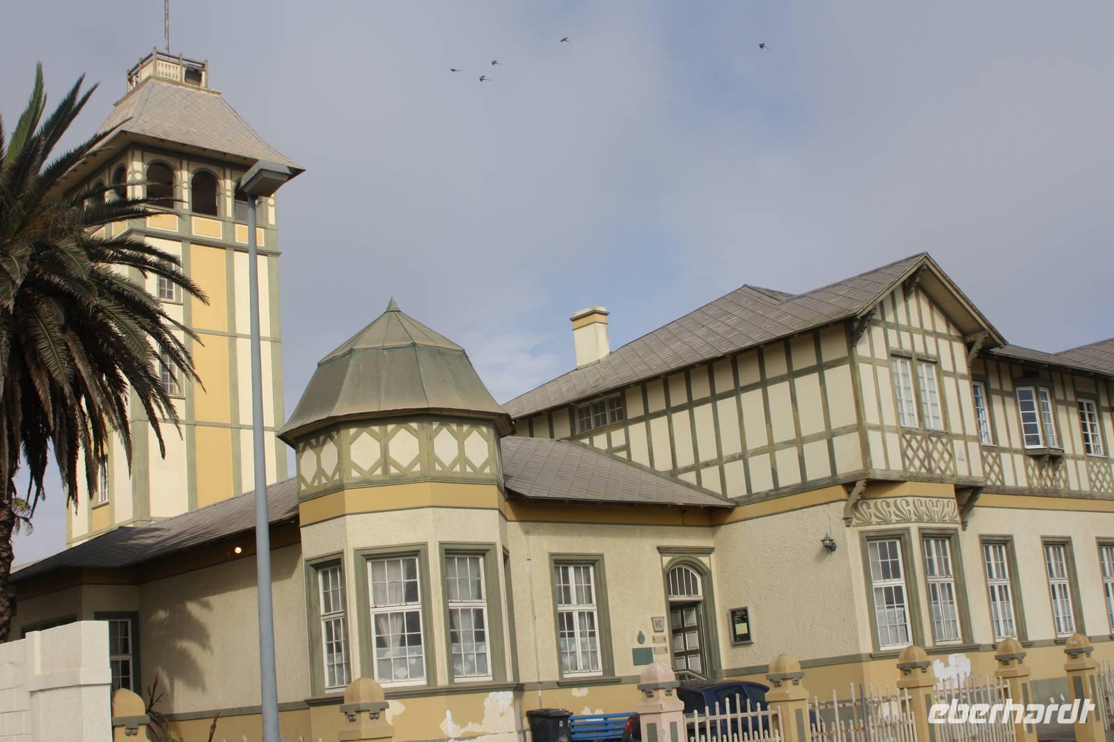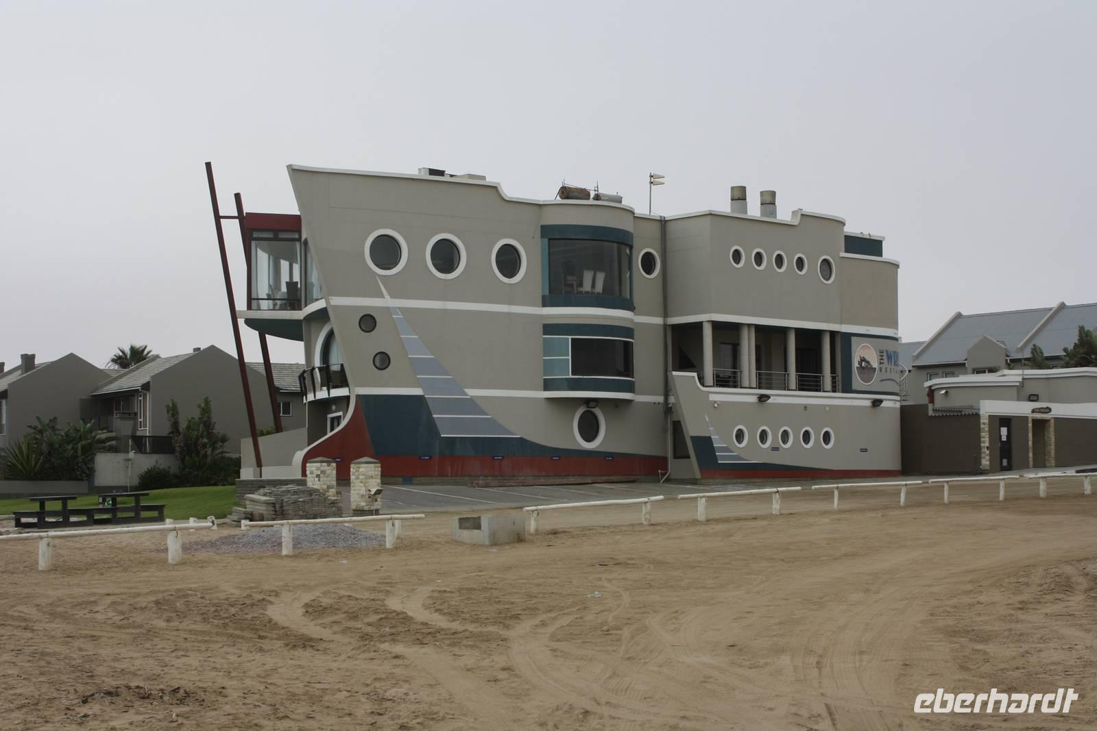 Eine weniger lange Fahrt liegt heute vor uns. Wir verlassen die Lodge in Richtung Norden. Unser Ziel heute ist die Stadt Swakopmund am Atlantik gelegen. Natürlich machen wir im Städtchen Solitaire Stopp, das in jedem Reiseführer angepriesen wird. Wir kaufen den bekannten Apfelkuchen für die Mittagspause und lassen unsere Karten mit dem Solitaire-Stempel vermerken. Dann geht die Fahrt weiter. Wir erreichen erneut den südlichen Wendekreis des Steinbocks. Hier lade ich meine Gäste auf ein Gläschen Amarula-Likör (nicht den Cream-Likör den es auch bei uns gibt, sondern wirklich klaren, drehhaften Likör) ein und wir erheben unsere Gläser auf das Bergfest. Die Weite zieht weiter an uns vorbei und ändert sich ständig wieder und sind ganz happy als wir endlich die Schotterpiste verlassen und Walvis Bay erreichen. In der Lagune bei den Pelikanen vertreten wir unsere Beine bei unserem Fotostopp, der auch gleichzeitig unsere Mittagspause ist. Nun kosten wir nun auch von dem bekannten Apfelkuchen. Unser Fazit ist jedoch, das er nicht so viel besser oder anders schmeckt als anderswo. Danach machen Ernst und Jonas mit uns eine kleine Rundfahrt durch den Ort, vorbei an den teuren Villen mit Blick aufs Meer, der Hauptverkehrsstraße und den Hafen. Keine halbe Stunde spätern nachdem wir Wavis Bay verlassen haben, erreichen wir Swakopmund. Bei einer kleinen Rundfahrt zeigt uns Ernst die schönen Häuser der Stadt, die Hauptverkehrsstraße, die Mole, das Woereman-Haus, die Swakopmunder Buchhandlung sowie die älteste Apotheke, das Denkmal für die gefallenen deutschen Soldaten im ersten und zweiten Weltkrieg sowie den alten Bahnhof und das bekannte Café Anton. Danach gehts weiter zu unserem 4-Sterne-Hotel, welches ca. 7 Kilometer außerhalb der Stadt direkt am Atlantik liegt. Wir spazieren am Nachmittag am Strand entlang und lassen uns den kräftigen Meereswind um die Nase wehen.