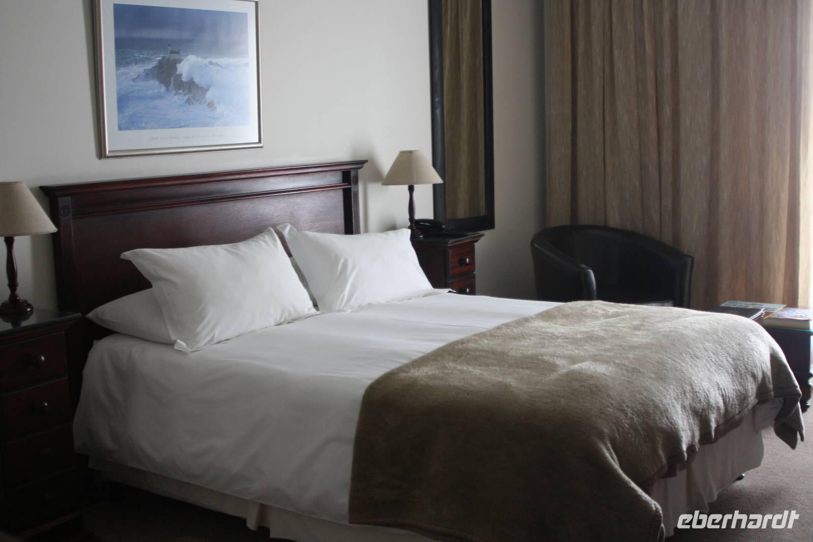 Endlich geht es los: unsere langerwartete Reise in den Süden Afrikas, nach Namibia. Gemeinsam mit fünf Gästen fliege ich von Dresden nach München. Der letzte Flug der Maschine namens Lübeck ist weitestgehend ruhig. Nur die dunklen Wolken über der bayrischen Landeshauptsadt bringt die Maschine zum Wackeln. In München treffen wir dann noch auf die restlichen Gäste aus Leipzig und Hamburg. Nachdem die Gruppe komplett ist und wir voller Freude noch Wladimir Klischko getroffen haben, steigen wir in die Maschine der South African Airways, die uns nach Johannesburg bringen wird. Nach 10,5 Stunden unruhigen Fluges sind wir dann froh, endlich auf südafrikanischem Boden angelangt zu sein. Über längere Wege mit Passkontrolle und erneuter Sicherheitskontrolle sowie diverse Restaurants und Souvenirshops erreichen wir schließlich unser nächstes Abfluggate. Ich teile die Einreiseformulare für Namibia an meine Gäste aus, die ich bereits ausgefüllt habe. Nach weiteren zwei Stunden Flug erreichen wir endlich Namibia. Der Flughafen ist wider Erwarten wirklich sehr sehr klein....für einen Hauptstadtflughafen haben wir uns diesen größer vorgestellt. Nachdem alle Einreiseformalitäten erledigt sind und unsere beiden fleissigen Helfer alle Koffer zusammengestellt haben (vielen lieben Dank noch einmal) begrüßt uns Ernst, unser örtlicher Reiseleiter für unsere Zeit in Namibia. Beim Geldwechsel merken wir bereits, was es mit afrikanischer Zeit und Gelassenheit auf sich hat. Nachdem Jonas, unser Fahrer, die Koffer in unserem auffallenden Safari-Truck verladen hat, gehts los in das 45 Kilometer entfernte Windhoek. Nach einem Fotostopp mit Blick über die Hauptstadt, unternehmen wir eine kleine, orientierende Stadtführung und bestaunen das neue Nationalmuseum, die Statue des ersten namibischen Präsidenten und ein Denkmal für die Aufständigen. Danach besuchen wir die kleine aber sehr hübsche Christuskirche der Stadt. Ein kleiner Bummel führt uns vorbei am botanischen Garten, wo wir bereits eine Felsenakame fotografieren können, hinauf zum Parlamentsgebäude. Dann geht es zu unserem 4-Sterne-Hotel ¨Thule¨ das auf den Bergen über Windhoek thront. Wir werden mit Champagner begrüßt und die Zimmer sind in einem Gebäude verteilt. Nach der erfrischenden Dusche trifft sich ein Teil der Gruppe auf der schönen Restaurantterrasse mit wunderbarem Ausblick zu Kaffee und Kuchen. Halb sieben dann sitzen wir alle zusammen, stellen uns vor und beobachten den wunderschönen, ersten Sonnenuntergang in dem für uns noch fremden Land. Es kühlt sich langsam ab und wir begeben uns in das Innere des Restaurants. Die Tafel ist schon wunderschön eingedeckt für uns und wir genießen einen einmaligen Ausblick auf die Stadt. Der Restaurantleiter empfiehlt uns einige Weine und nimmt anschließend unsere Essensbestellung aus. Die Speisen aus der Sternenkküche sind nicht nur hübsch angerichtet sondern sie schmecken auch noch köstlich. Davon kommt sich auch der Küchenchef persönlich überzeugen. Nach einem mehr als längeren Tag freuen wir uns nun auf unser Bett.