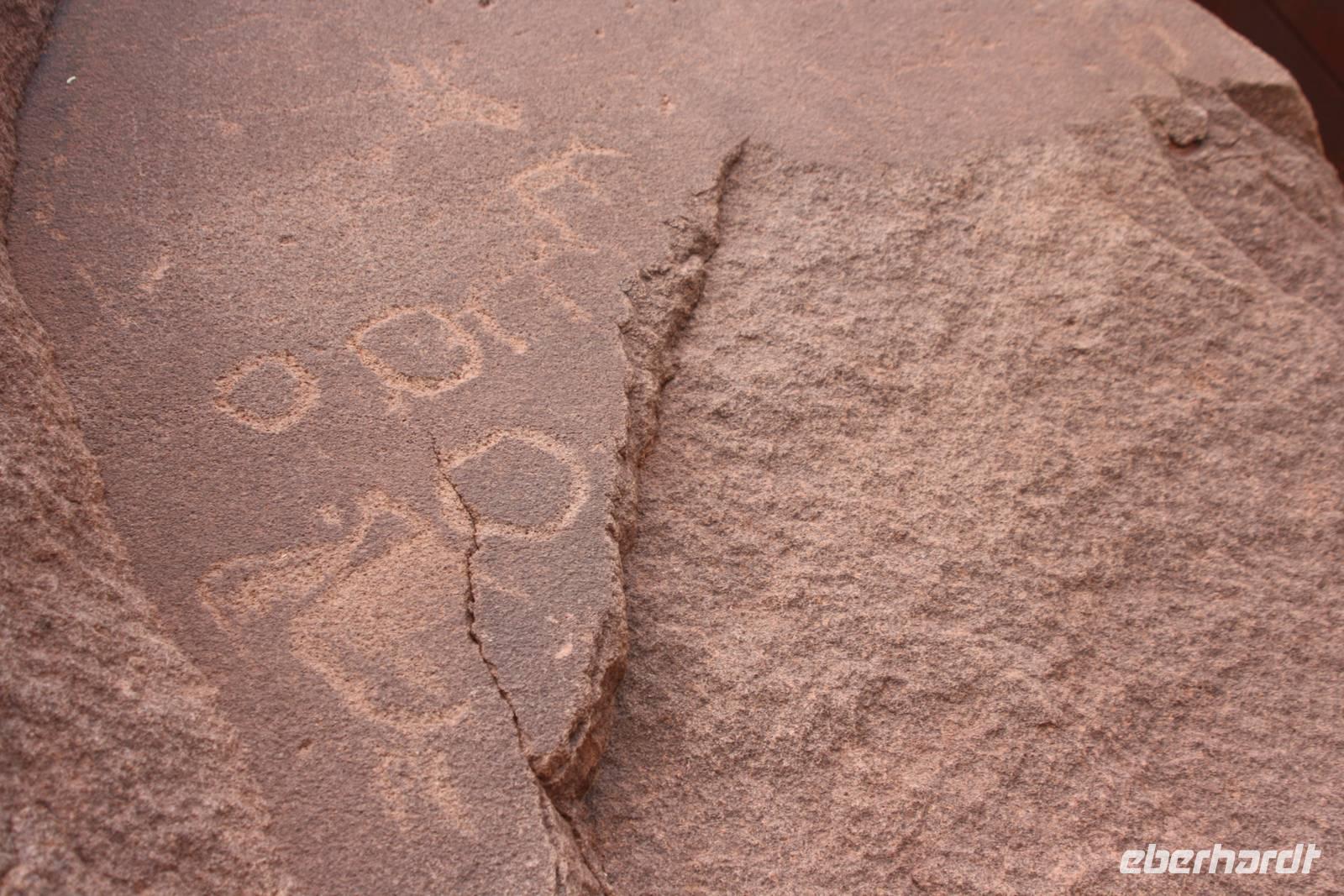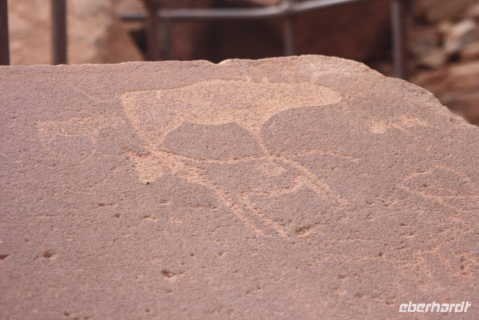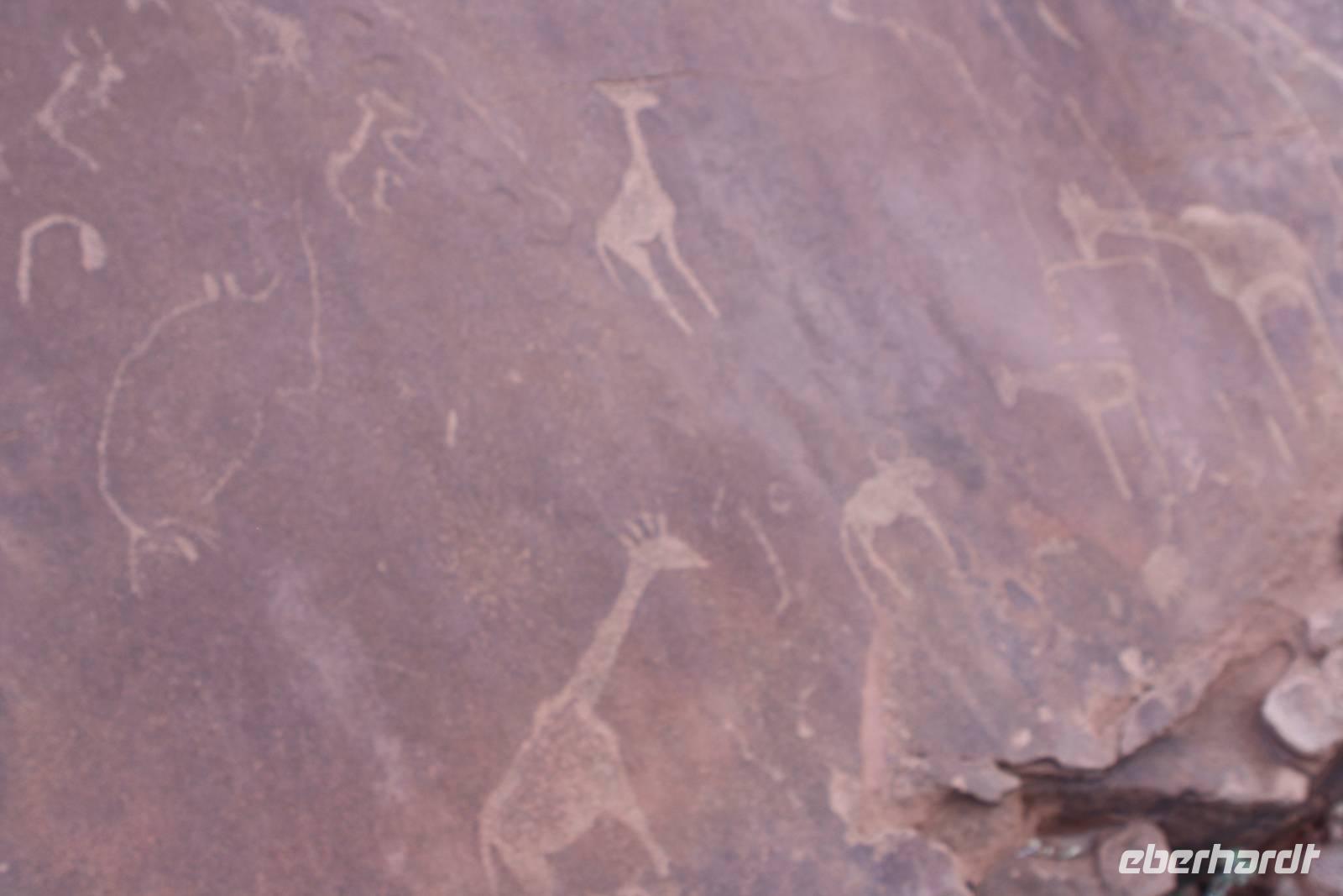 Der Wecker klingelt schon wieder zeitig aber wir haben ja auch einen langen Weg vor uns mehr als 400 Kilometer Fahrtstrecke liegt heute vor Jonas. Kurz nach Swakopmund stoppen wir bei einem Schiffswrack für ein Foto. Eine weitere Pause legen wir in Uis an. In einem wunderschönen Gartencafe, betrieben von einem deutschen Ehepaar, genießen wir das romantische Idyll bei Saft und Latte Macchiato. Dann geht es weiter. Die vorbeiziehende Natur verändert sich auch heute immer wieder. Kurz nach der Mittagszeit erreichen wir Twyfelfontein, wo wir auf einem Parkplatz erstmal zum Mittagspicknick rasten. Dann geht es rein. Ein Guide, Jeanette, ist ab jetzt für uns verantwortlich. Und sie zieht ihr Programm voll durch. Über Stock und Stein bringt sie uns in der glühensten Hitze bei geschätzen 40 Grad zum eingefallenen Haus von Levin und erzählt uns dessen Story. Dann erklimmen wir die Felsen und sie erklärt uns die vielen Felsgravuren, die hier entdeckt wurden und heute auf der Liste des UNESCO-Weltkulturerbes steht. Ich weiß nicht, ob sie nur gelangweilt tut oder ob sie das spaßig meint aber mit ihrer ganz eigenen individuellen Art hat sie meine Reisegruppe schnell in ihren Bann gezogen. Sie erläutert uns sogar kurz die Schnalssprache als auch wie man sie schreibt. Da nun langsam Blitz und Donner aufziehen und es so aussieht, als würde es regnen, müssen wir schnell zurück zum Parkeingang, wo auch Jonas auf uns wartet.Über Schotterpiste erreichen wir den versteinerten Wald. Auch hier haben wir eine Führung, diesmal aber nur rund zwanzig Minuten, wo uns alles zum Prozess der Versteinerung als auch zur Nationalpflanze von Namibia, der Dalvichi, erzählt wird. Man merkt uns schon an, das wir durch die Hitze geschafft und müde sind. Jedoch sind es nochmal mehr als eine Stunde Fahrt ehe wir endlich unsere Lodge für die kommenden Nacht, die Damara Mopane Lodge, in der Dunkelheit erreichen. Nur schnell Hände waschen und schon treffen wir uns auf der Restaurantterrasse zum gemeinsamen Abendessen.