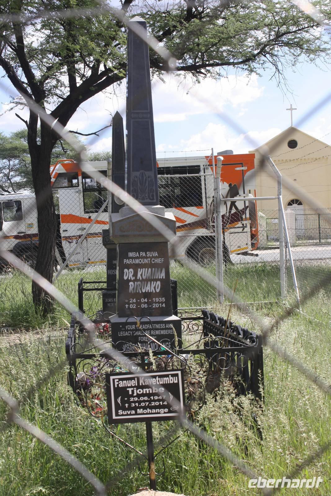Unser Ziel heißt heute Windhoek.Nach dem Frühstück verlassen wir die Lodge in Richtung Tsumeb und kommen bald auf eine Bundesstraße eine richtig asphalierte Straße. Nach all den Schotterpisten der letzten Wochen eine richtig Wohltat. Wir halten in Otijwarango, das Hauptzentrum der Hereros. Wir bestaunen hier neben einer nostalgischen Lok aus deutscher Zeit auch den südafrikanischen Luxuszug, der heute hier Station macht. Unsere Mittagspause verbringen wir an einer Biltong-Station in Okahandja. Danach besuchen wir den Friedhof, auf den viele Herero-Führer begraben liegen. Und uns erwartet eine Begegnung der besonderen Art: ein alter Pastor im Ruhestand wird auf unseren Besuch aufmerksam. Er spricht sehr gut deutsch und erzählt uns von seinem bevorstehenden 50. Hochzeitstag und seinen Besuchen in Deutschland. Diese Begegnung war so toll, das sie uns sicher noch lange in Erinnerung bleiben wird. Die Gräber, die an der Kirche des Pastors vorhanden sind, hat nur deutsche, gefallene Soldaten zur letzten Ruhe gebettet. Einige kamen sogar aus Leipig, Chemnitz und Dresden.