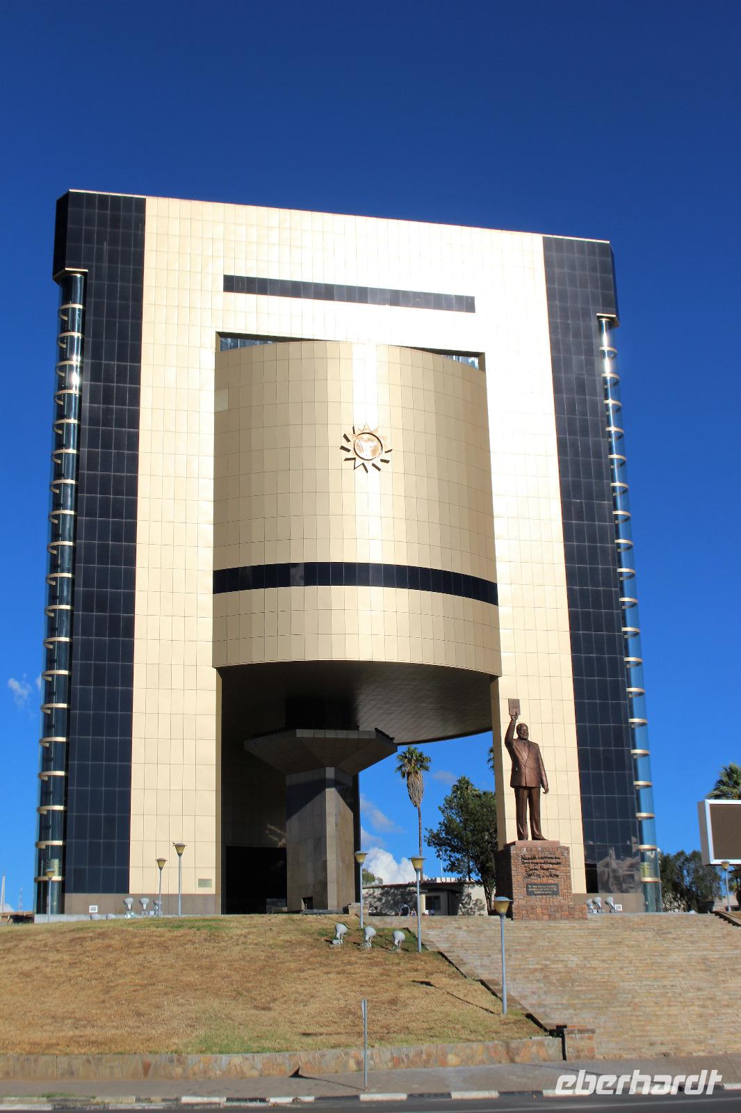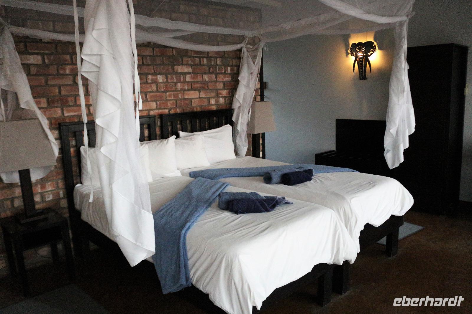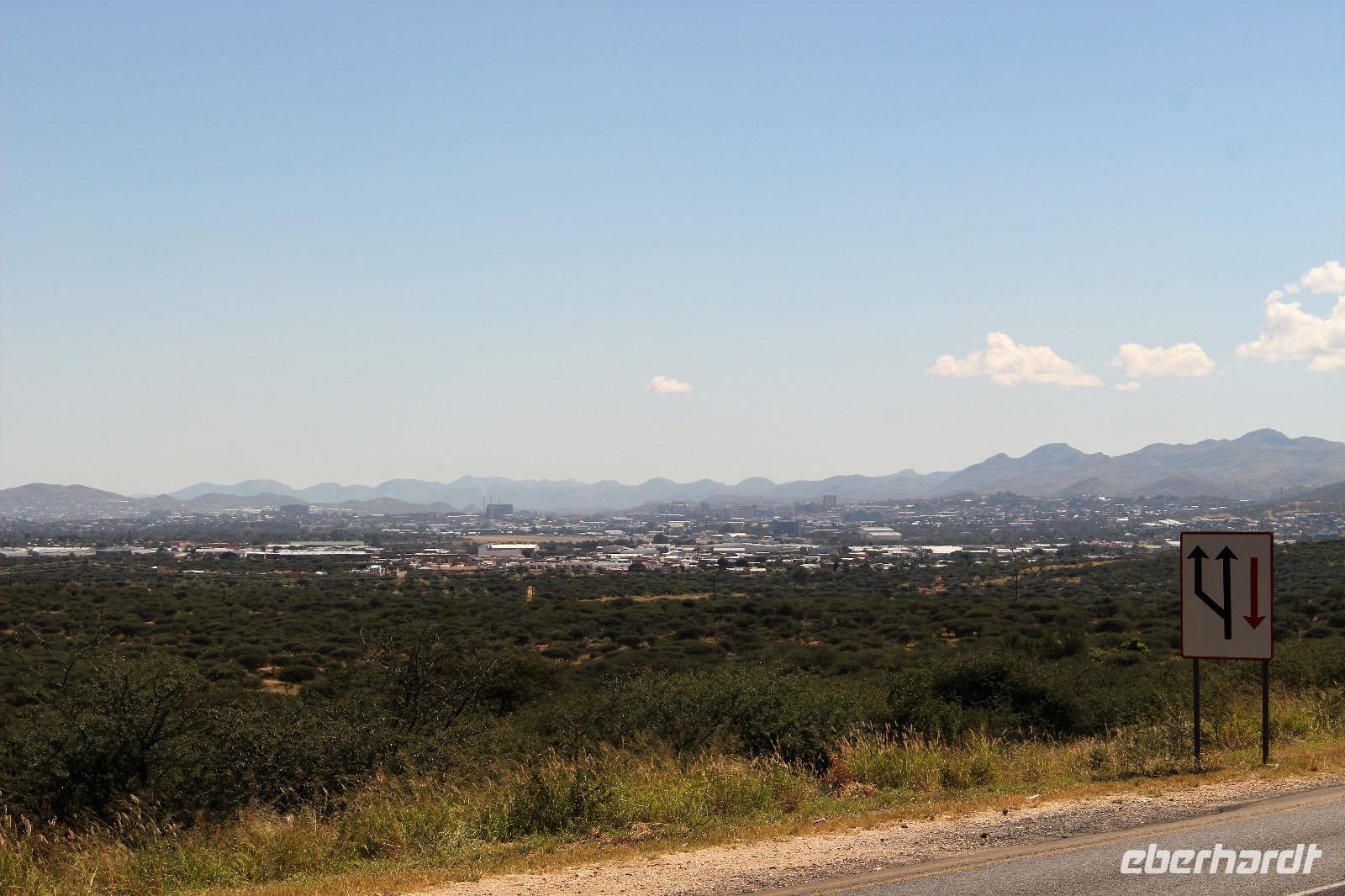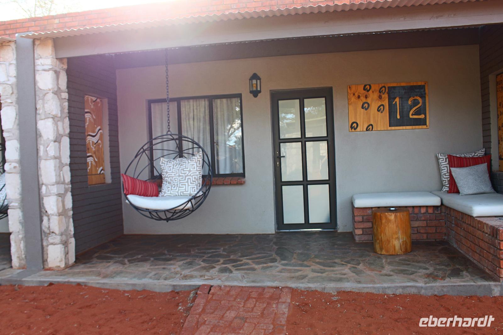 Hier angekommen erwarteten uns bereits angenehm sommerliche Temperaturen. Nachdem alle Einreiseformalitäten erledigt waren und wir unsere Koffer wieder erhalten hatten, nahm uns unser örtlicher Reiseleiter Henner in Empfang. Nun bestand die Möglichkeit, noch Geld in namibische Dollar zu tauschen, bevor wir den Flughafen verließen. Henner, welcher Busfahrer und Reiseleiter in einer Person war, brachte uns zunächst zu unserem ersten Hotel, dem Hotel Thule in Windhoek. Hier wurden wir mit Sekt oder Orangensaft begrüßt und konnten unsere großräumigen Zimmer beziehen.