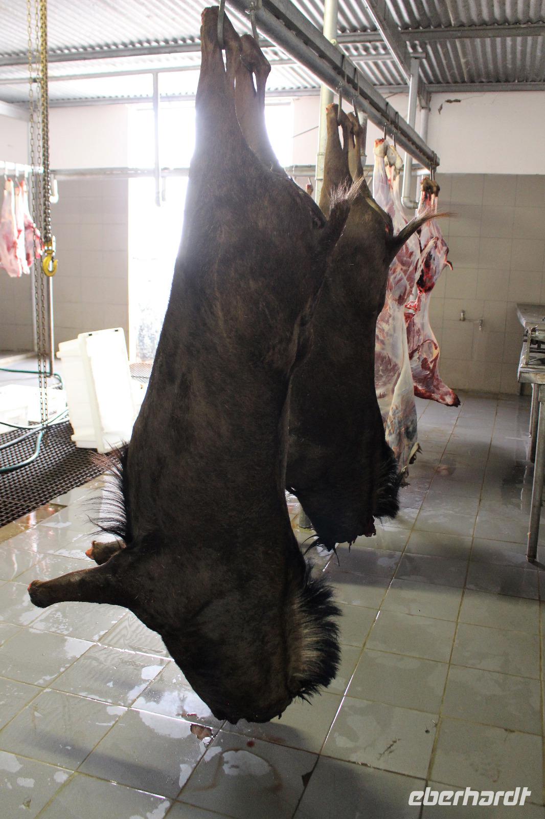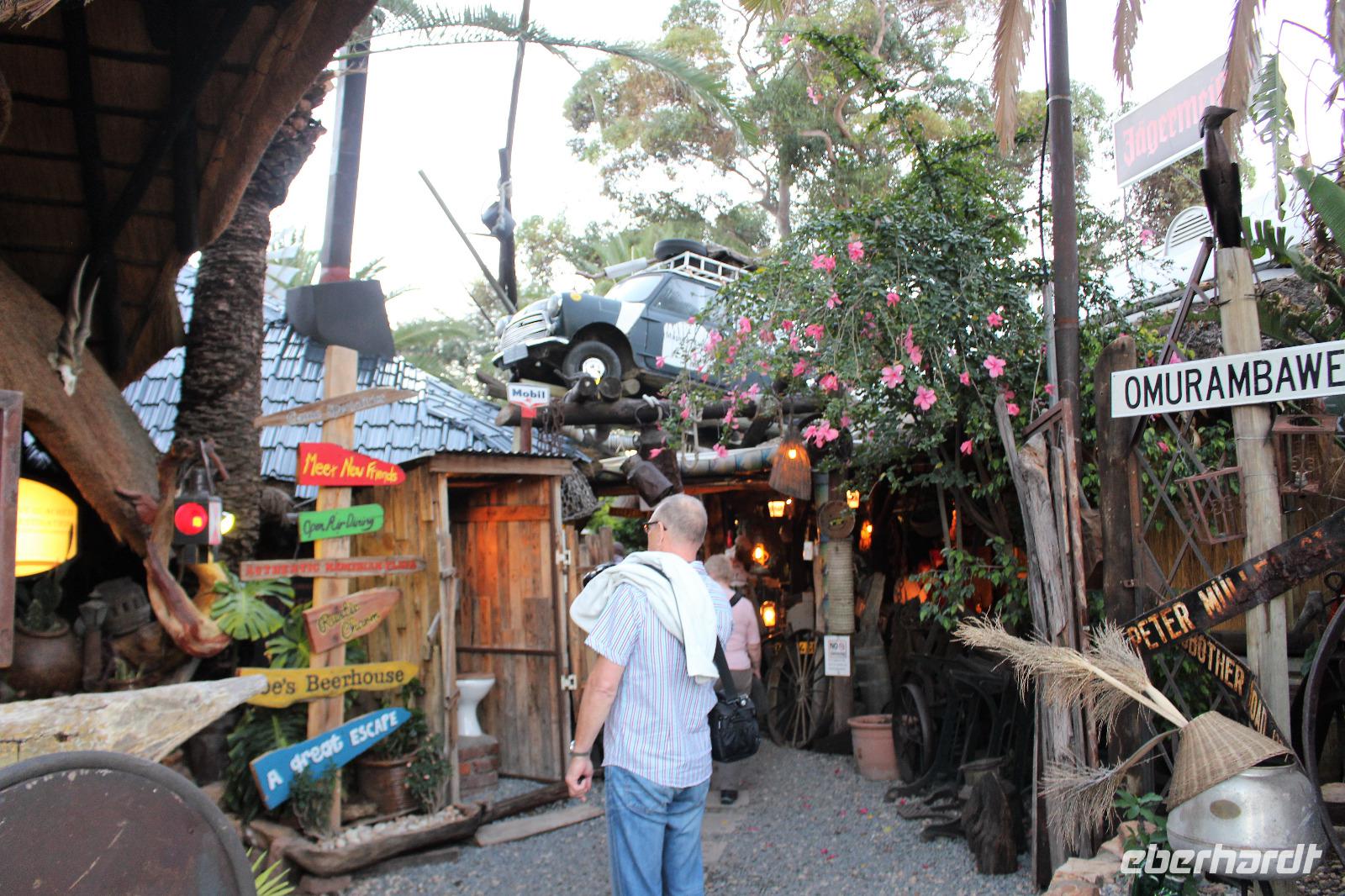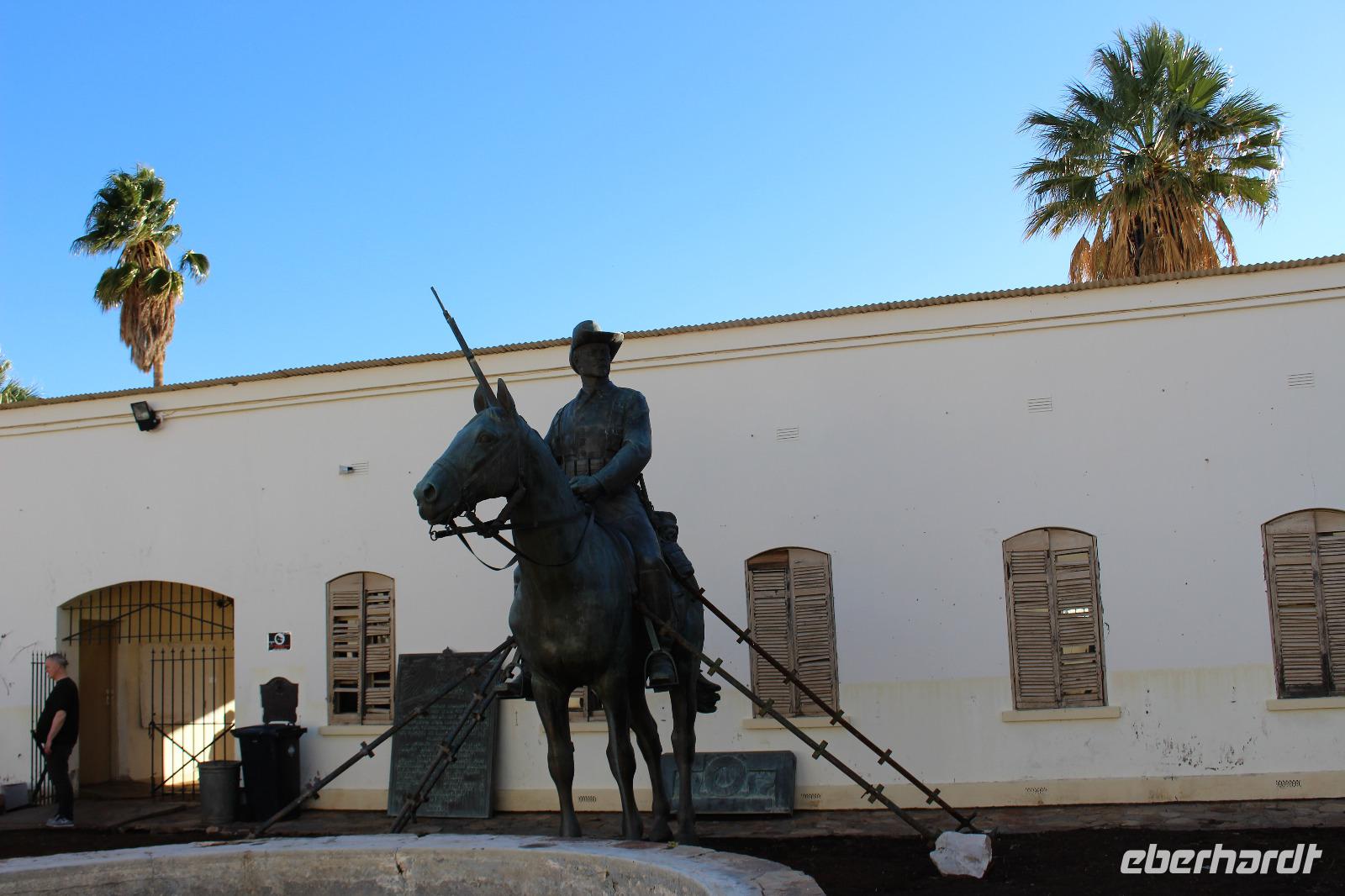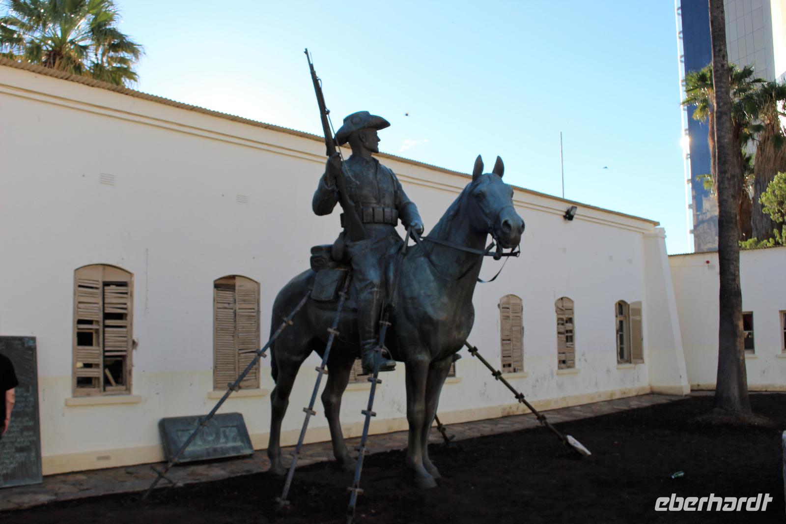 Nach einer kurzen Erfrischungs- und Erholungspause machten wir uns auf, um die Hauptstadt Windhoek kennen zu lernen. Dabei zeigte uns Henner insbesondere die Christuskirche, das Parlament sowie die Statue des Deutschen Reiters, welche schon oft ihren Standort gewechselt hatte. Im Anschluss fuhren wir schon früh am Abend in das bekannte und überaus gemütliche Restaurant „Joe's Beerhouse", wo uns unter anderem leckere Wildgerichte erwarteten. Doch nachdem die Teller geleert und unsere Bäuche gut gefüllt waren, kam so langsam auch schon die Müdigkeit durch, sodass wir direkt zurück zum Hotel fuhren. Müde, aber sehr zufrieden und voller Erwartungen bezüglich der nächsten Tage, fielen wir schon bald in unsere Betten.